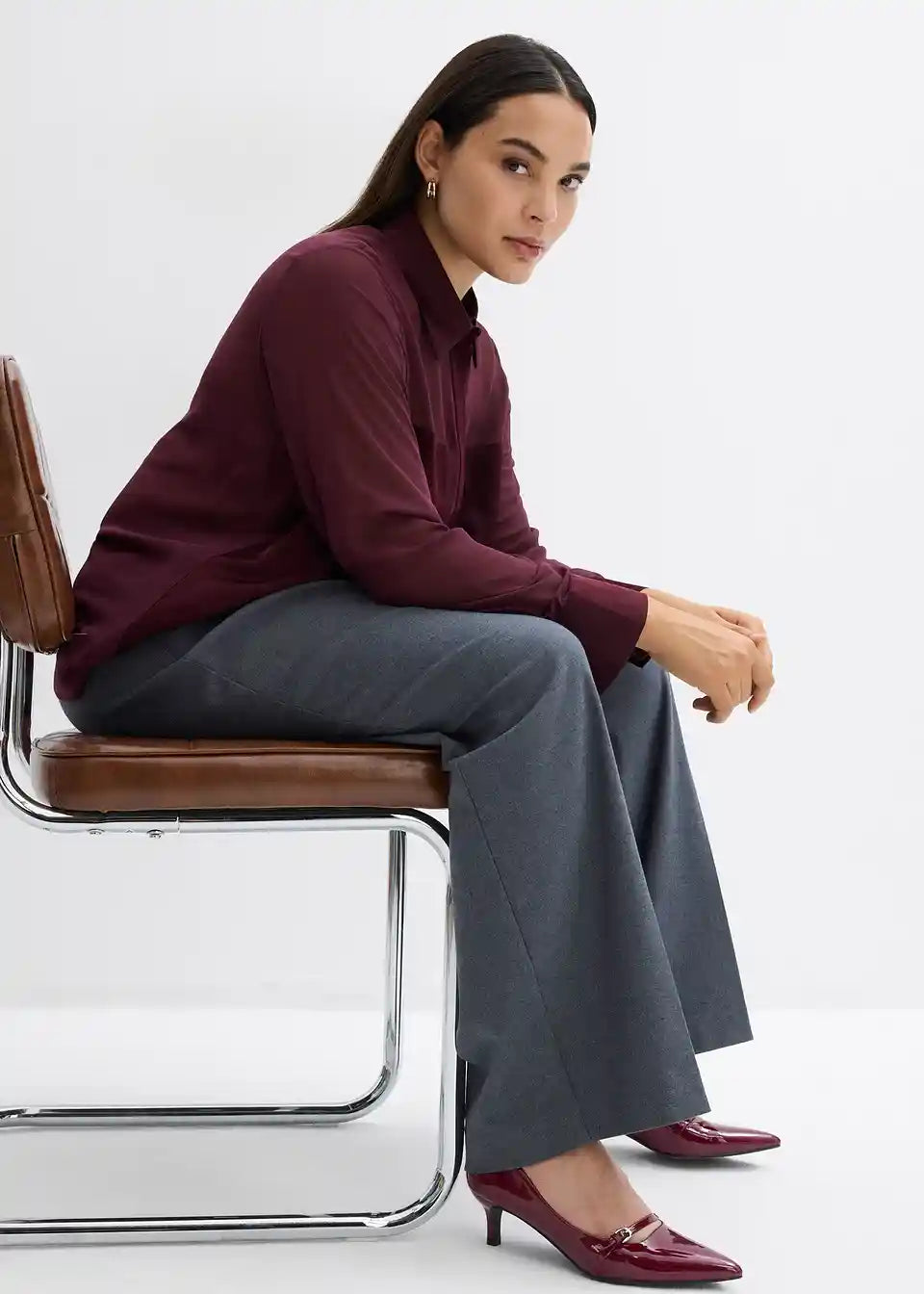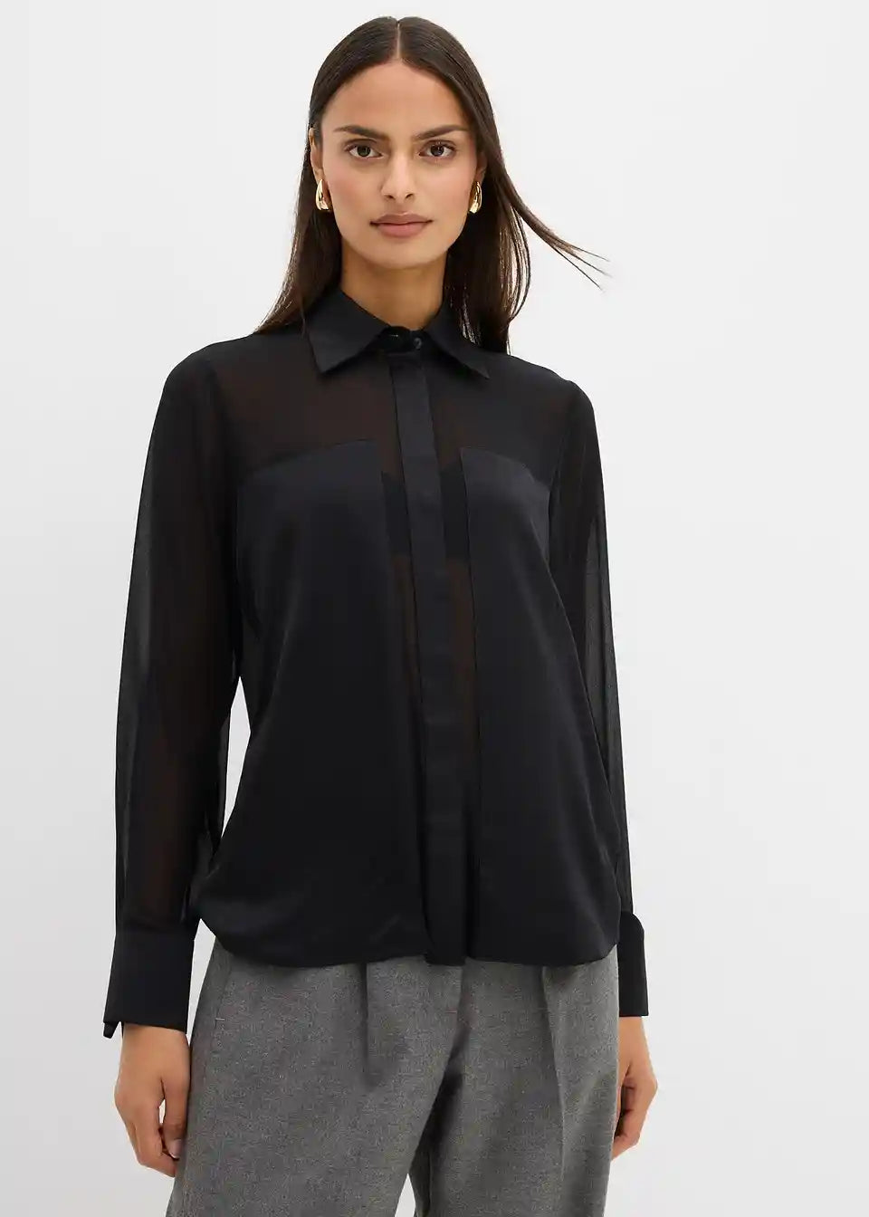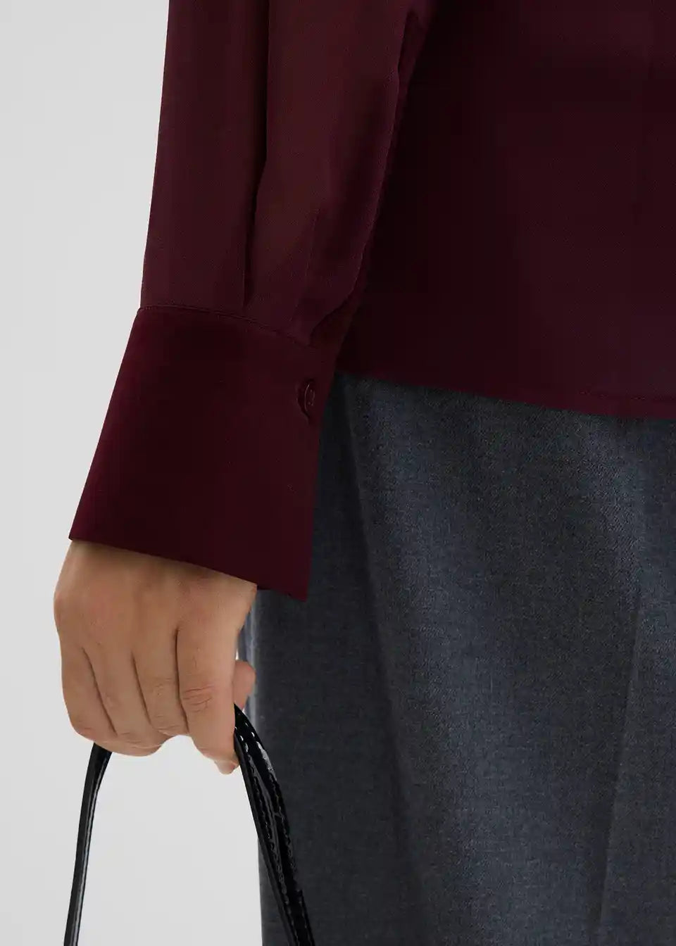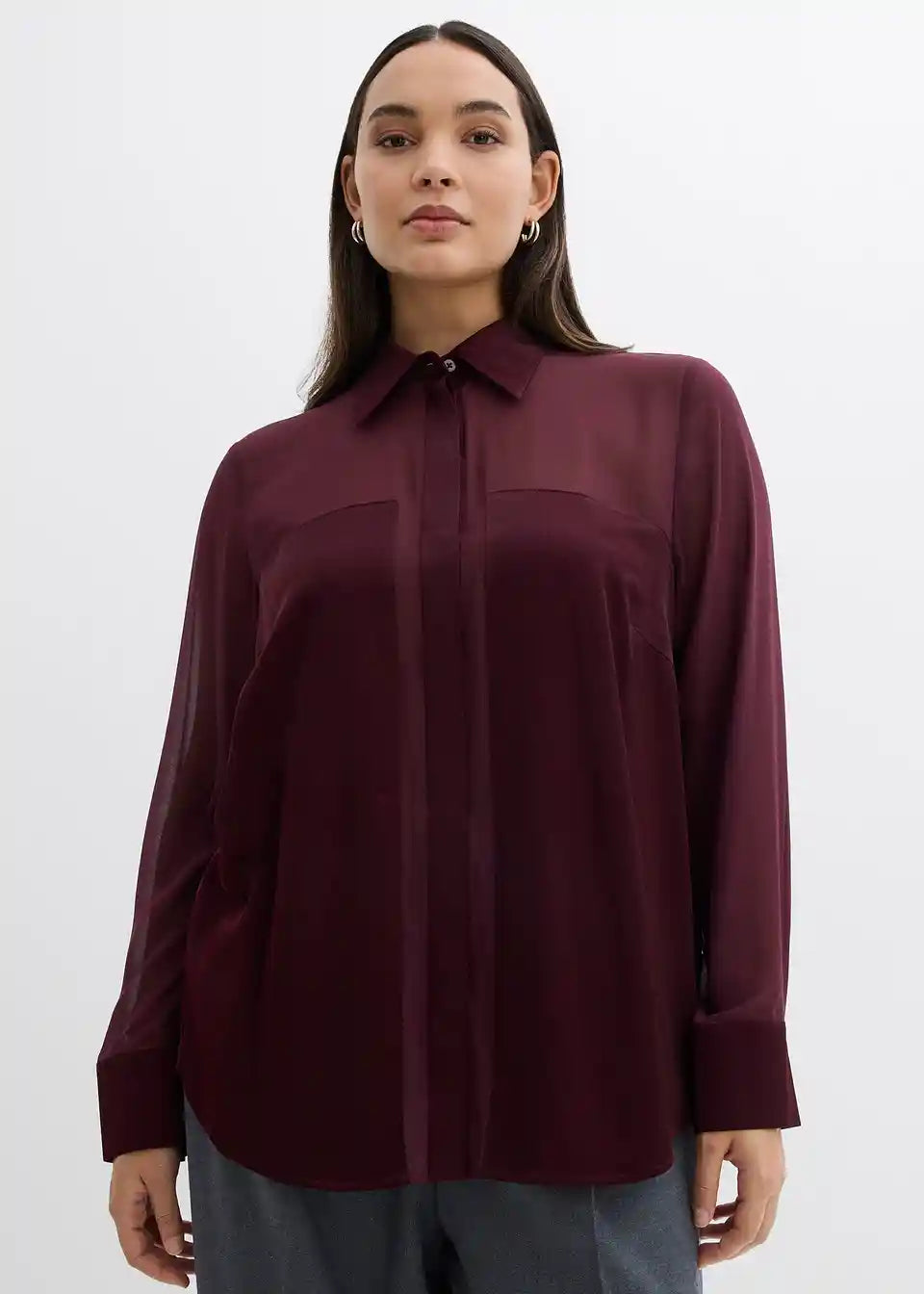 Ravno krojena bluza od lepršavog materijala s košulja-ovratnikom, dugim rukavima s gumbima i kopčanjem na gumbe sprijeda