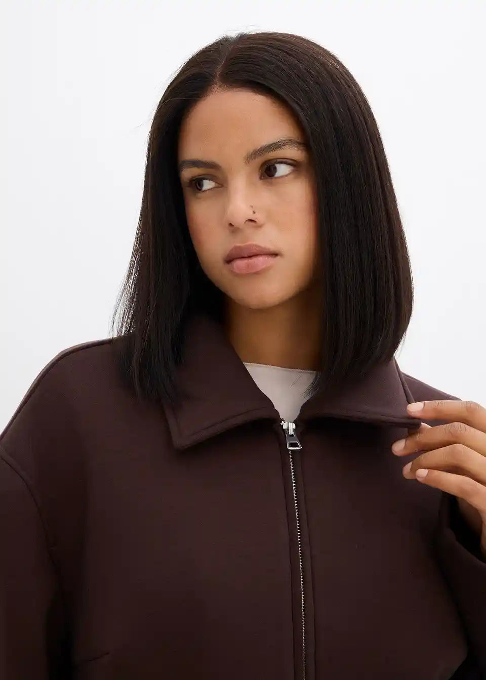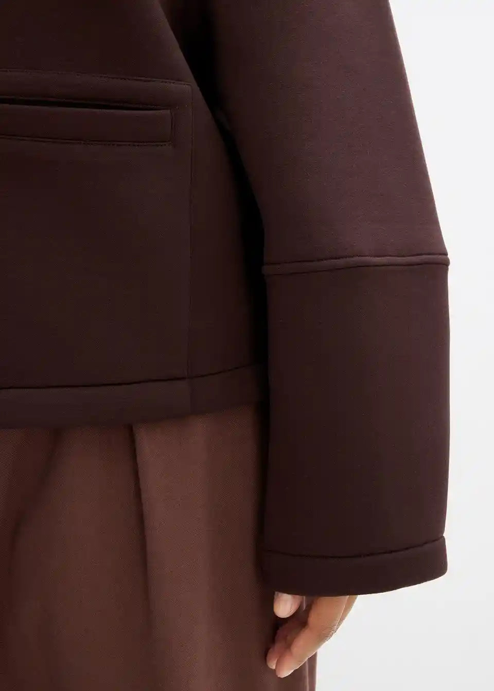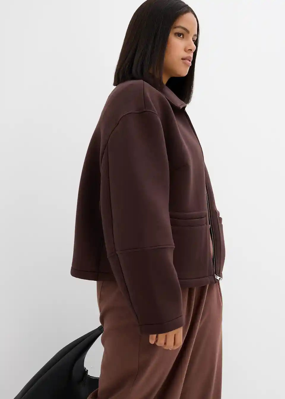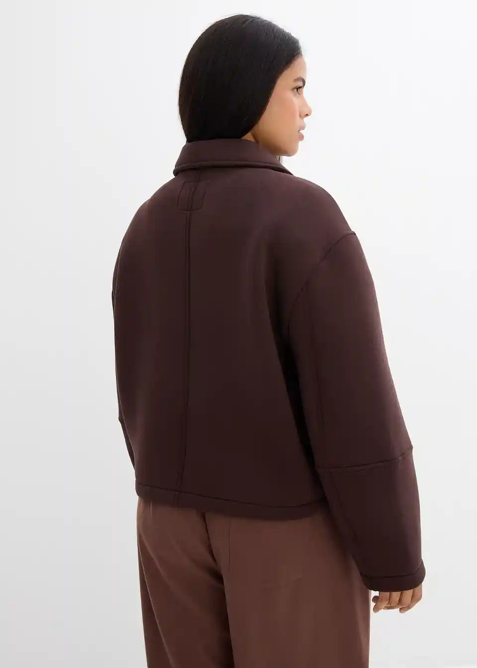 Kratka jakna s košuljskim ovratnikom, našivenim džepovima i šavovima u boji.