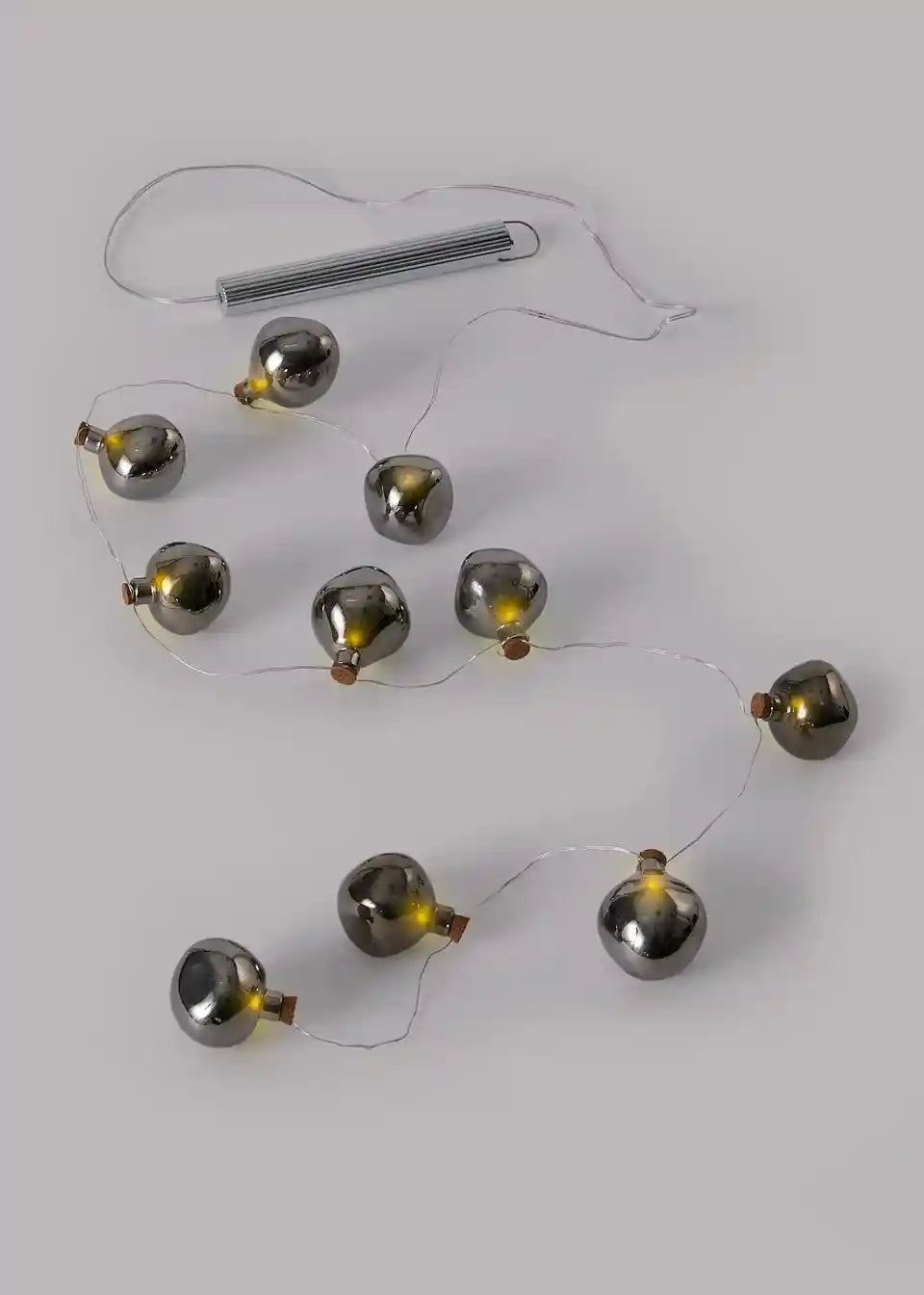 Otkrij naš moderan LED-lanac s 10 organskih kugli u sivoj boji. Sa dužinom od 150 cm i praktičnim timerom, savršen je ukras za tvoj božićni bor ili druge omiljene prostore. Organski oblici su meki, protočni i često inspirirani prirodom. Djeluju prirodno i skladno.