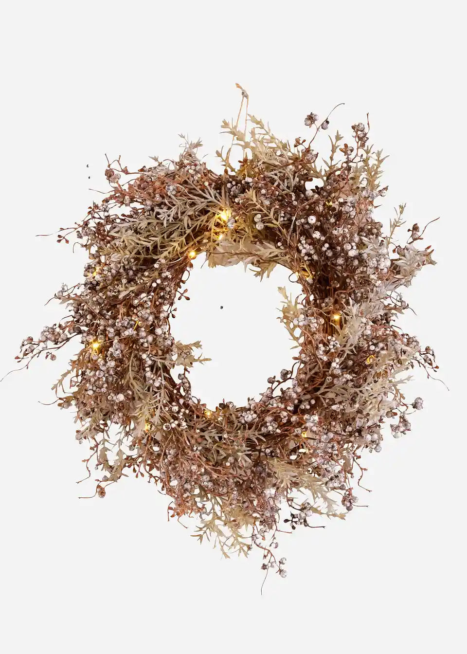 Osvijetljeni vijenac za zid ili vrata od osušenih grančica. Zahvaljujući 20 LED lampicama stvara se topla i ugodna atmosfera.