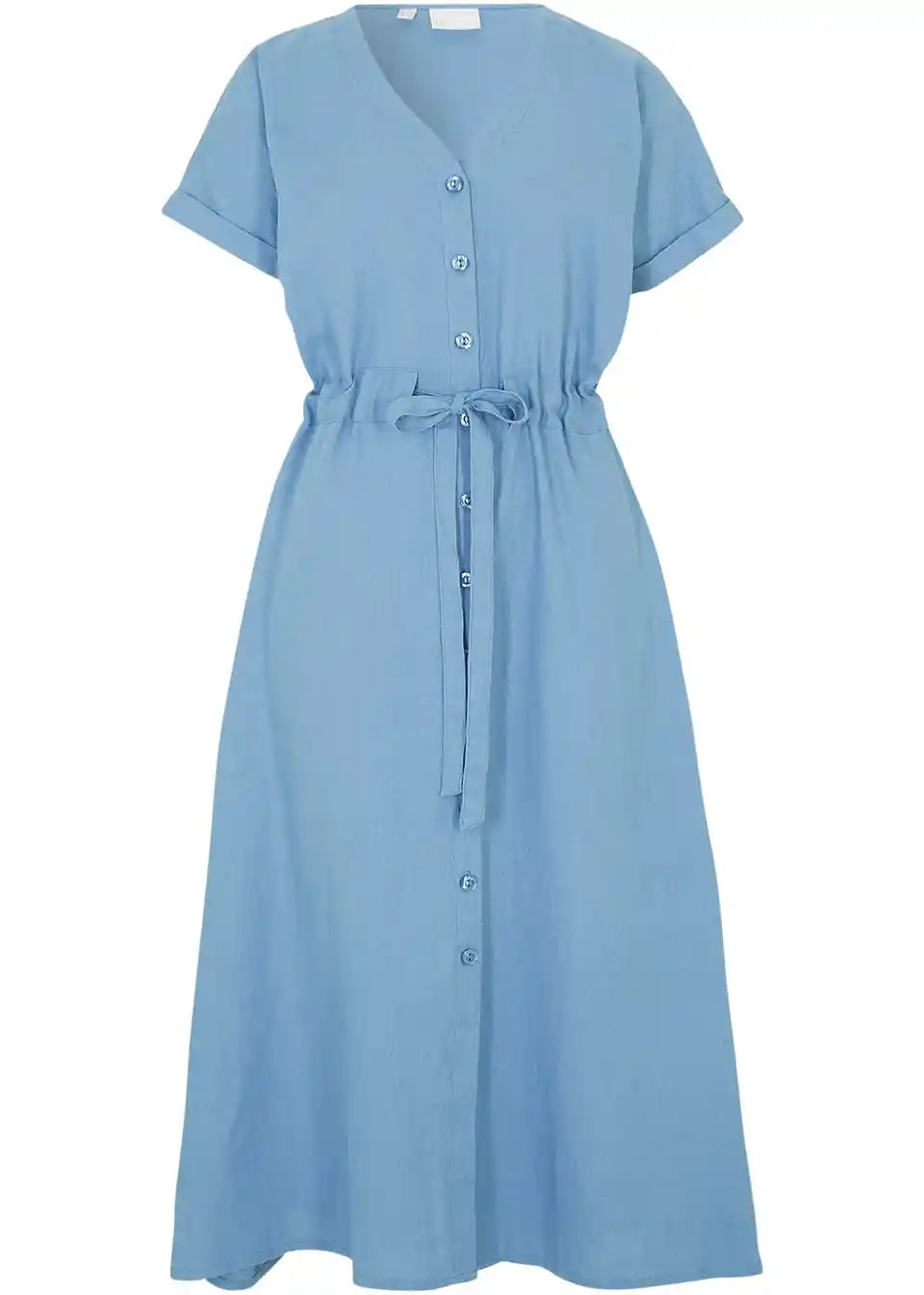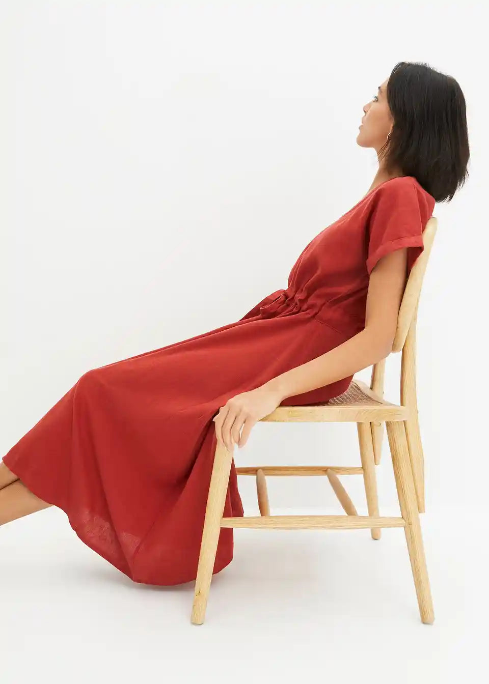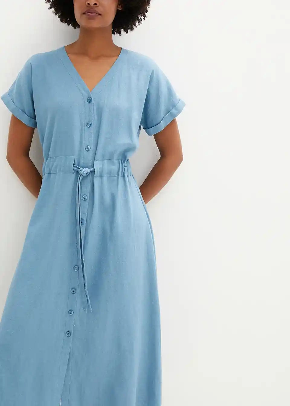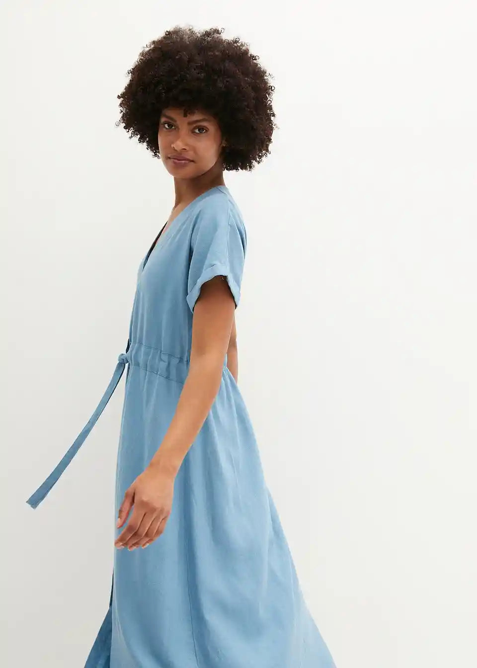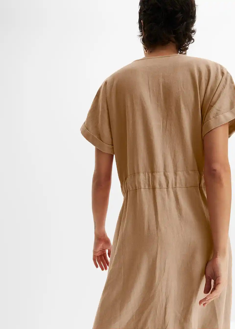 Haljina od mješavine lana s pojasom za vezanje u struku