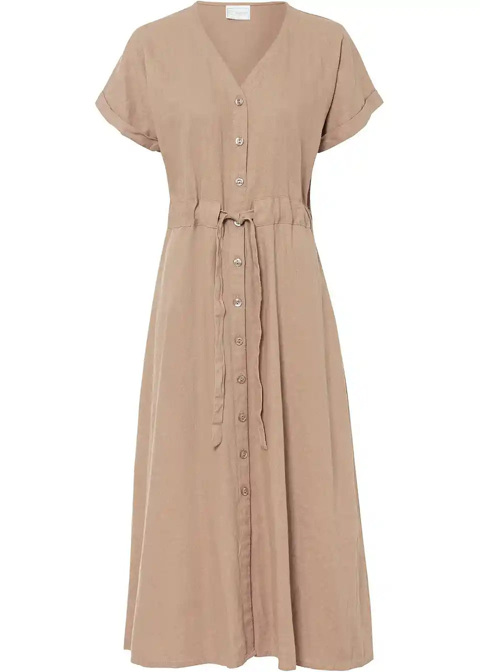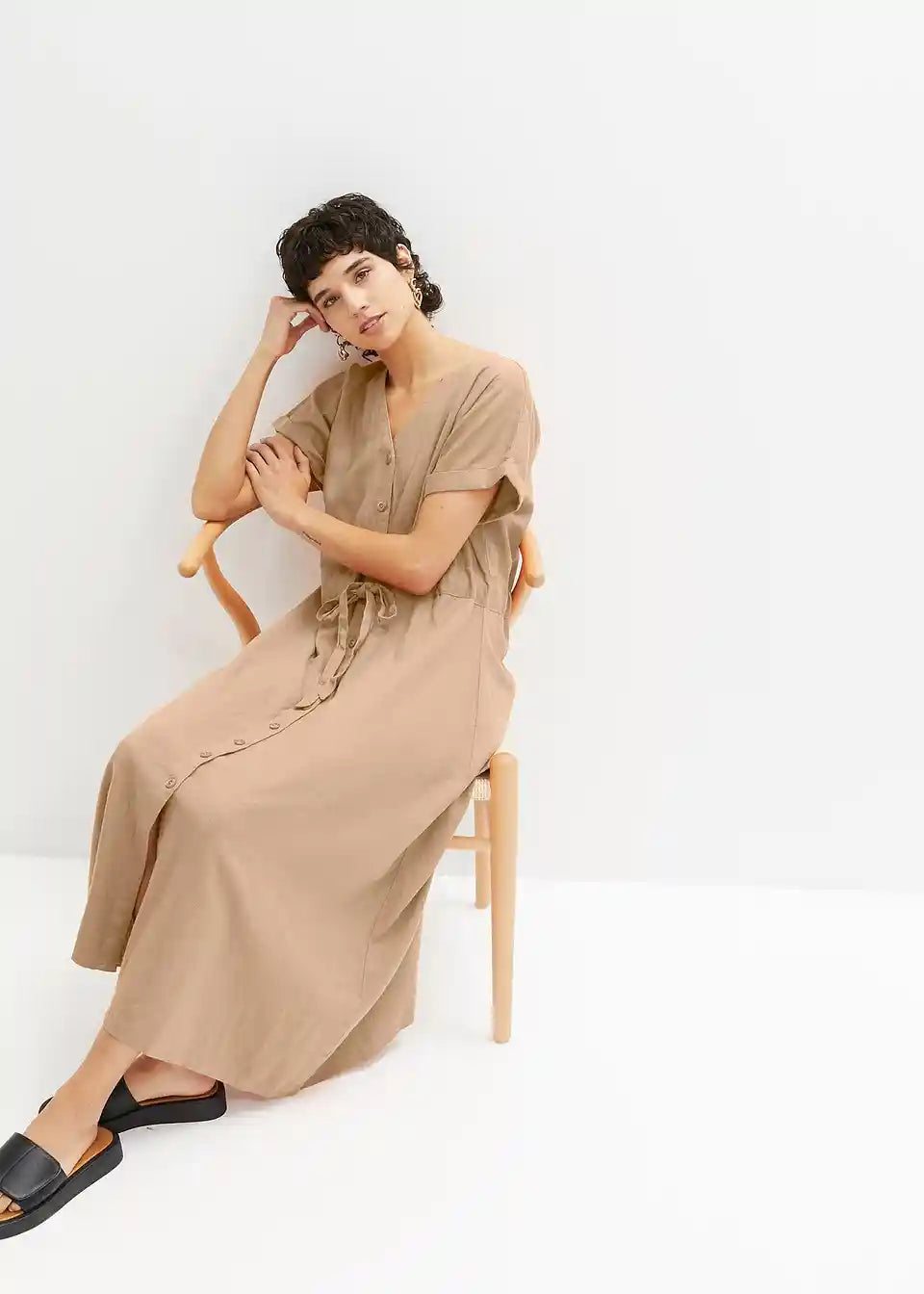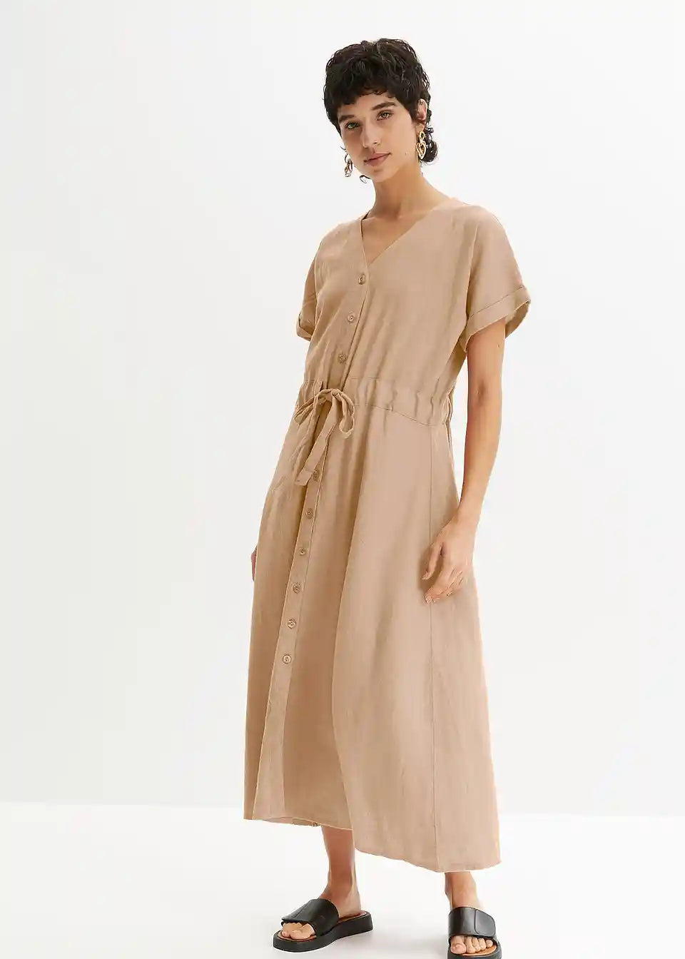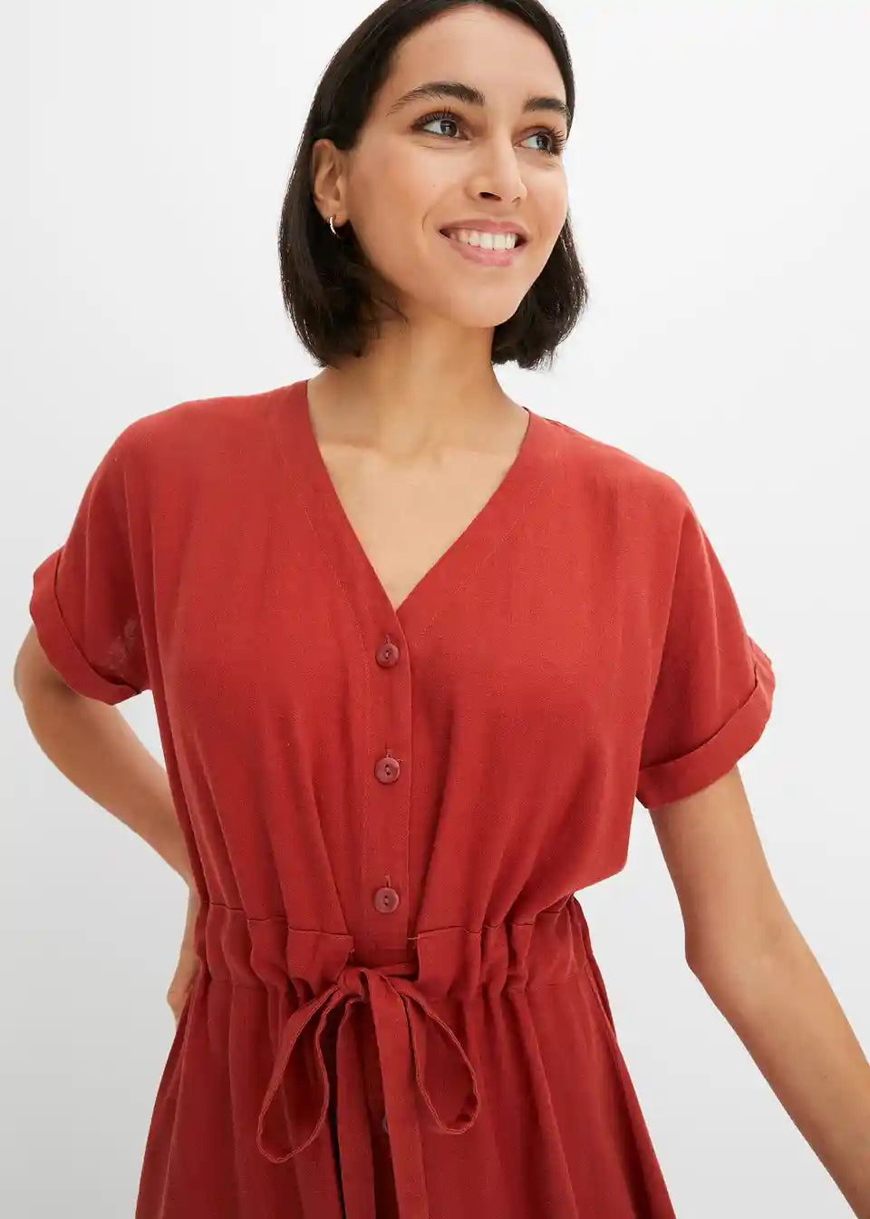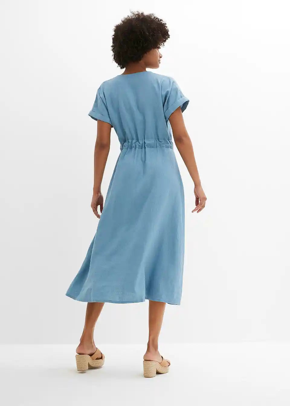 Haljina od mješavine lana s pojasom za vezanje u struku