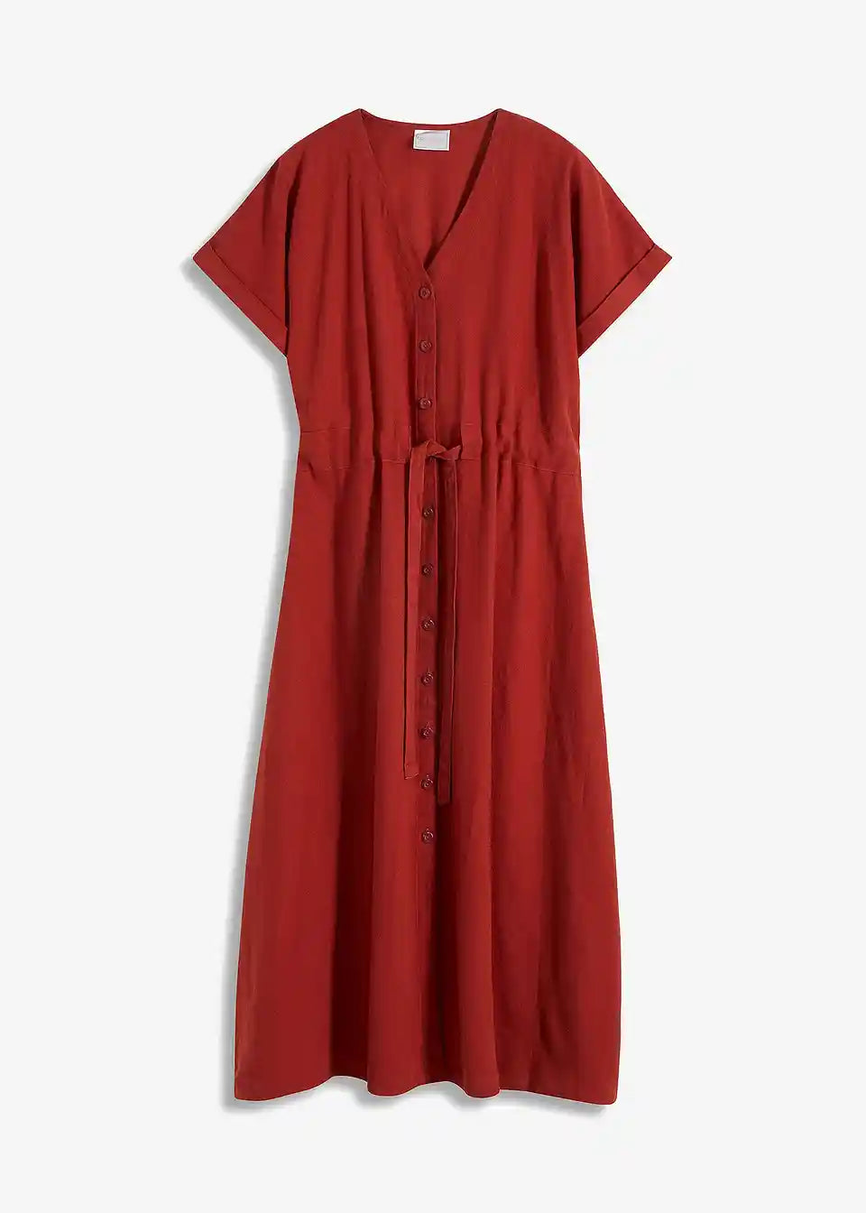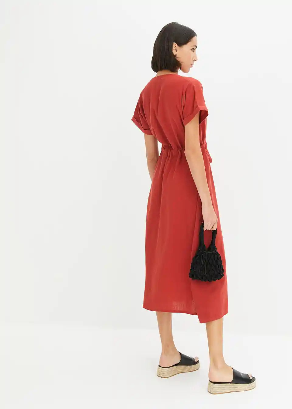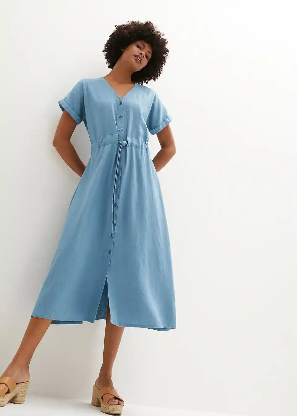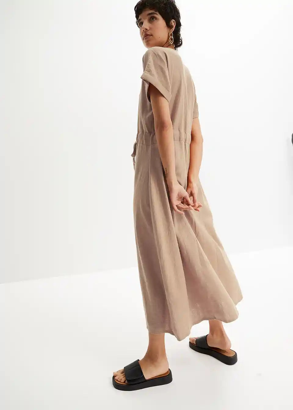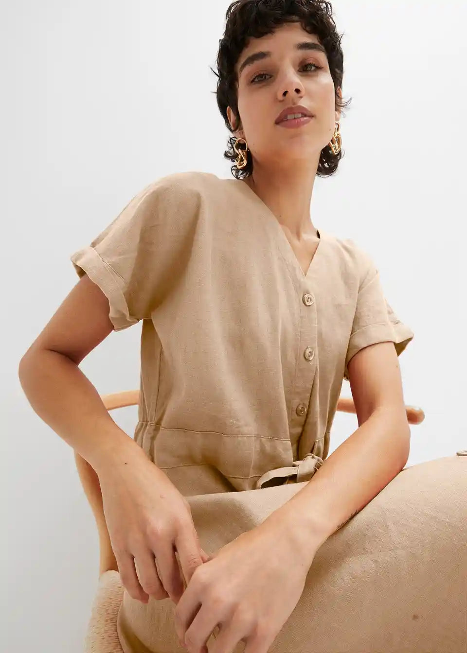 Haljina od mješavine lana s pojasom za vezanje u struku