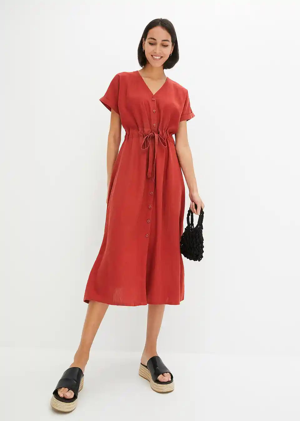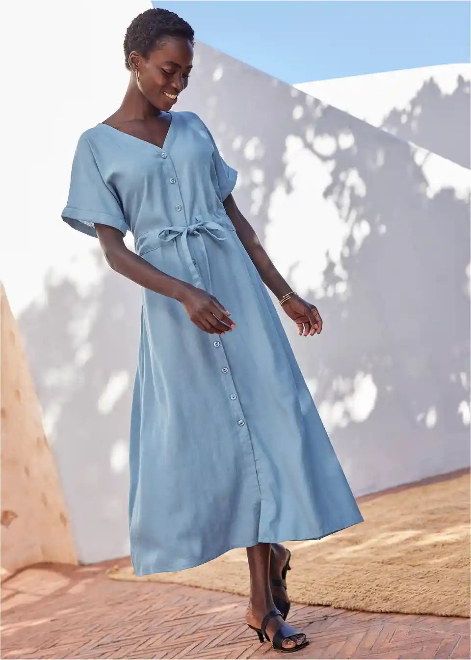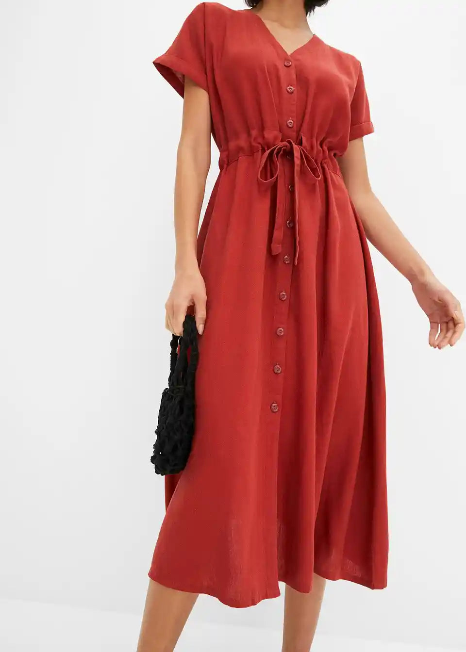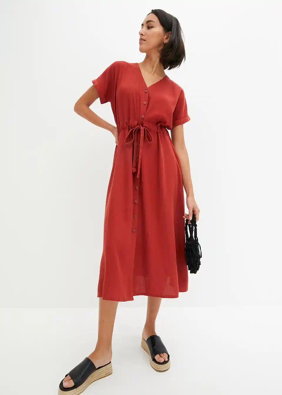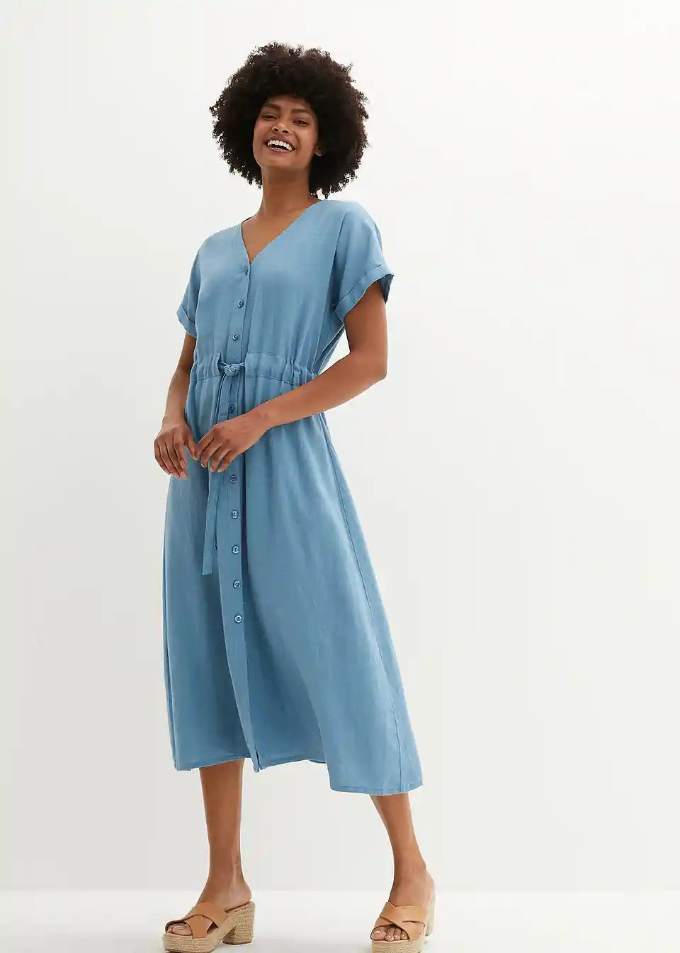 Haljina od mješavine lana s pojasom za vezanje u struku