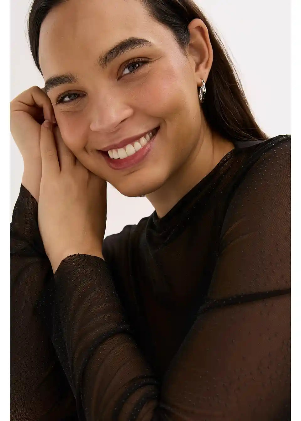 Uzbudljiva djelomično prozirna majica s blještavim printom
