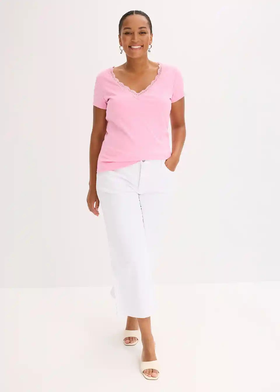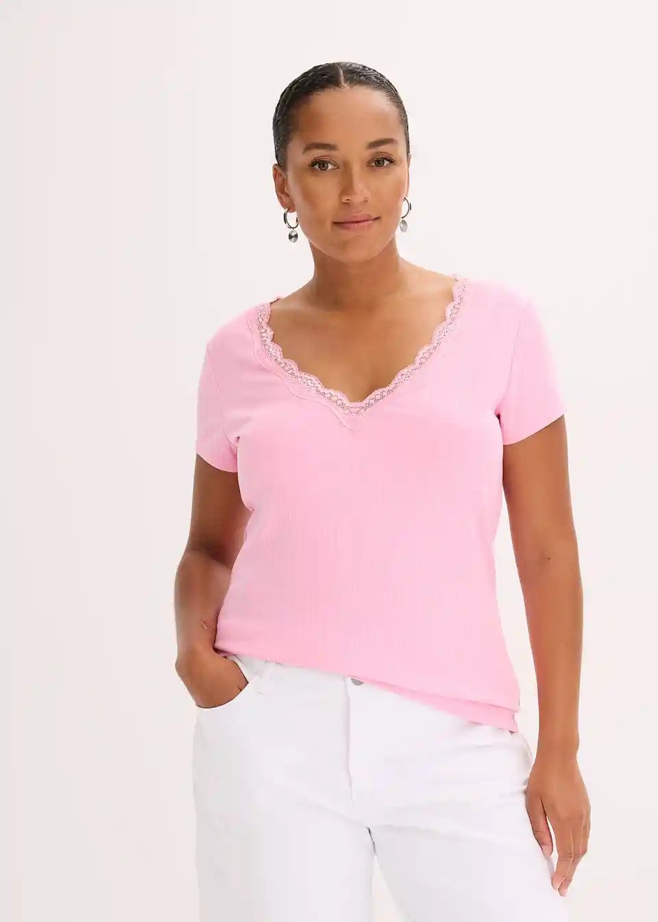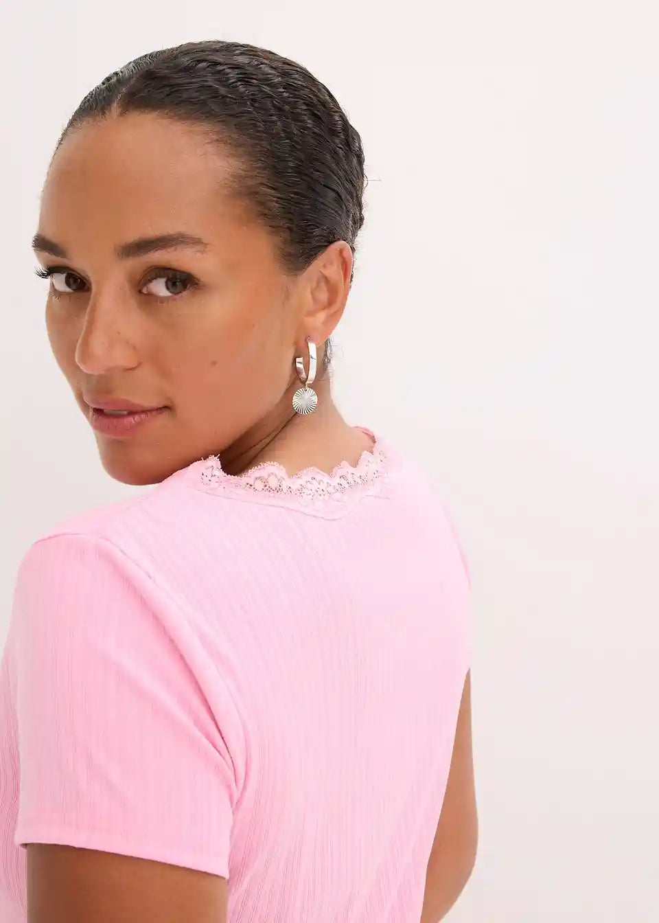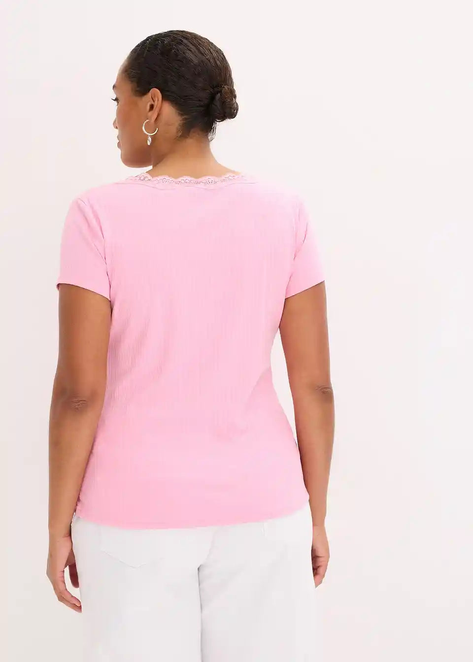 Majica od rebraste tkanine sa čipkastim detaljem u Slim-Fit kroju