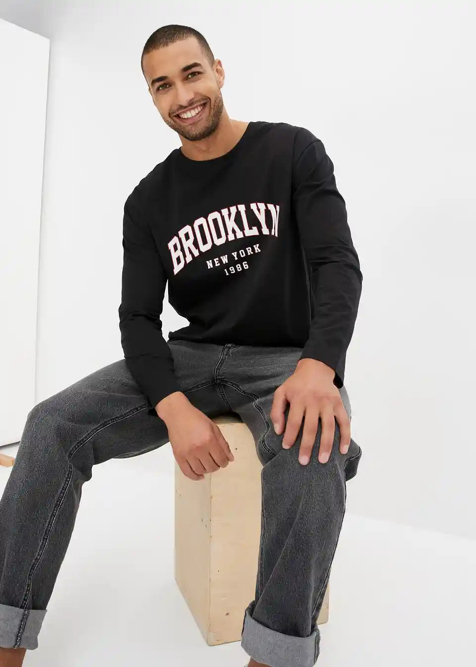 Majica s dugim rukavima od čiste organske pamuka, Loose Fit