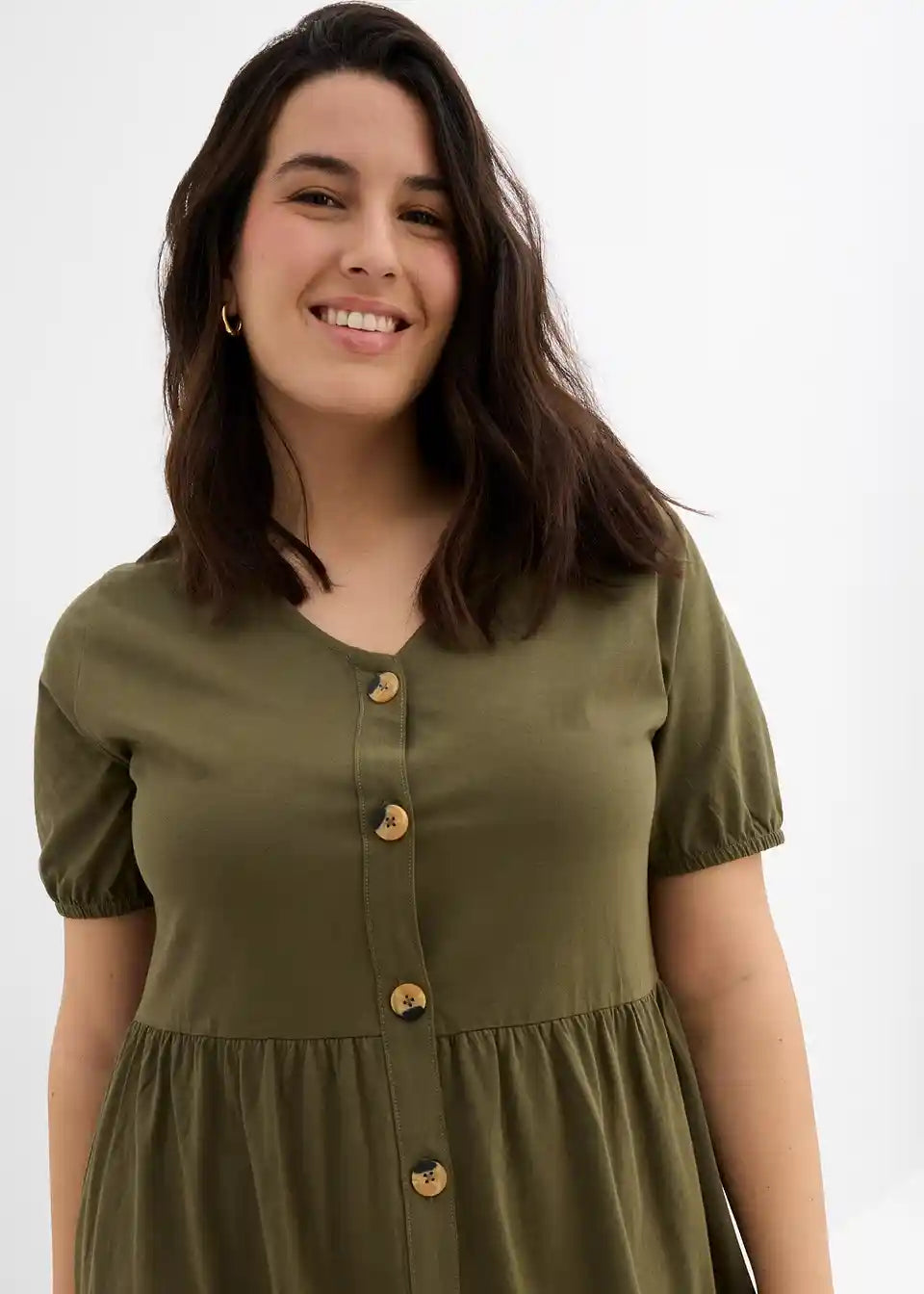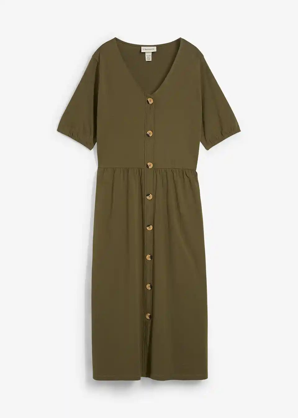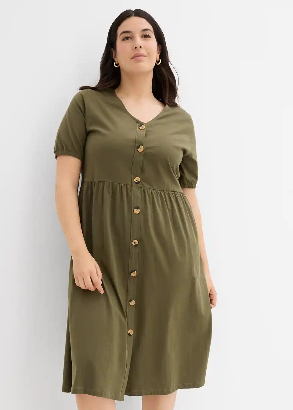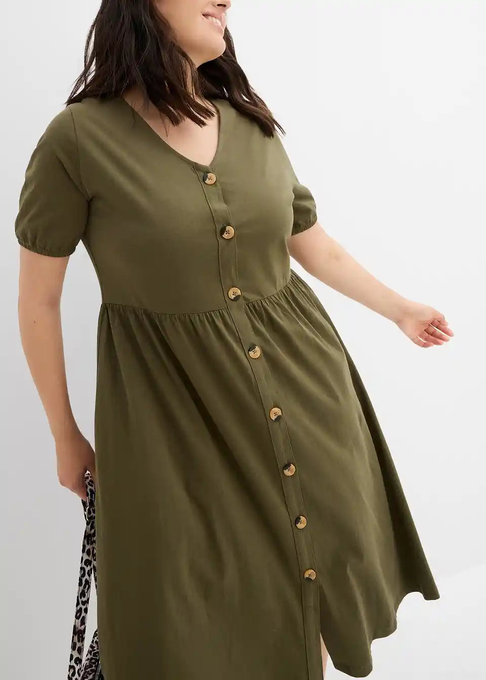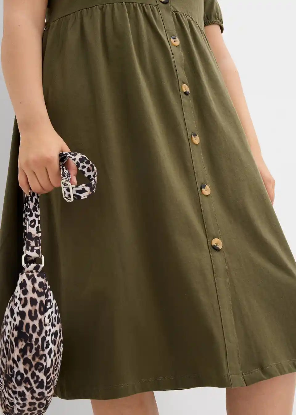Lijepa haljina od pamuka s redom gumba i elastičnim završecima na rukavima