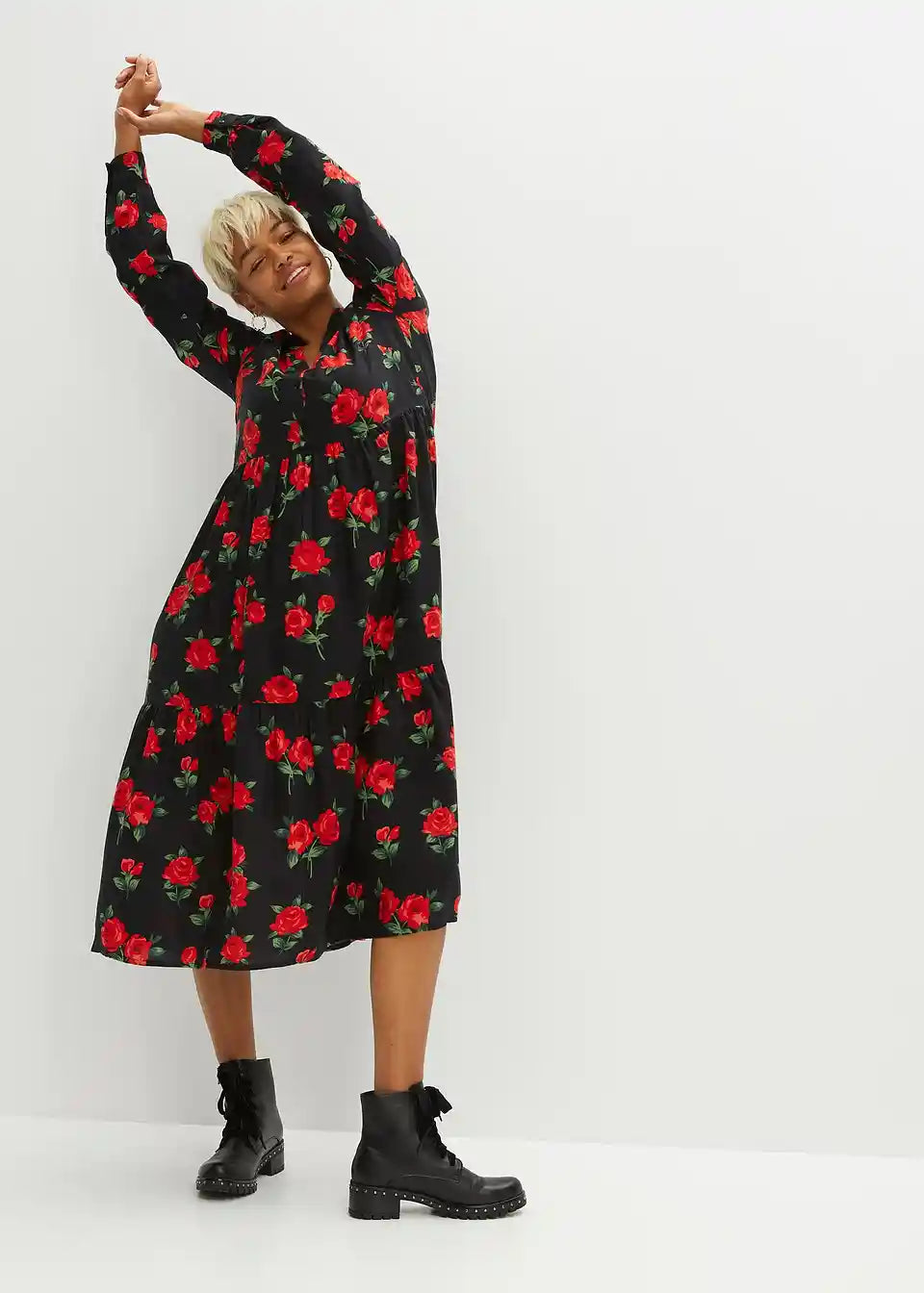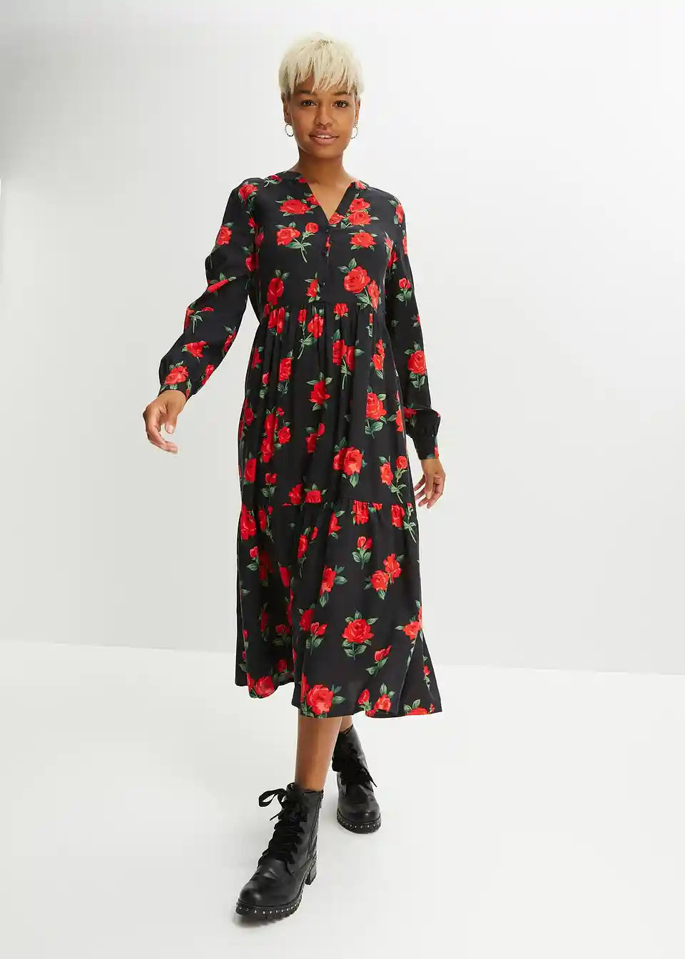 Ležerna midihaljina s V-izrezom i modernim cvjetnim printom