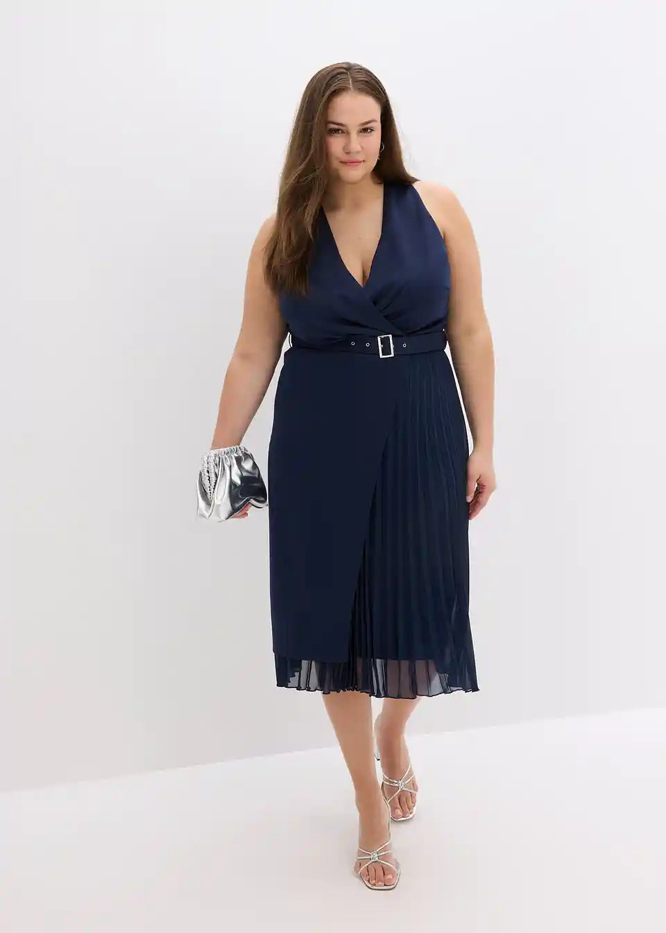 Moderna i ženstvena: midi haljina s efektom preklopa i plisiranim umetkom
