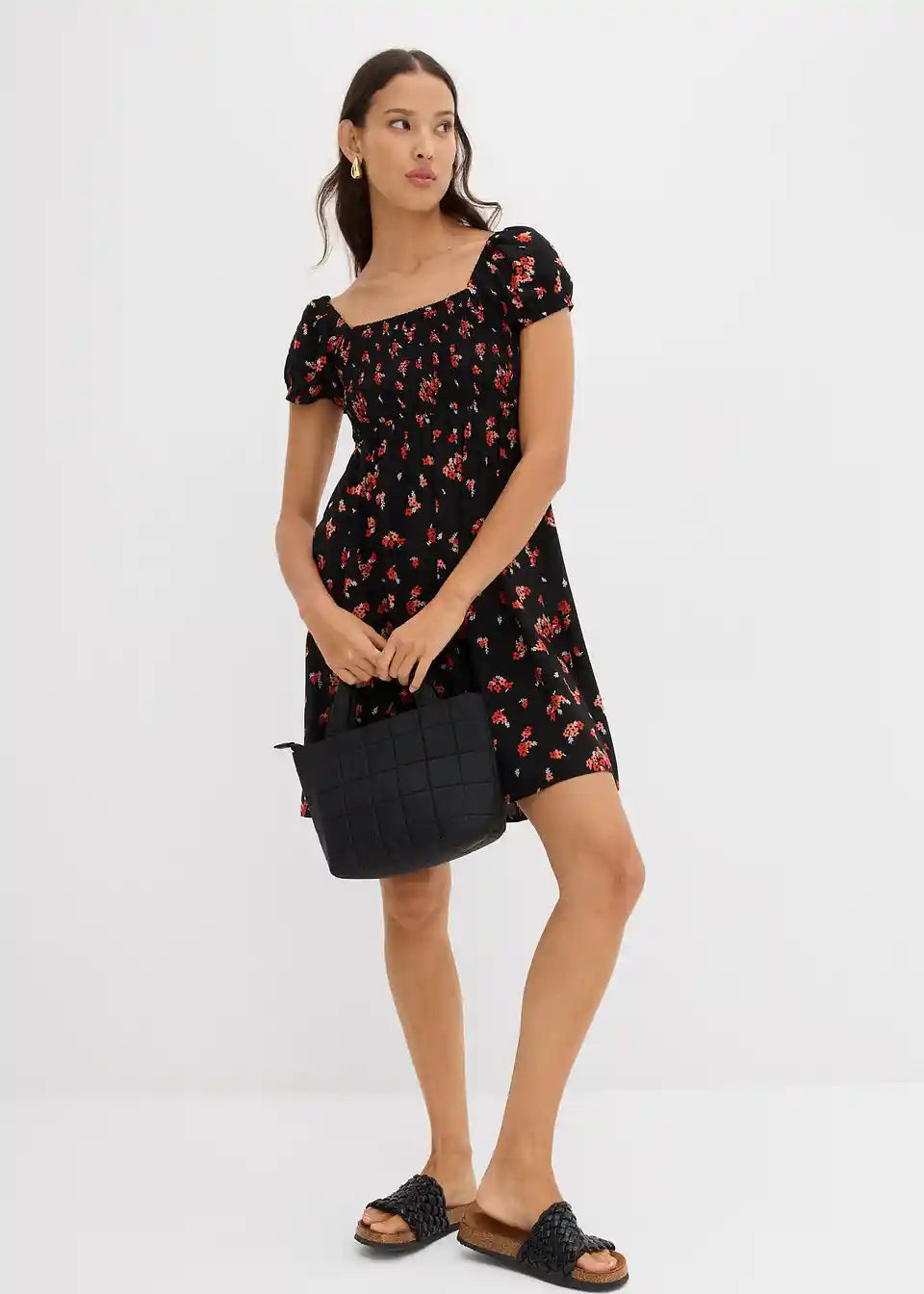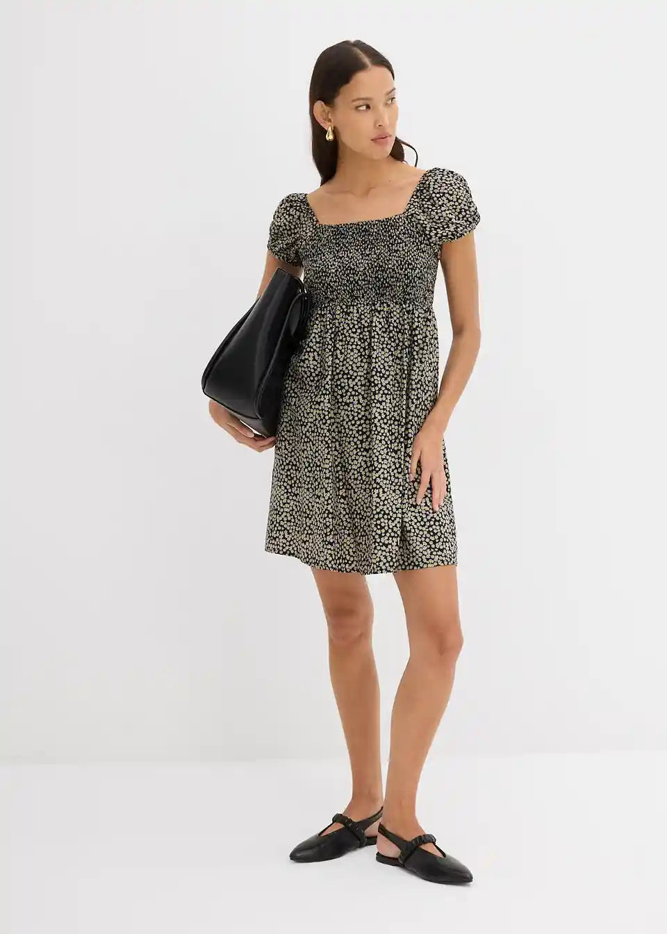 Trendovska mini haljina sa smok detaljem i puff rukavima