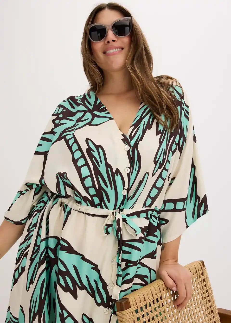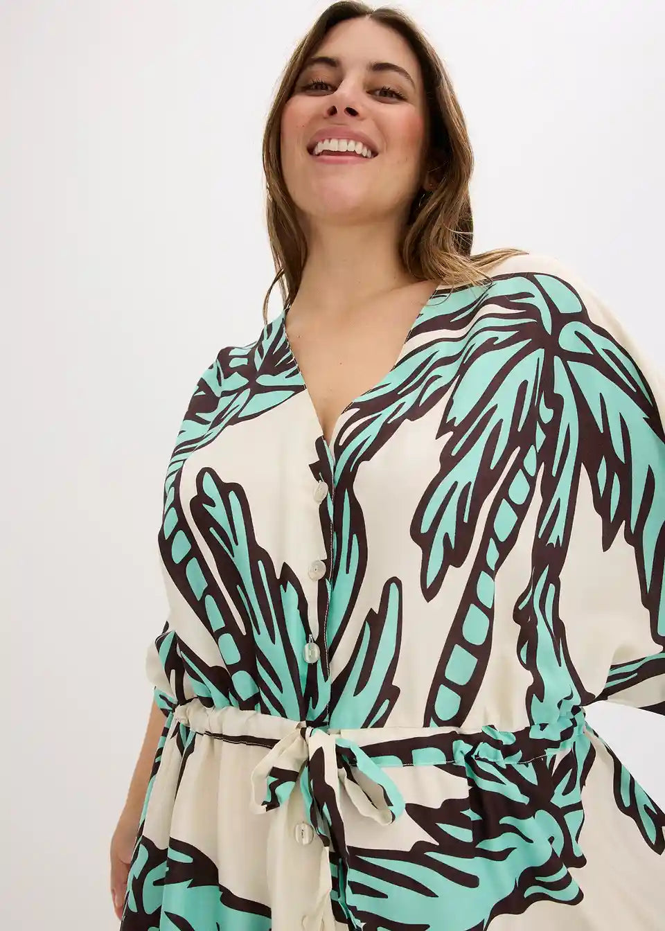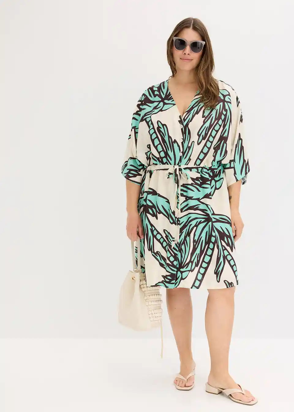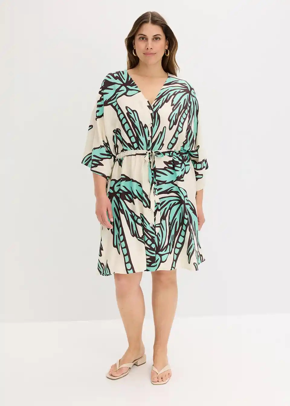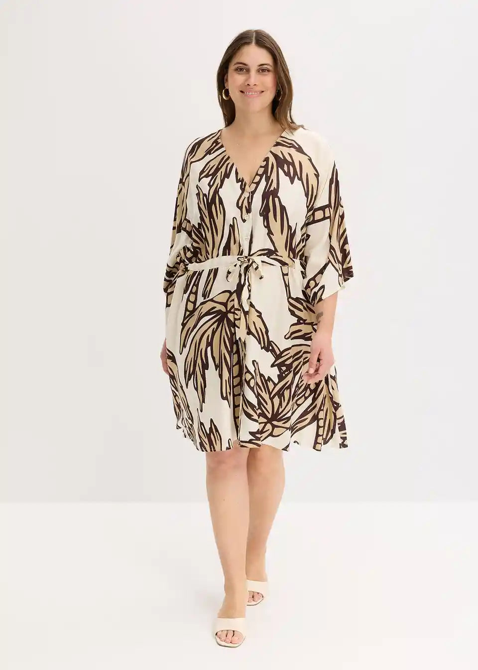 printana haljina od lepršave viskoze s kopčanjem sprijeda i uzicom u struku