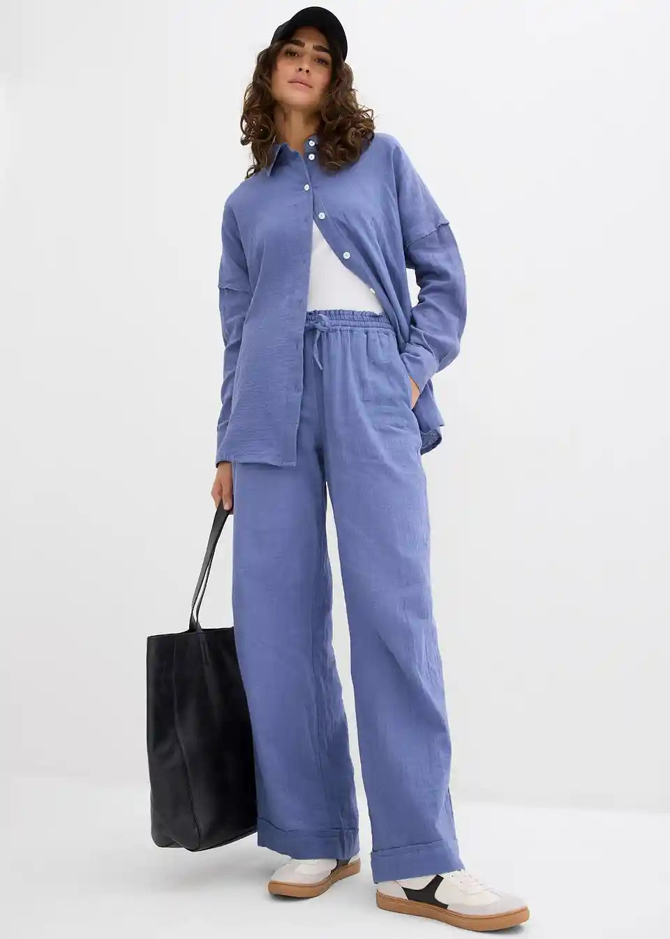 Muslin hlače s poderanim porubom od čiste pamuka