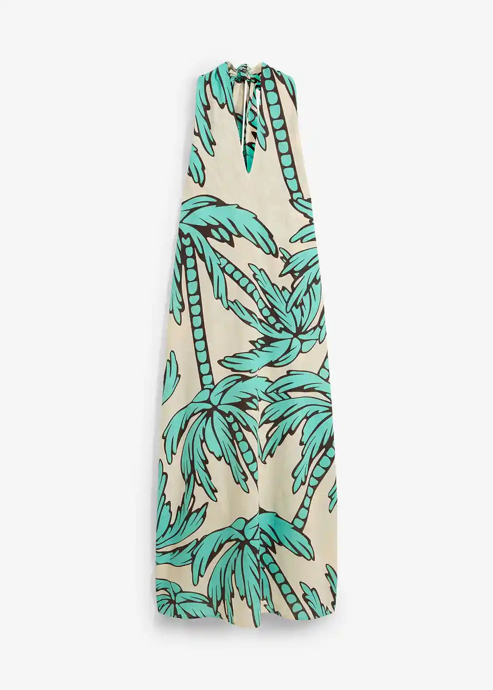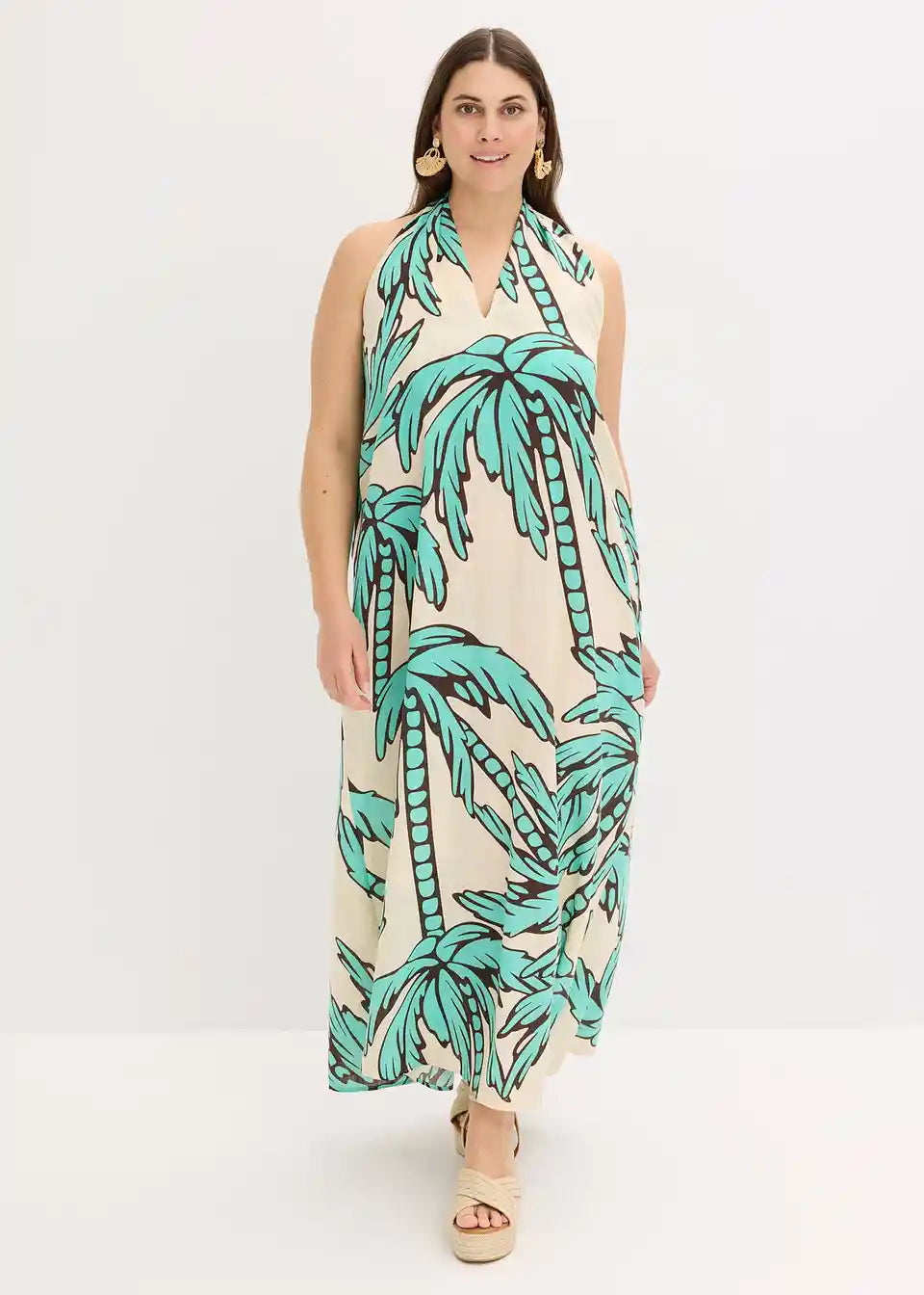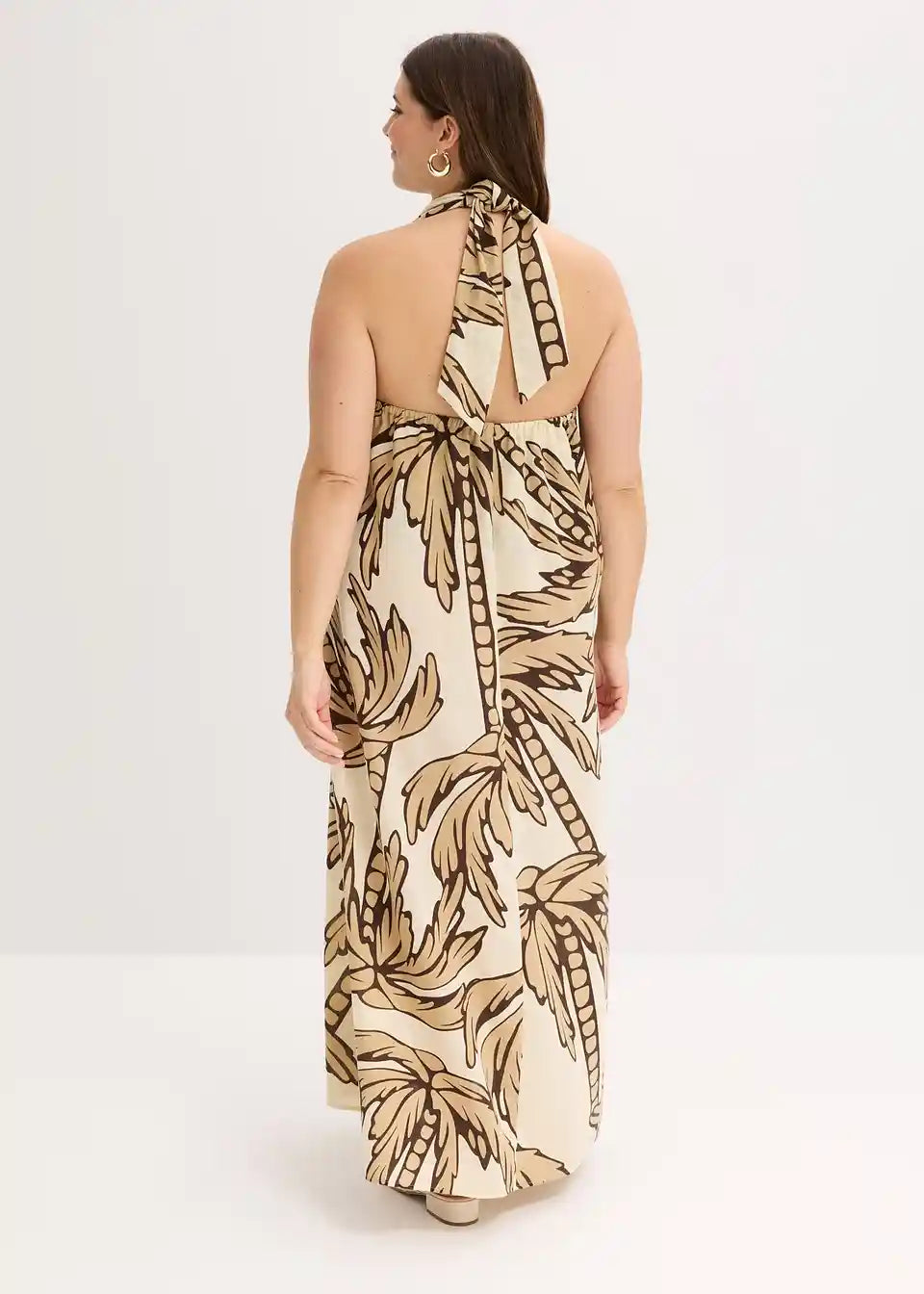 moderna Neckholder maxi haljina u A-kroju od laganog materijala s izgledom lana
