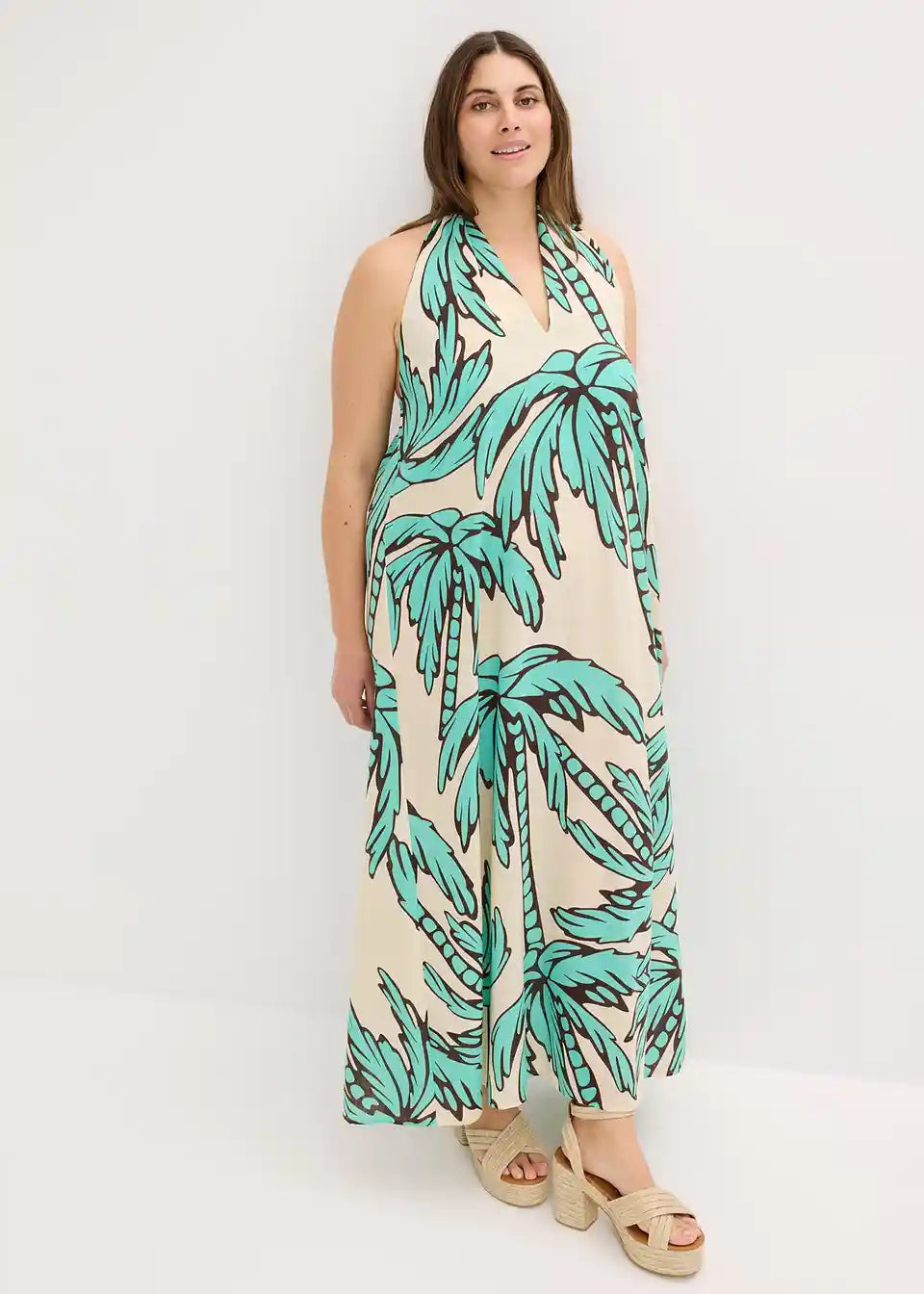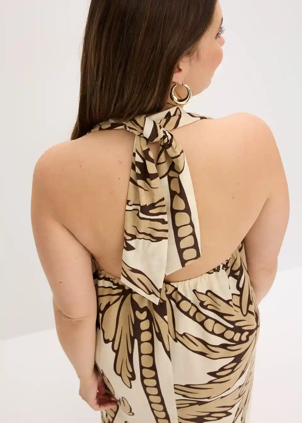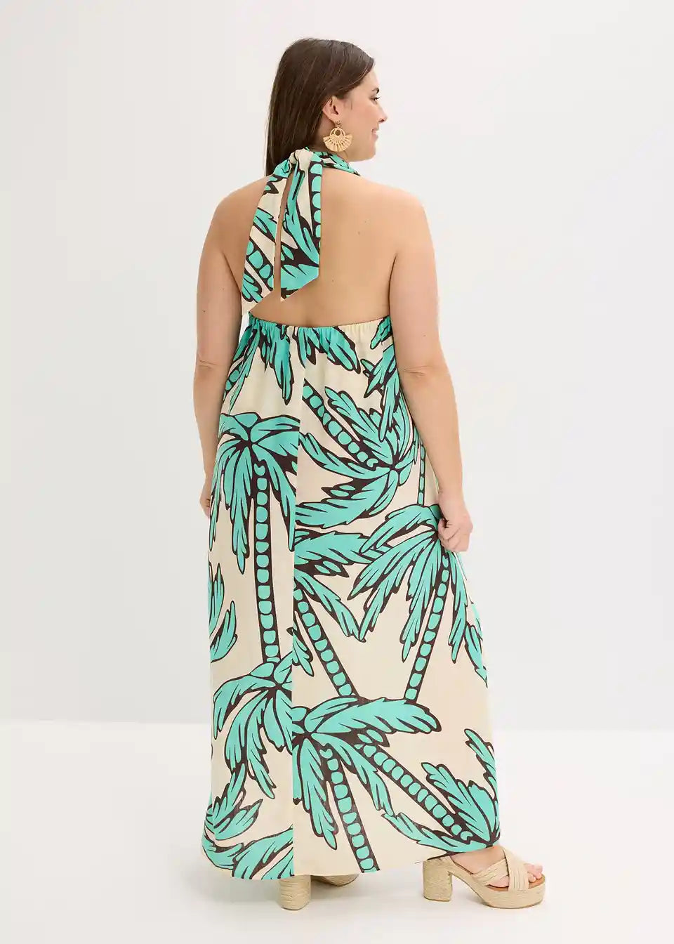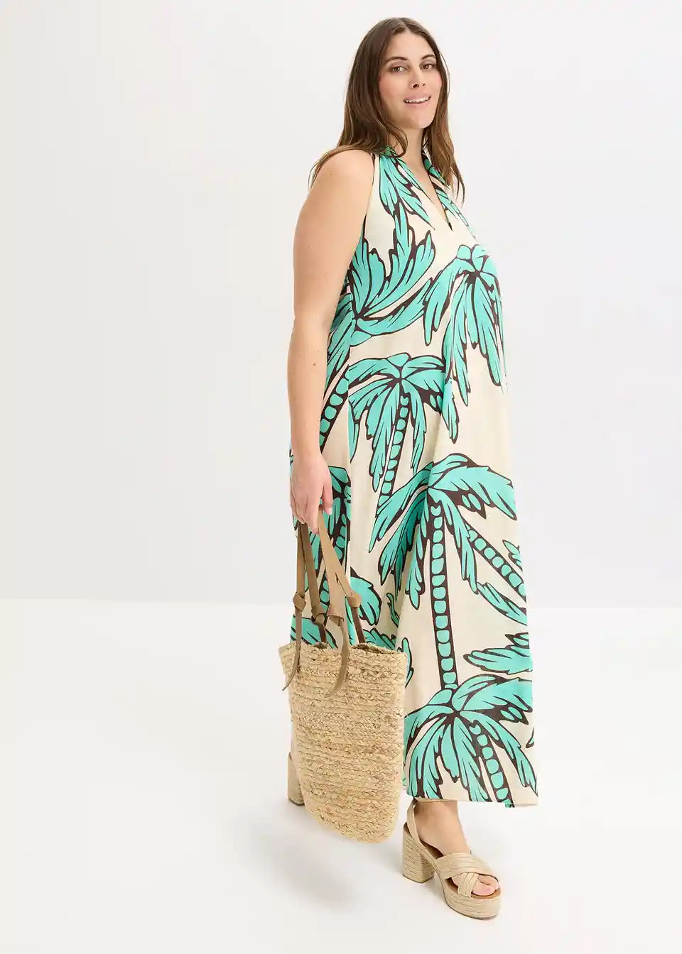 moderna Neckholder maxi haljina u A-kroju od laganog materijala s izgledom lana