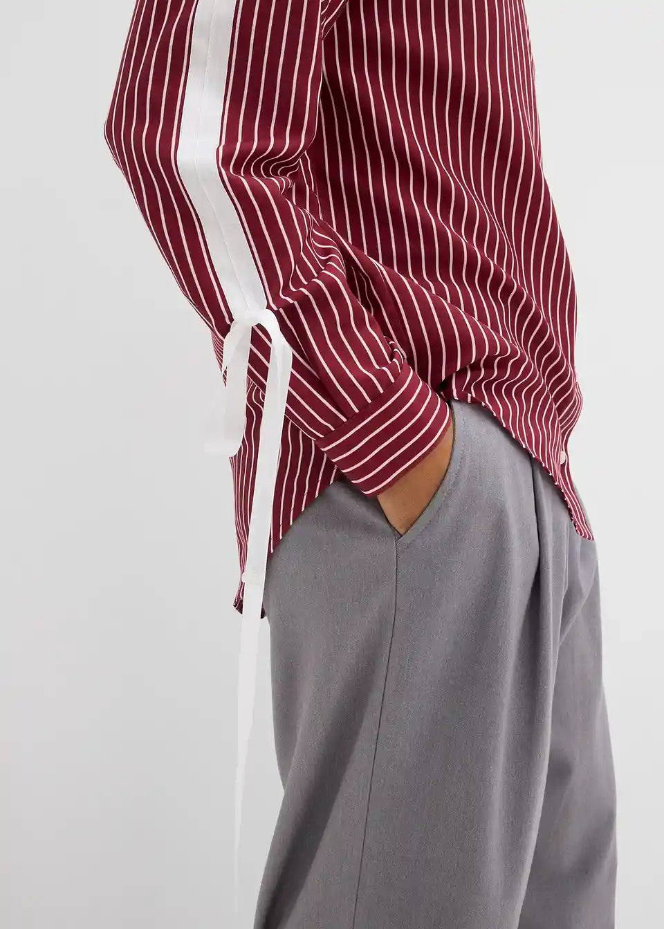 Moderna oversize košulja od organskog pamuka sa bočnom mašnom na rukavu