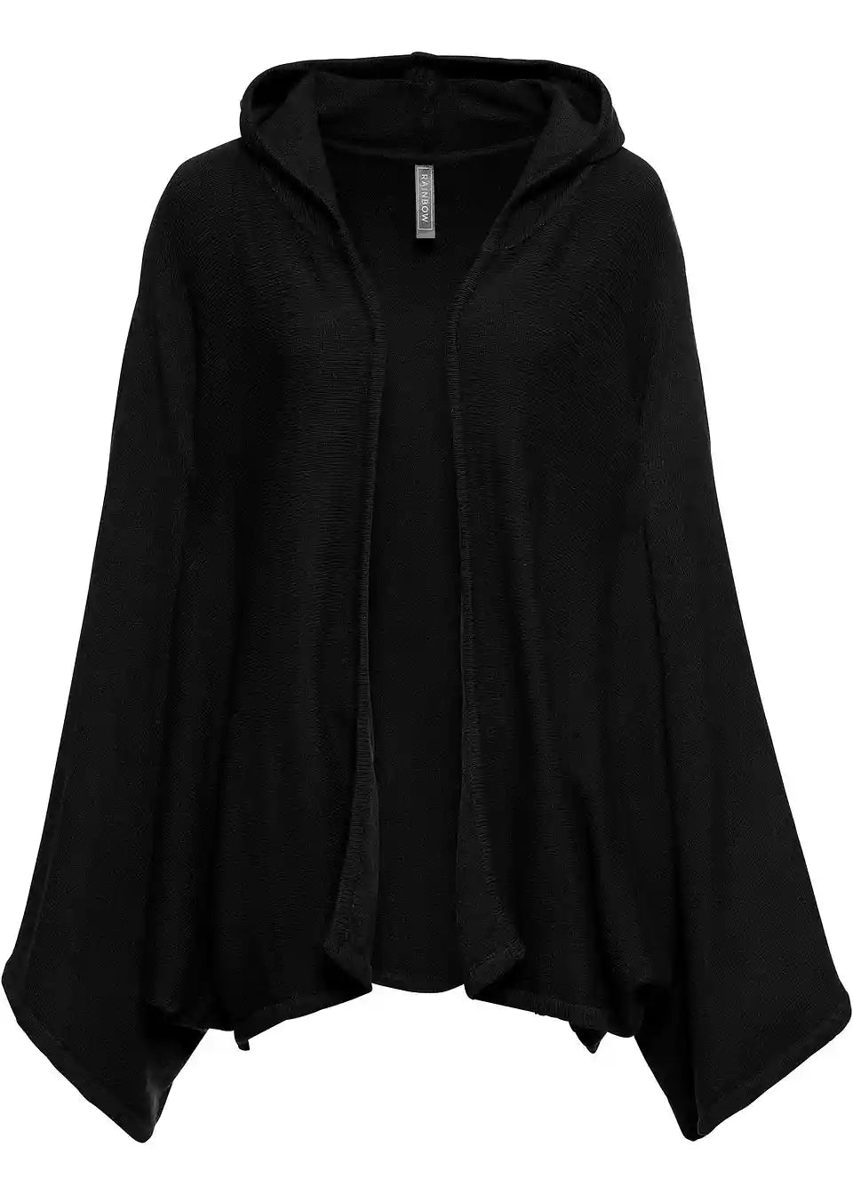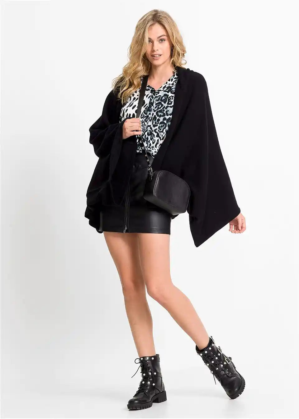 Ova jakna u kimono stilu predstavlja se kao vrsta ponča. Genijalni model u oversize izgledu osvaja svojom XXL-siluetom i kapuljačom. Njegov prostrani kroj pruža visoku razinu udobnosti. Bilo da je nosite uz fancy izgled s kratkim hlačama od imitacije kože i životinjskim uzorkom, all-in-black izgled s uskim hlačama i majicom dugih rukava ili uz uzorak na maksi haljini: fantastična pletiva jakna sa širokim rukavima privlači pažnju.