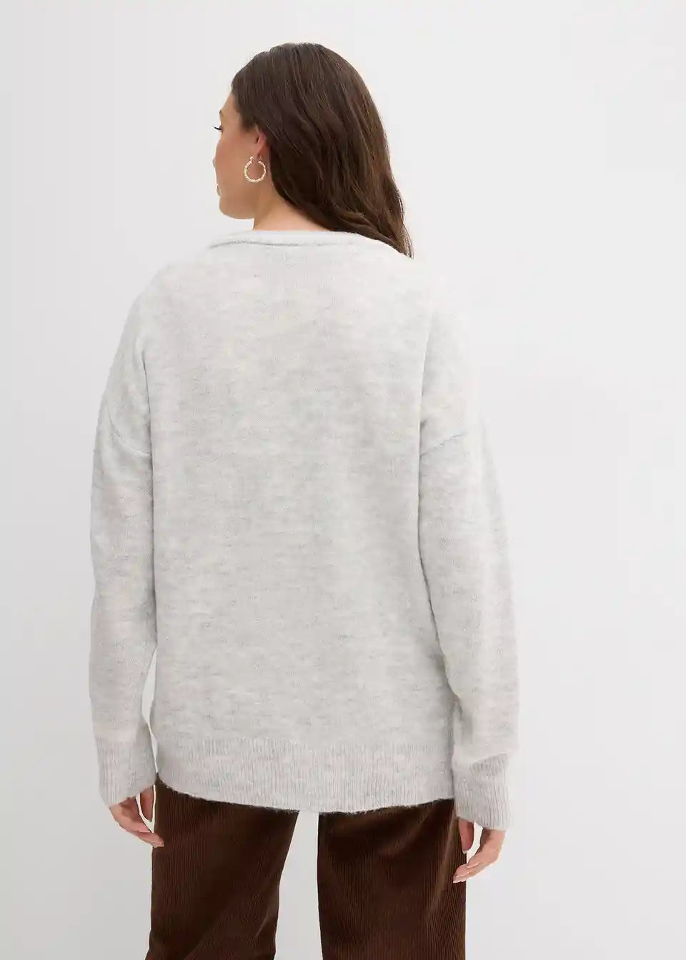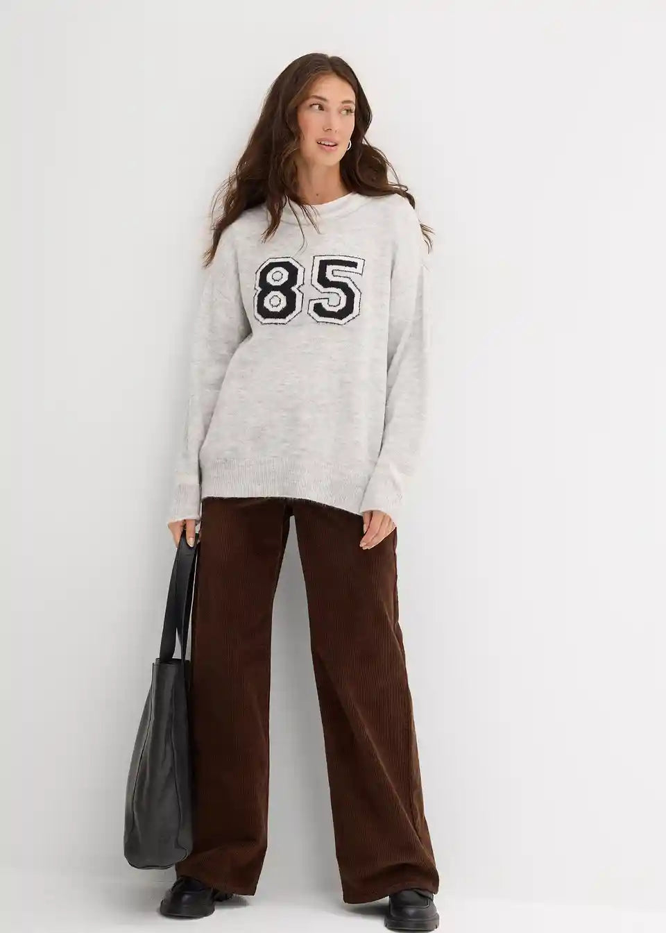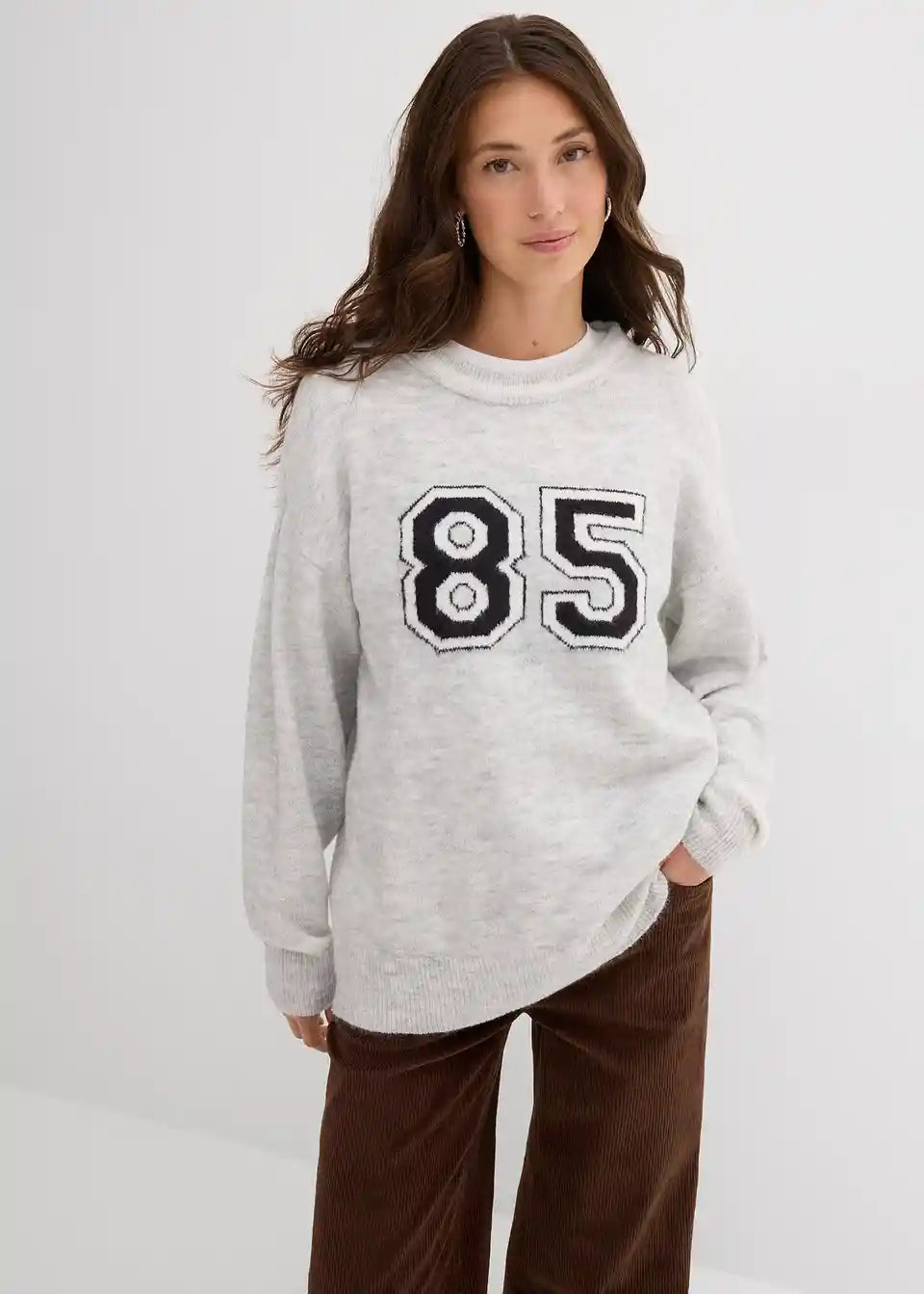 Moderan oversize-pulover s niskim ramenom i natpisom