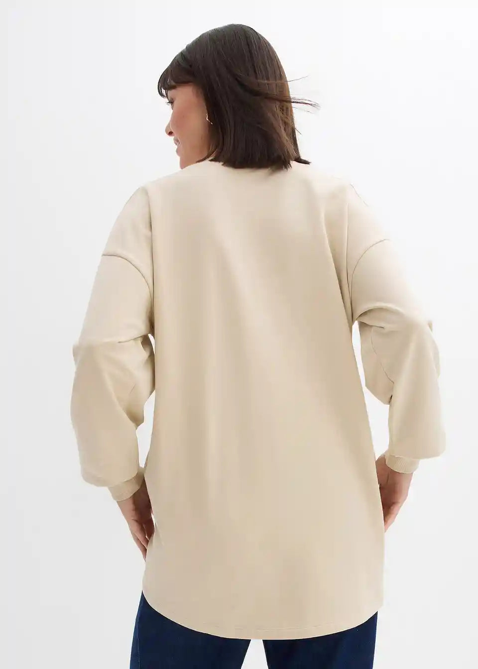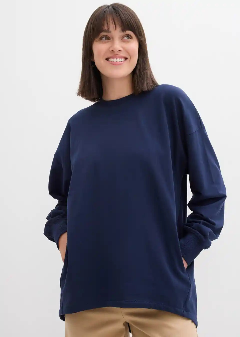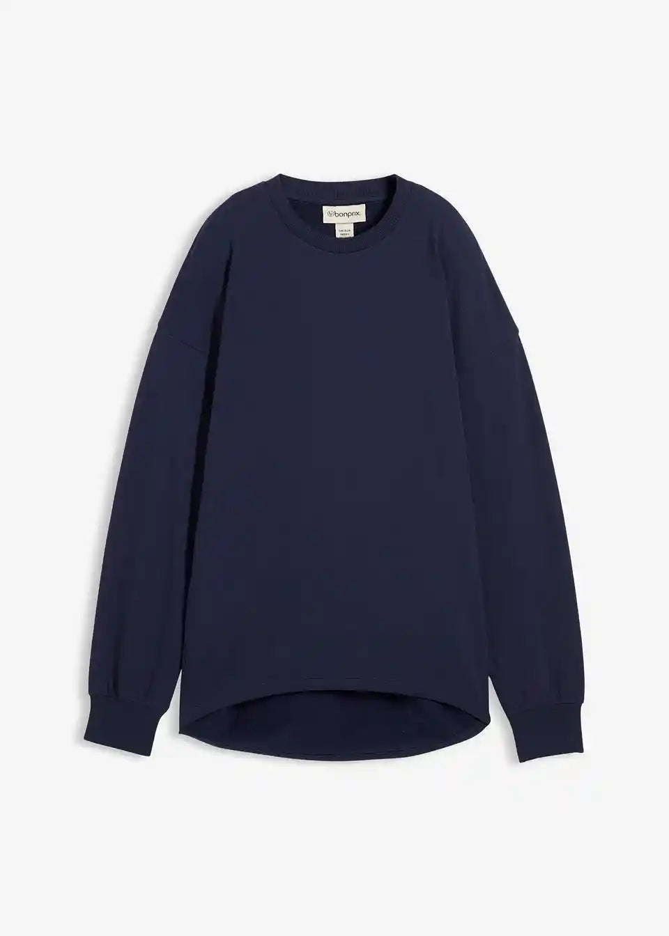 Sweatshirt s opuštenim ramenima i pomaknutim bočnim šavom. Širok kroj.