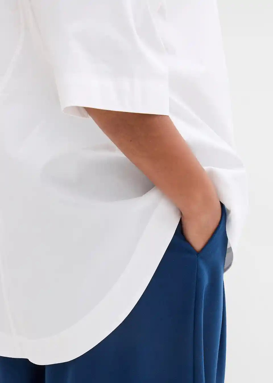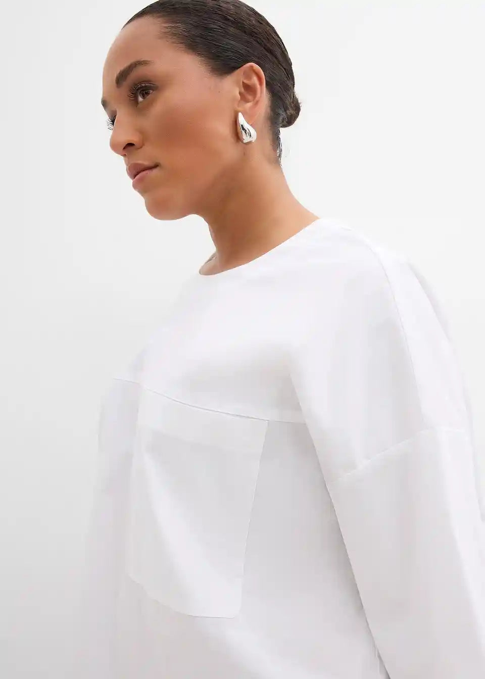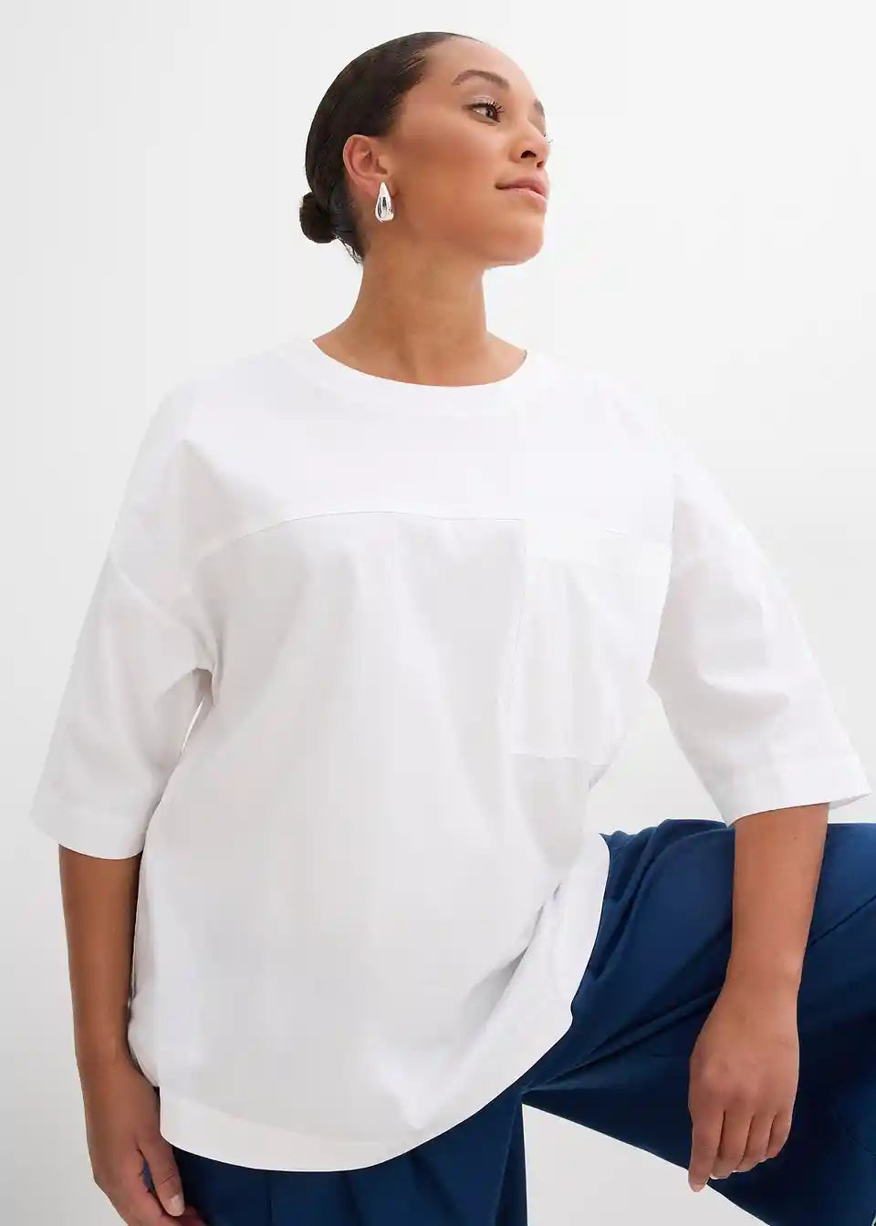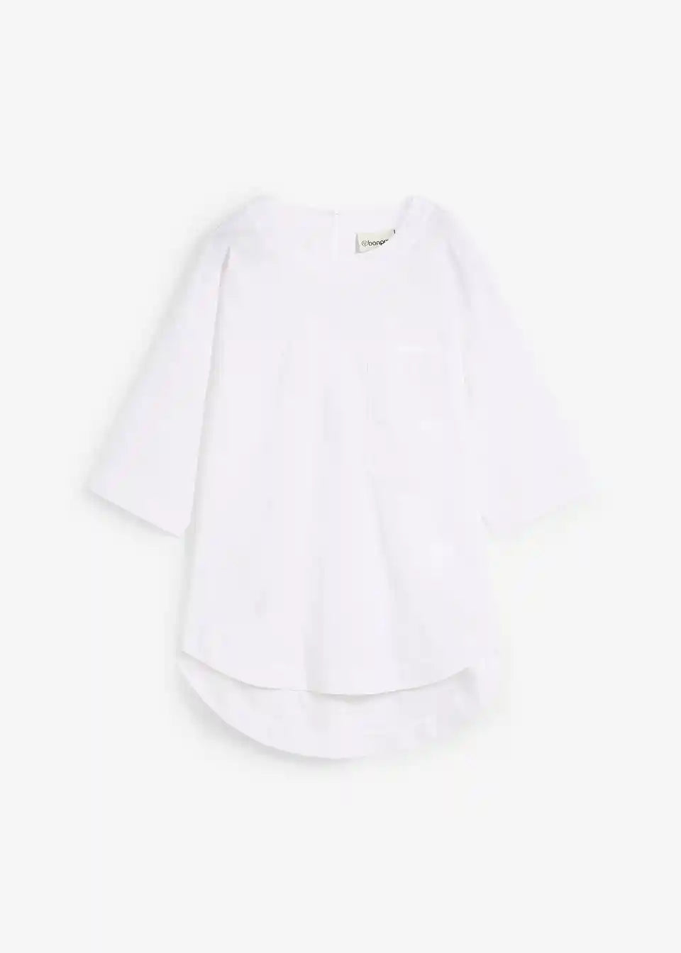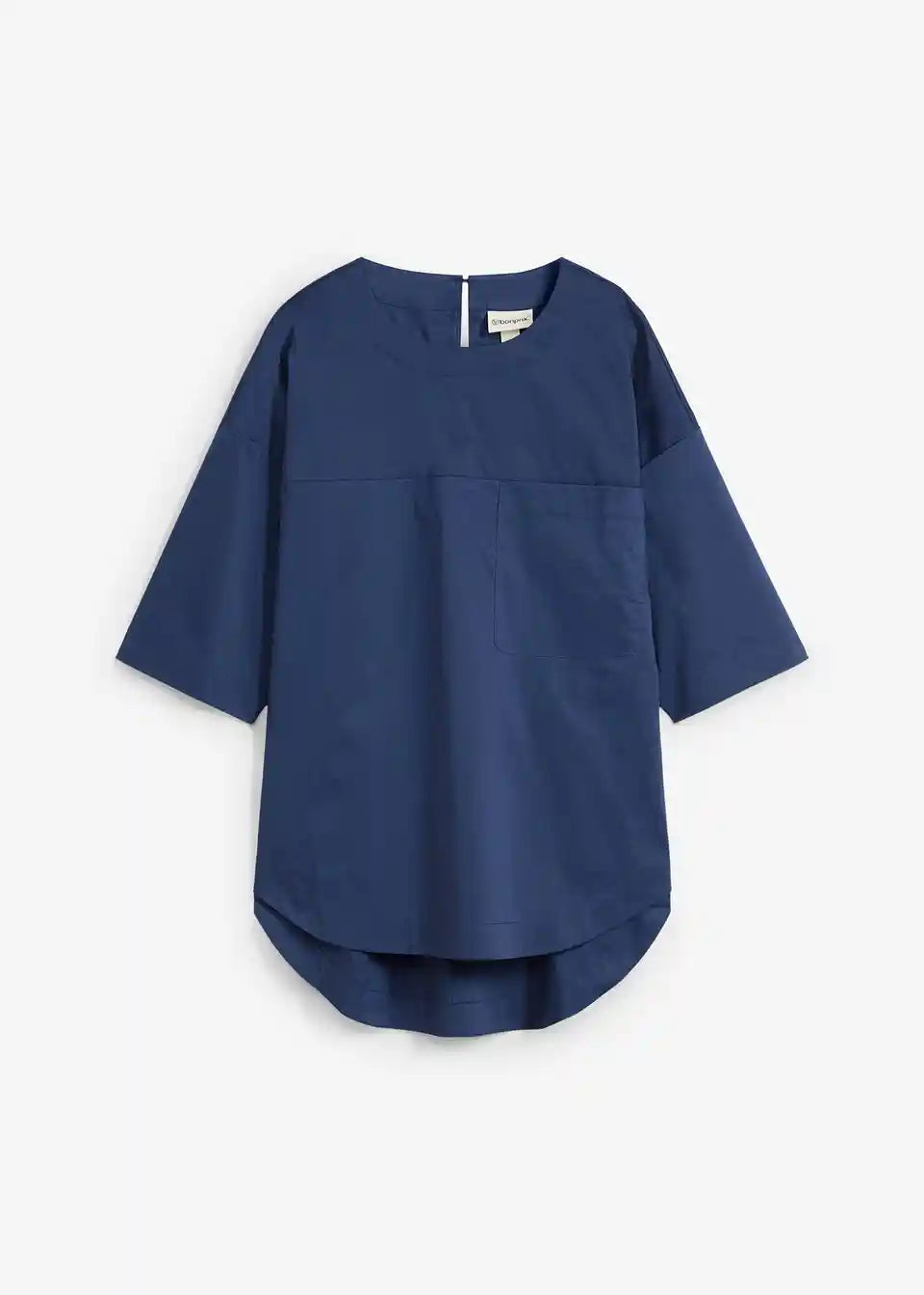 T-shirt oversized kroja s jednom prsnom džepom i otvorom na ključanicu s kopčanjem na gumb na stražnjoj strani vrata