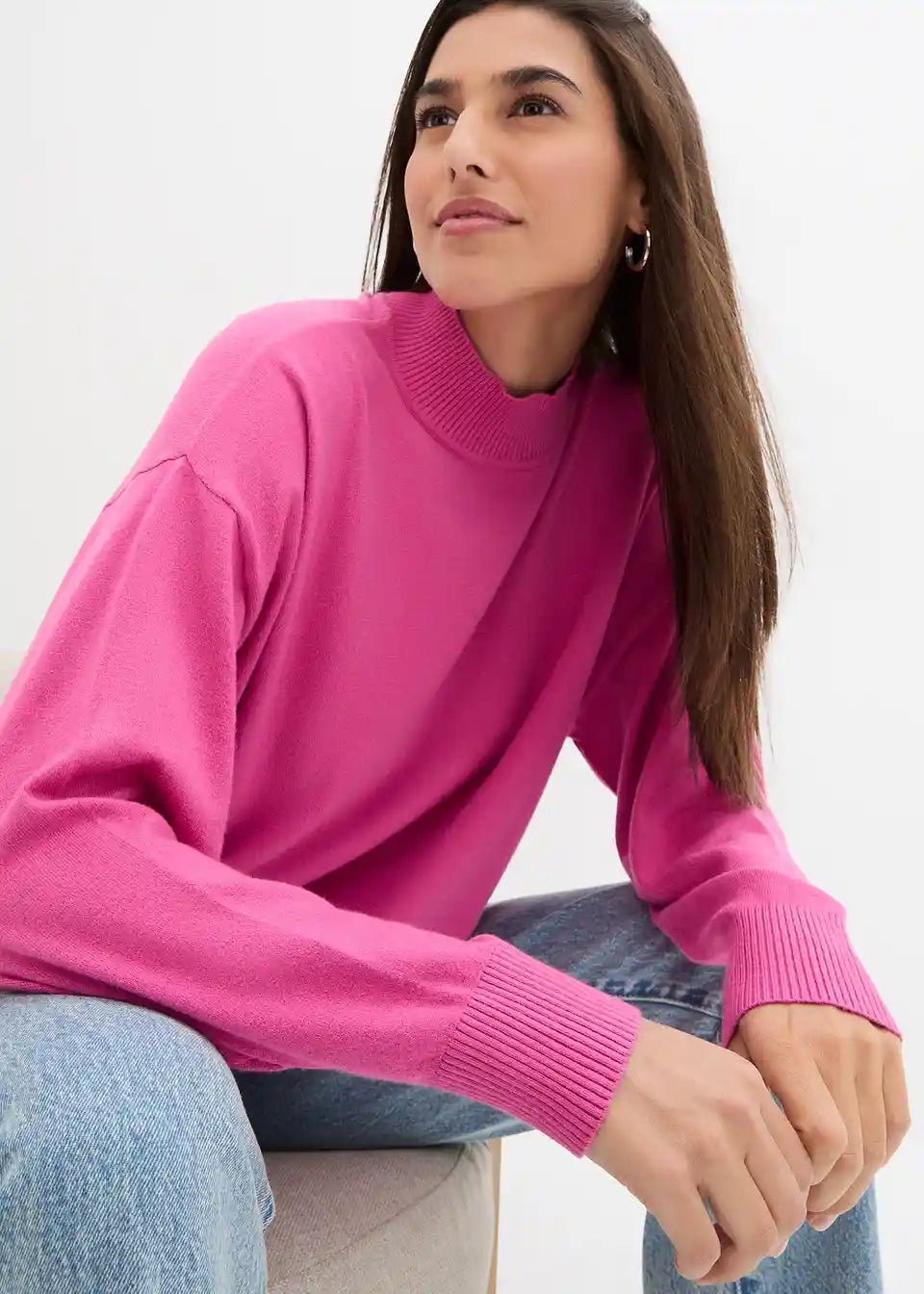 Udoban pulover s visokim ovratnikom i rebrastim umetcima