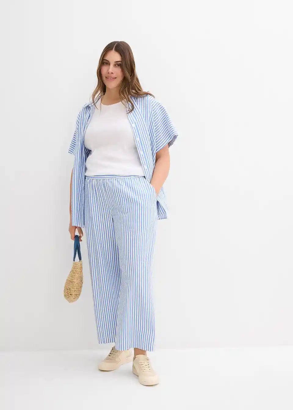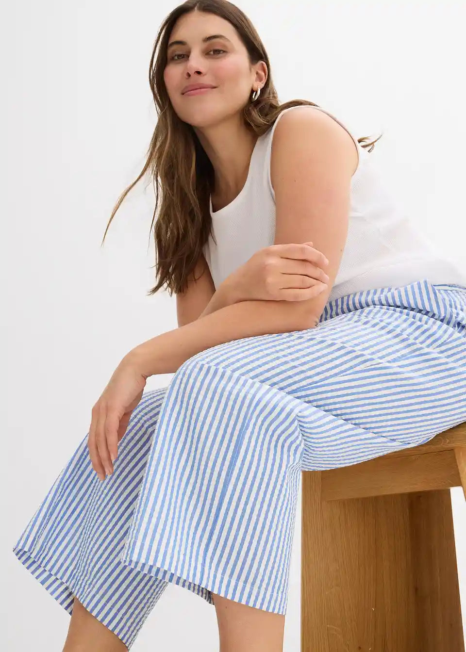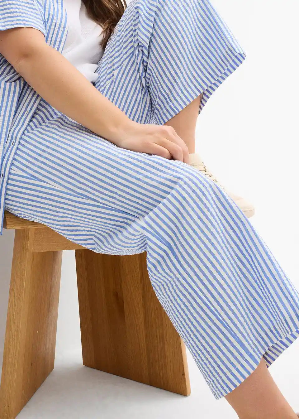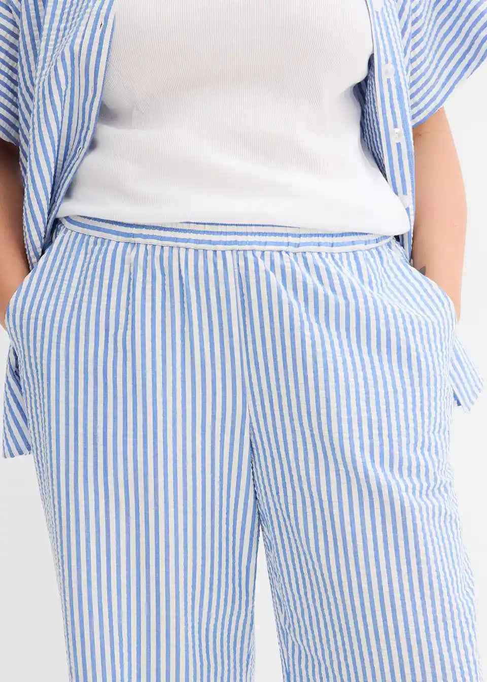 Široke hlače od pamučnog seersuckera s udobnim pojasom