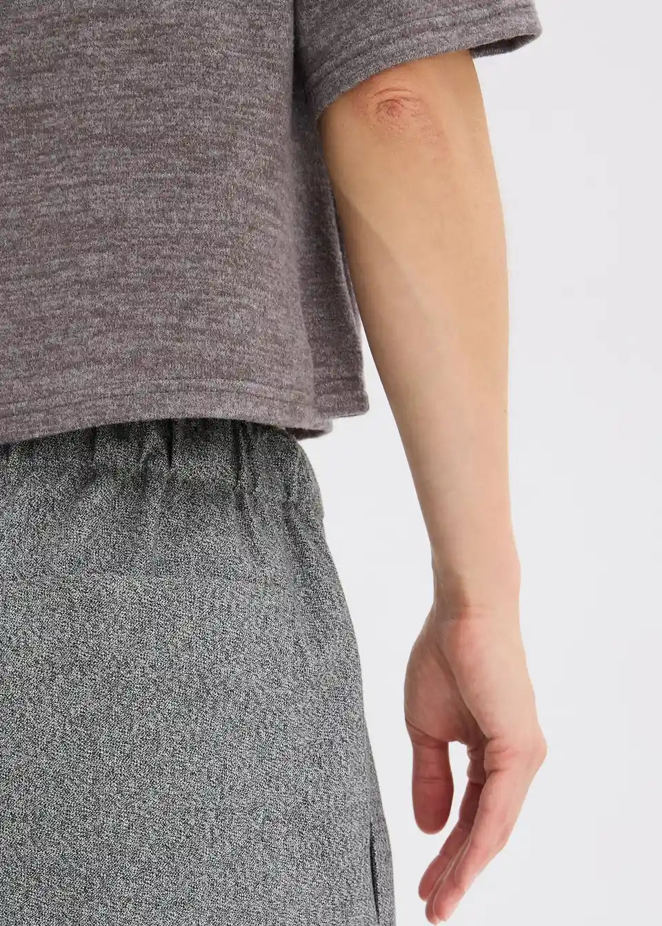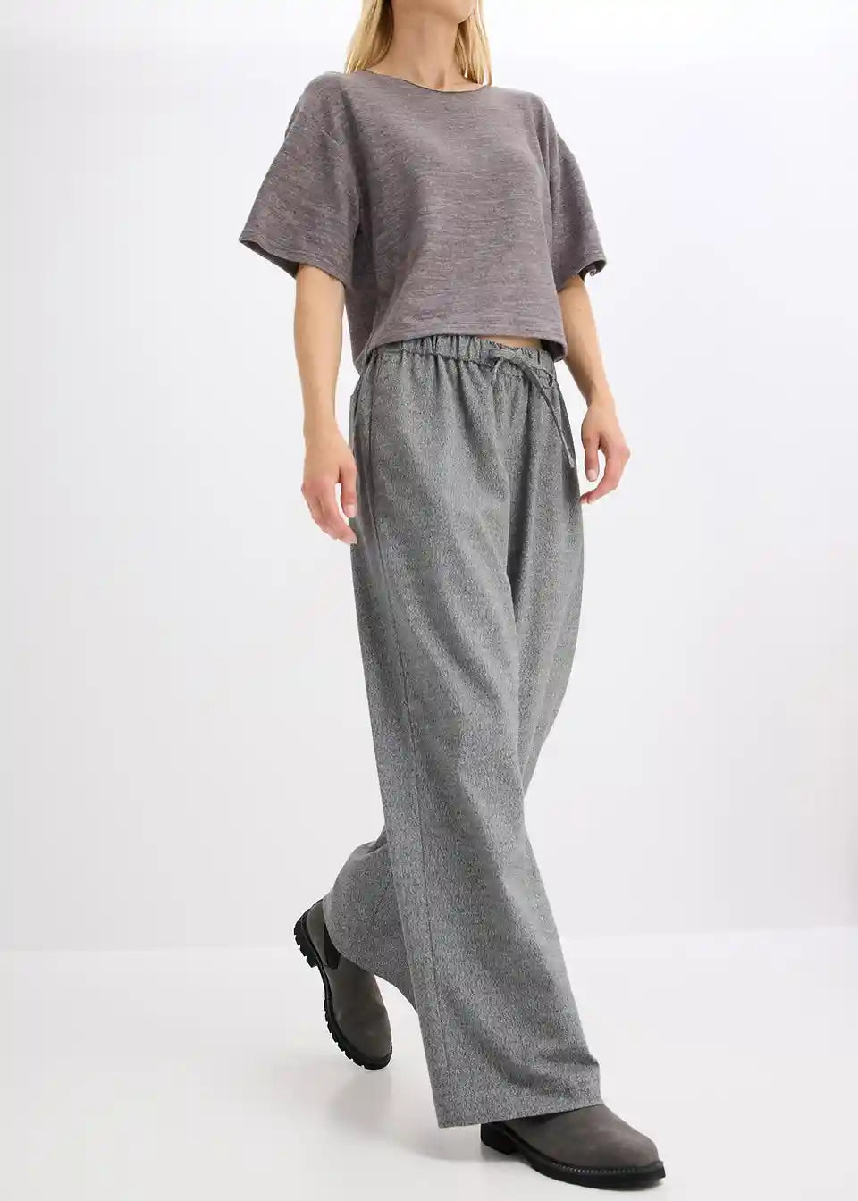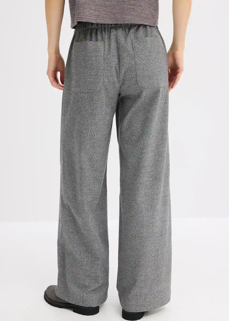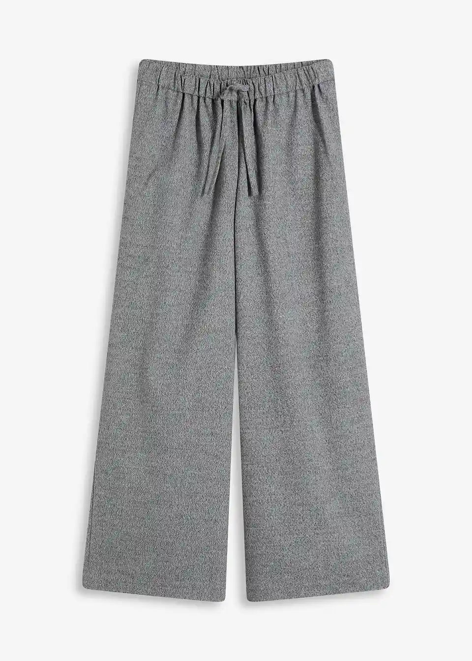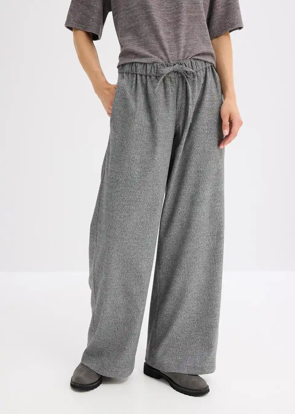 Široke hlače u izgledu soli i papra s vezicom u struku i bočnim džepovima.