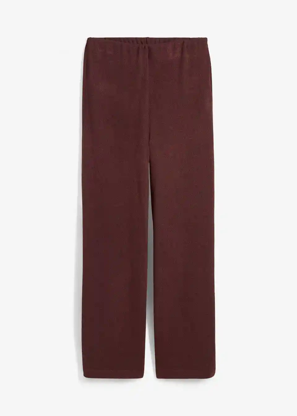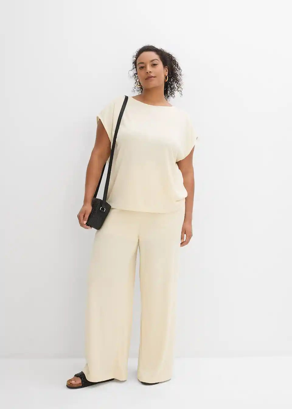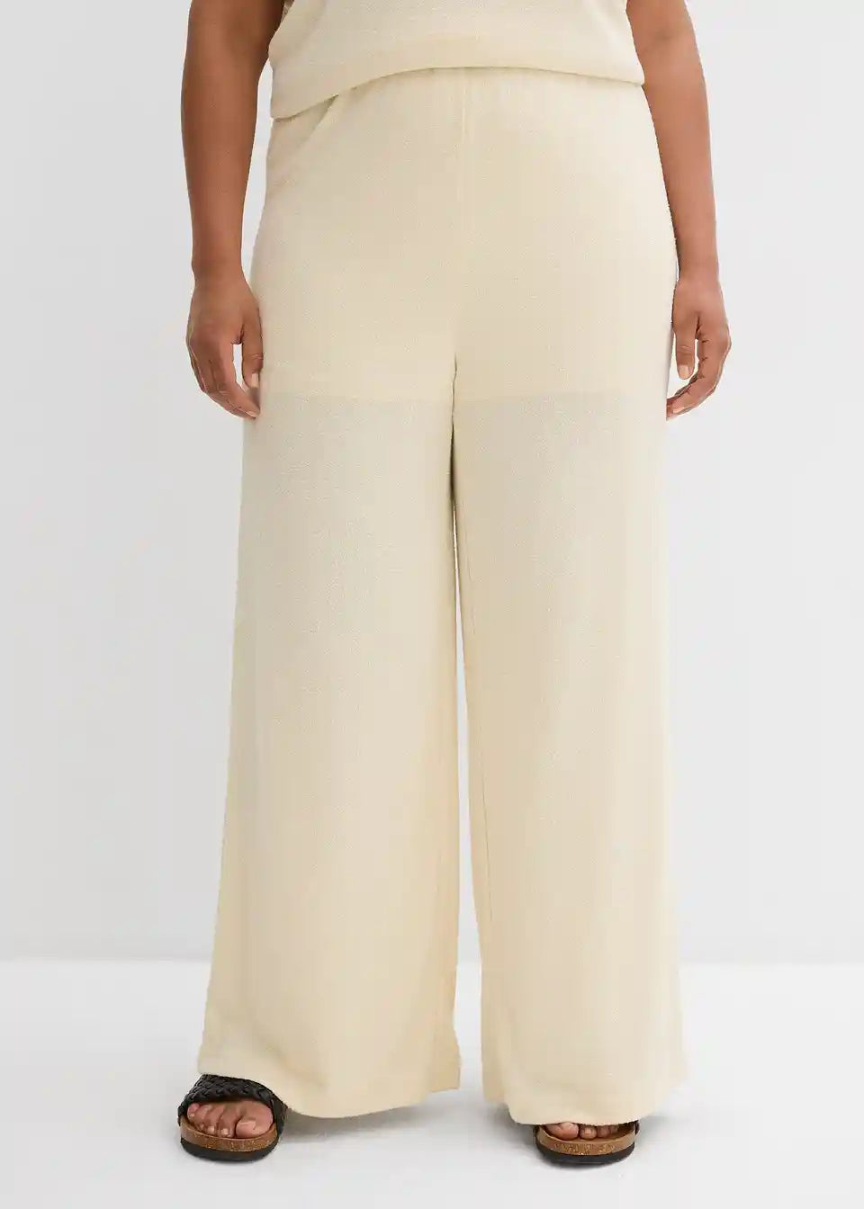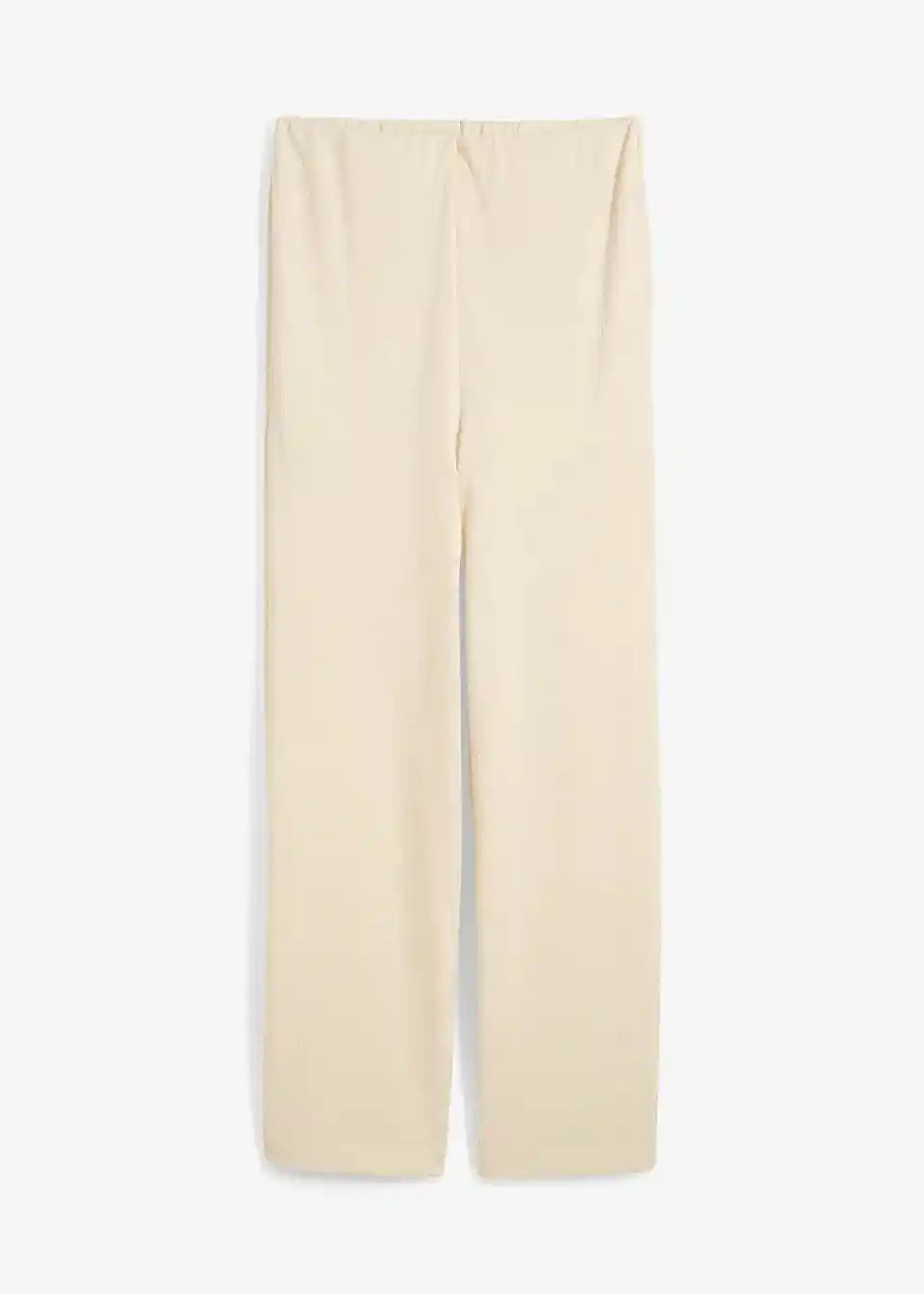 Široko krojene hlače s visokim elastičnim pojasom. S laganom podstavom od mekane viskoze.
