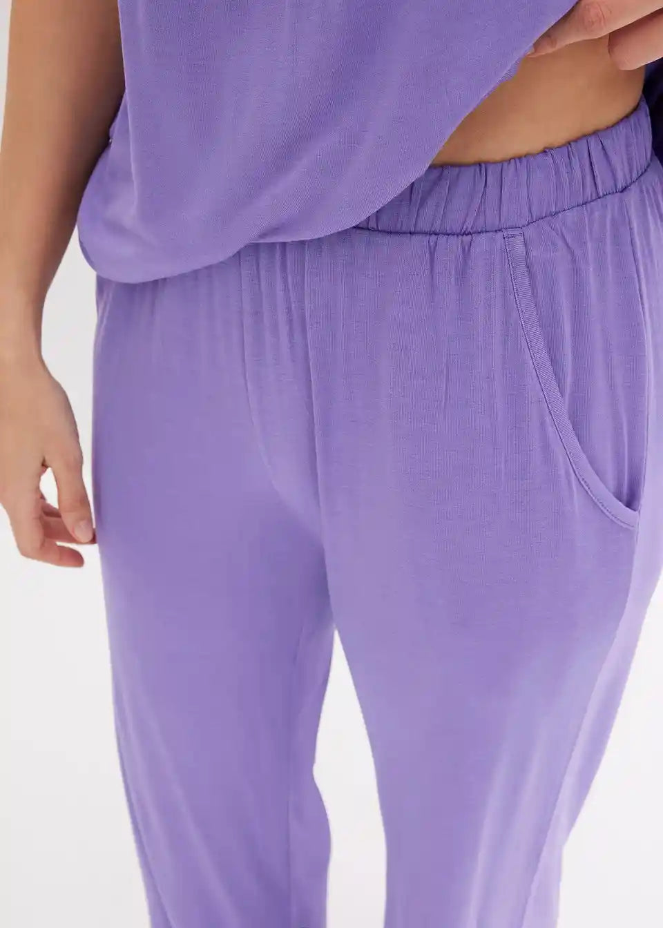 Udobna pidžama sa spuštenim naramenicama i dugim hlačama