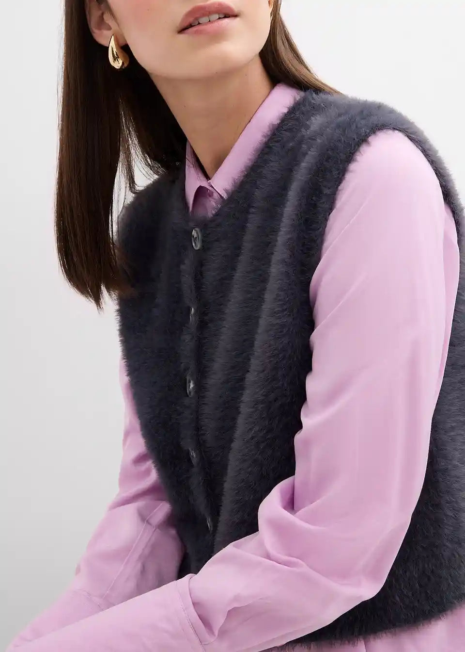 Prsluk od pernate pređe s prednjim kopčanjem na gumbe i mekanim osjećajem