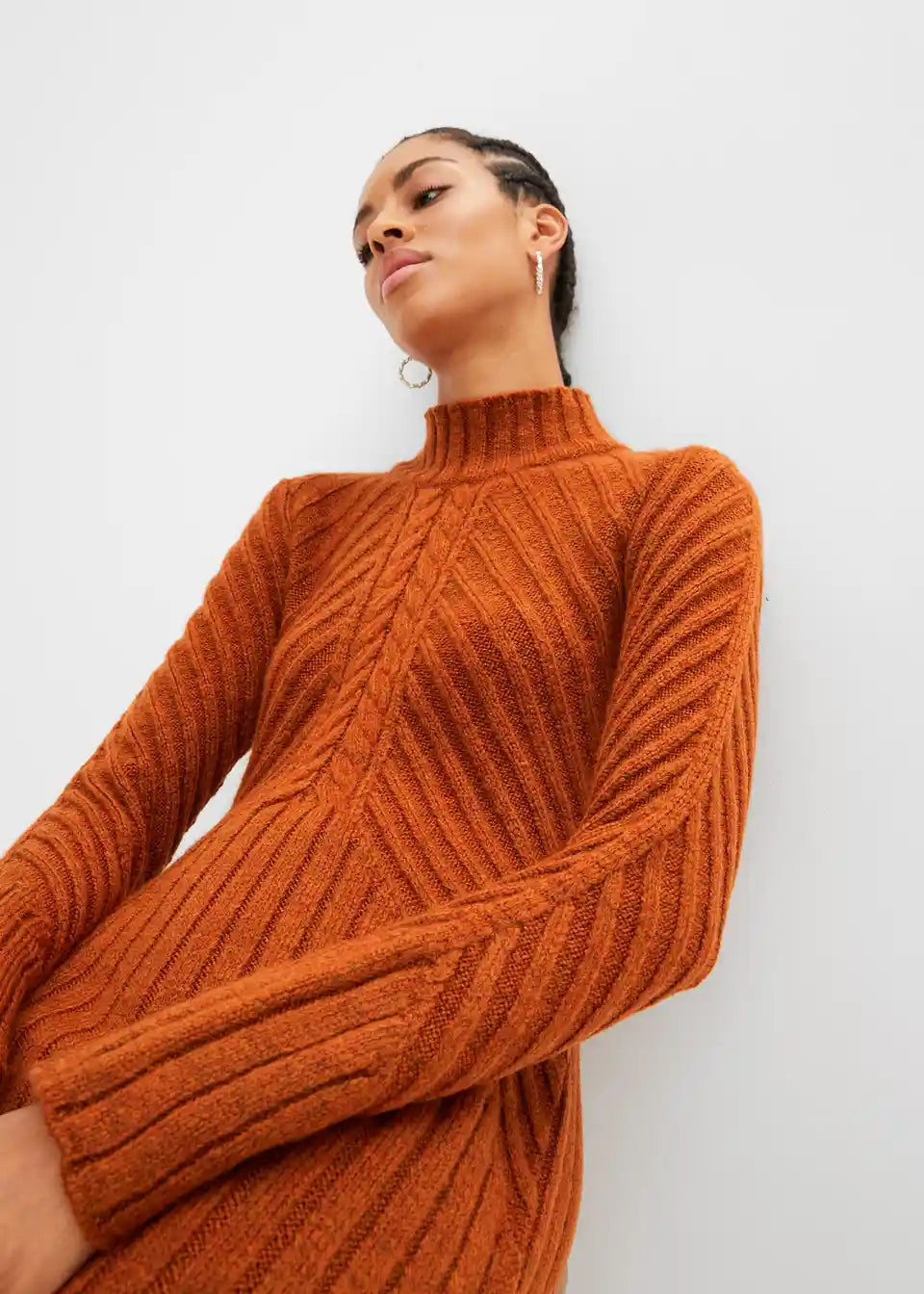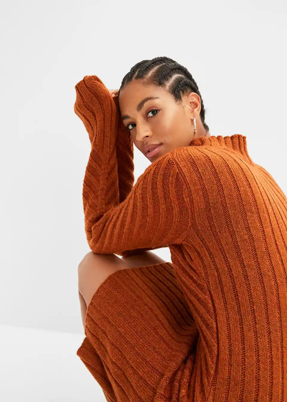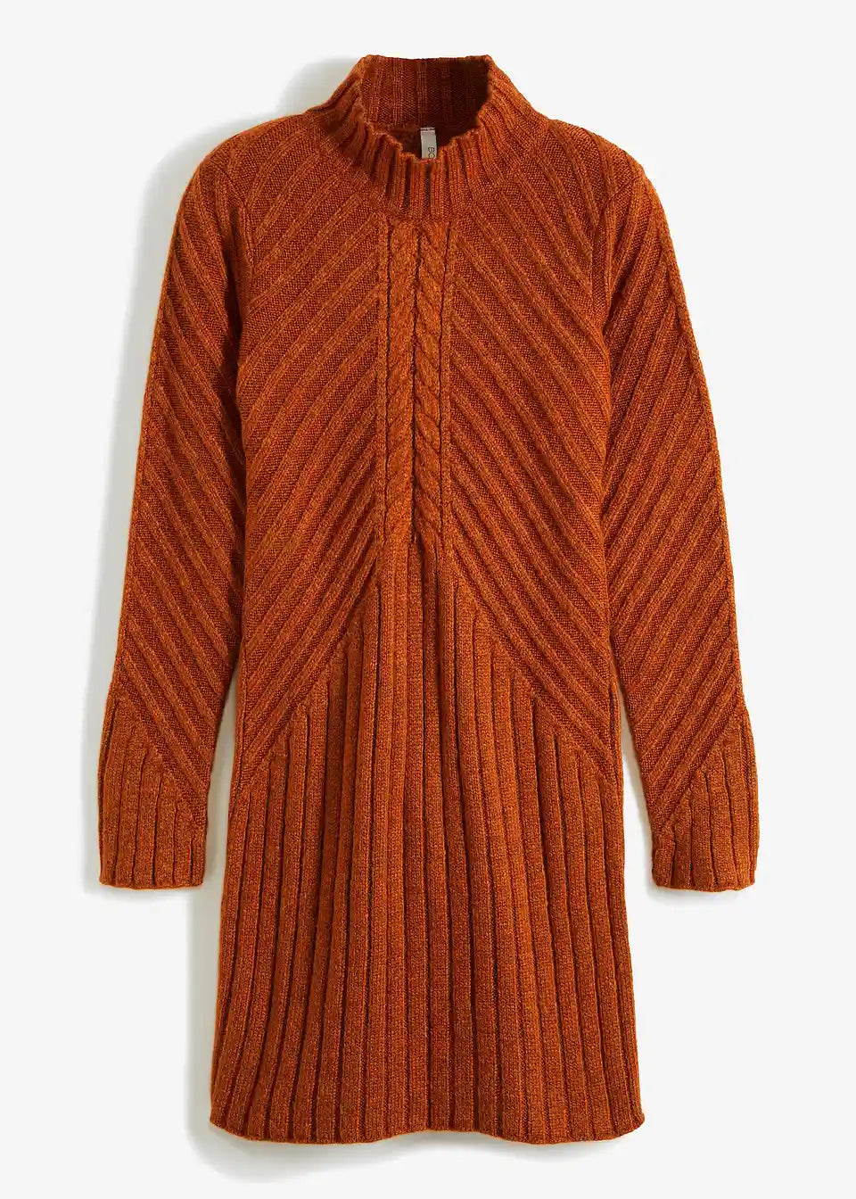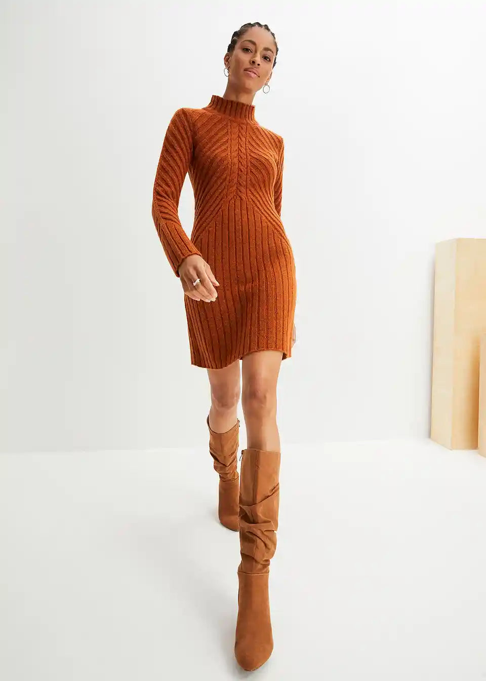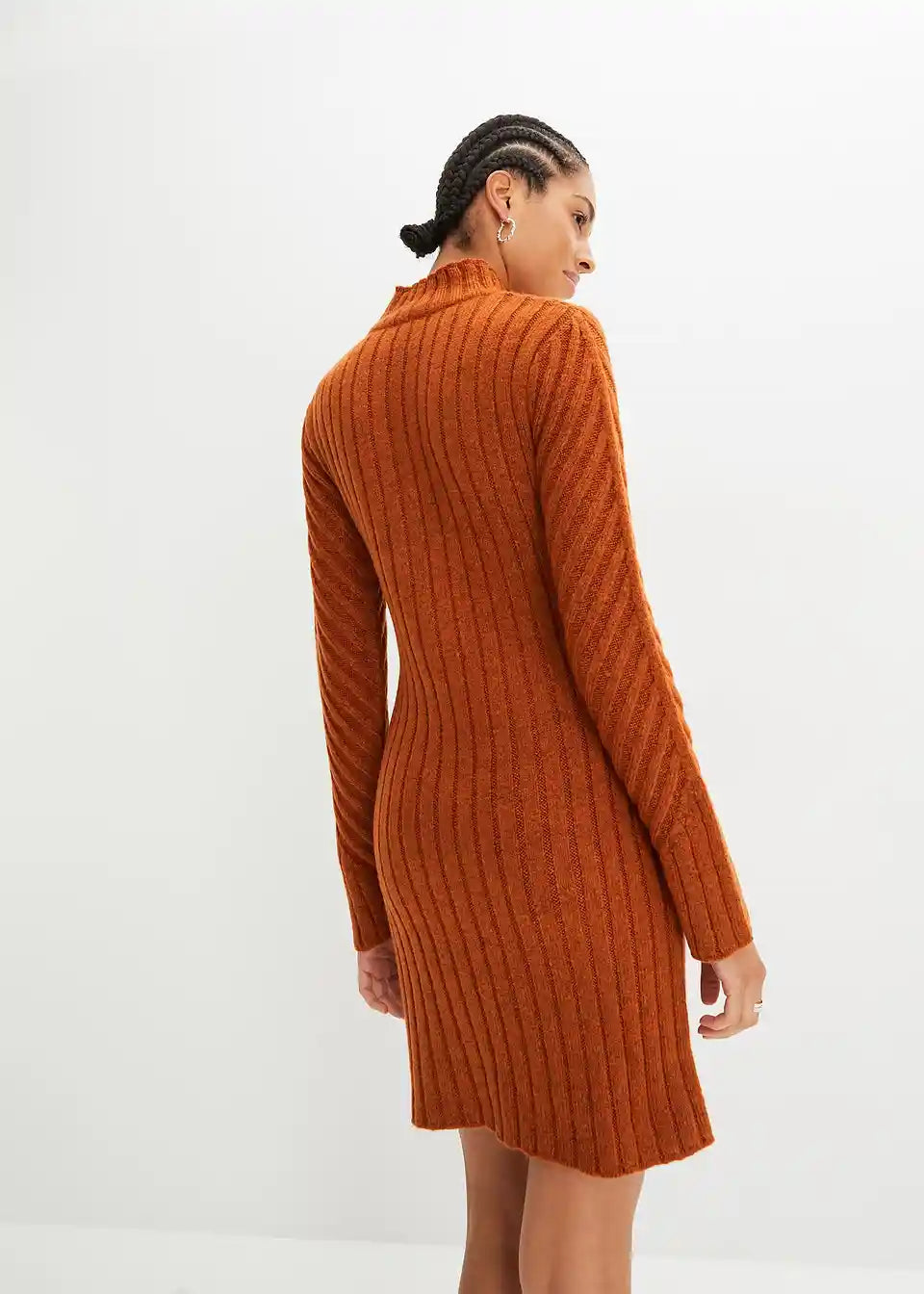 Pletena haljina s rebrastim uzorkom i visokim ovratnikom
