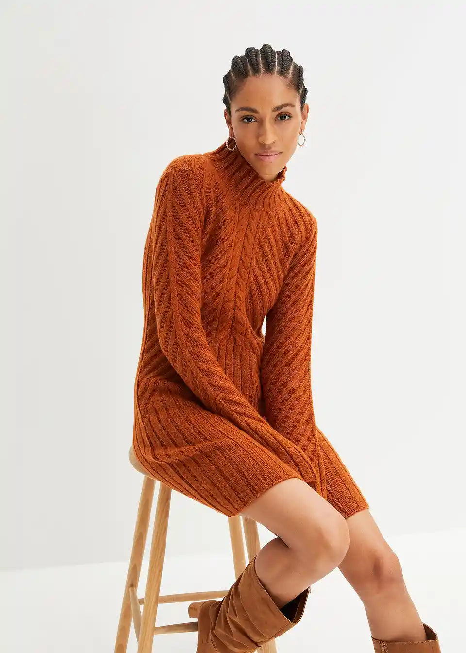 Moderna pletena haljina s visokim ovratnikom