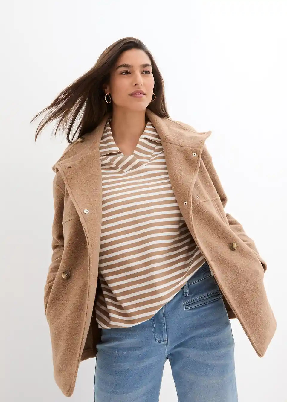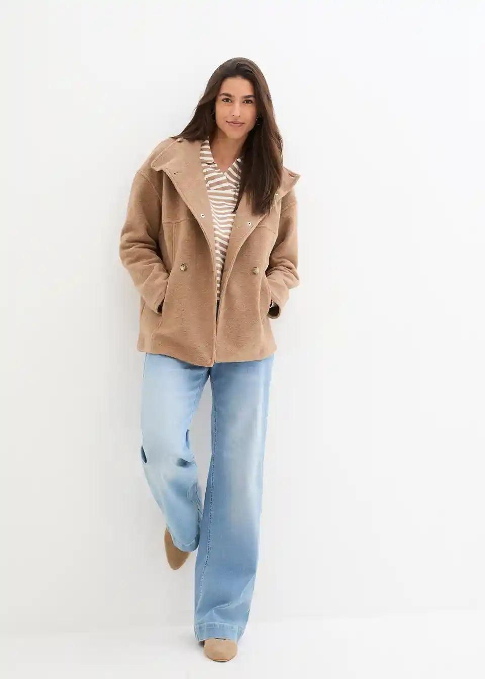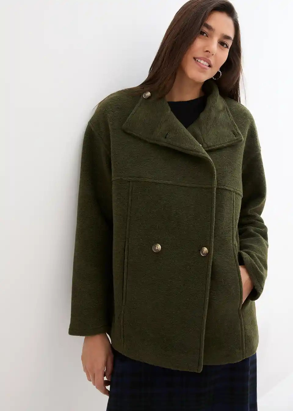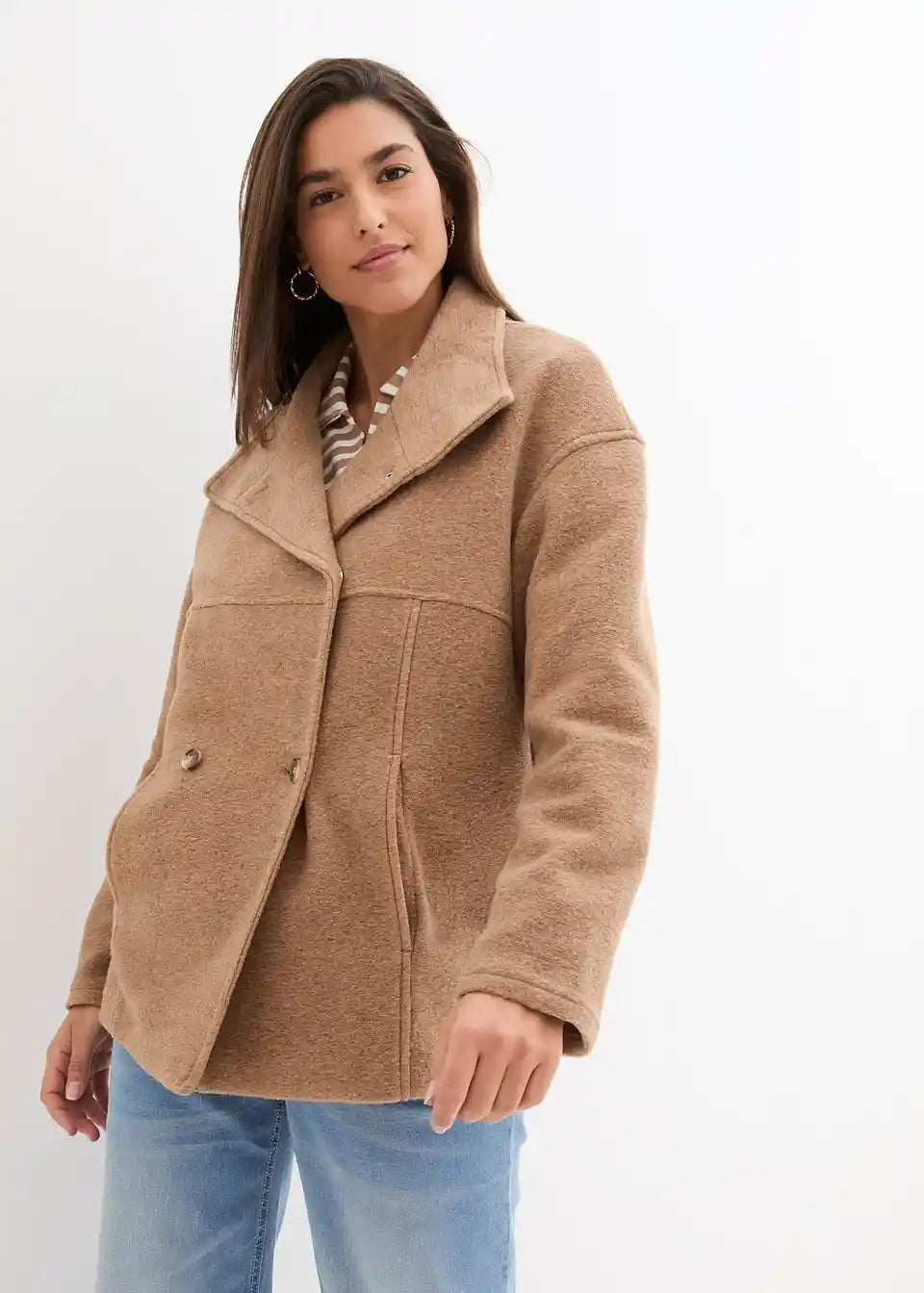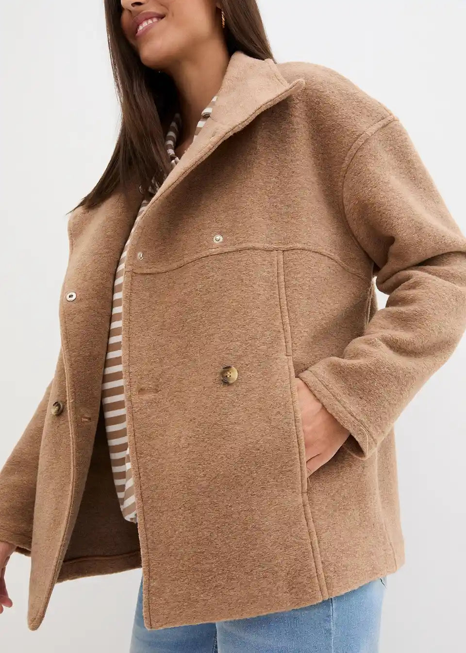 Ležerna prijelazna jakna u vunenom izgledu