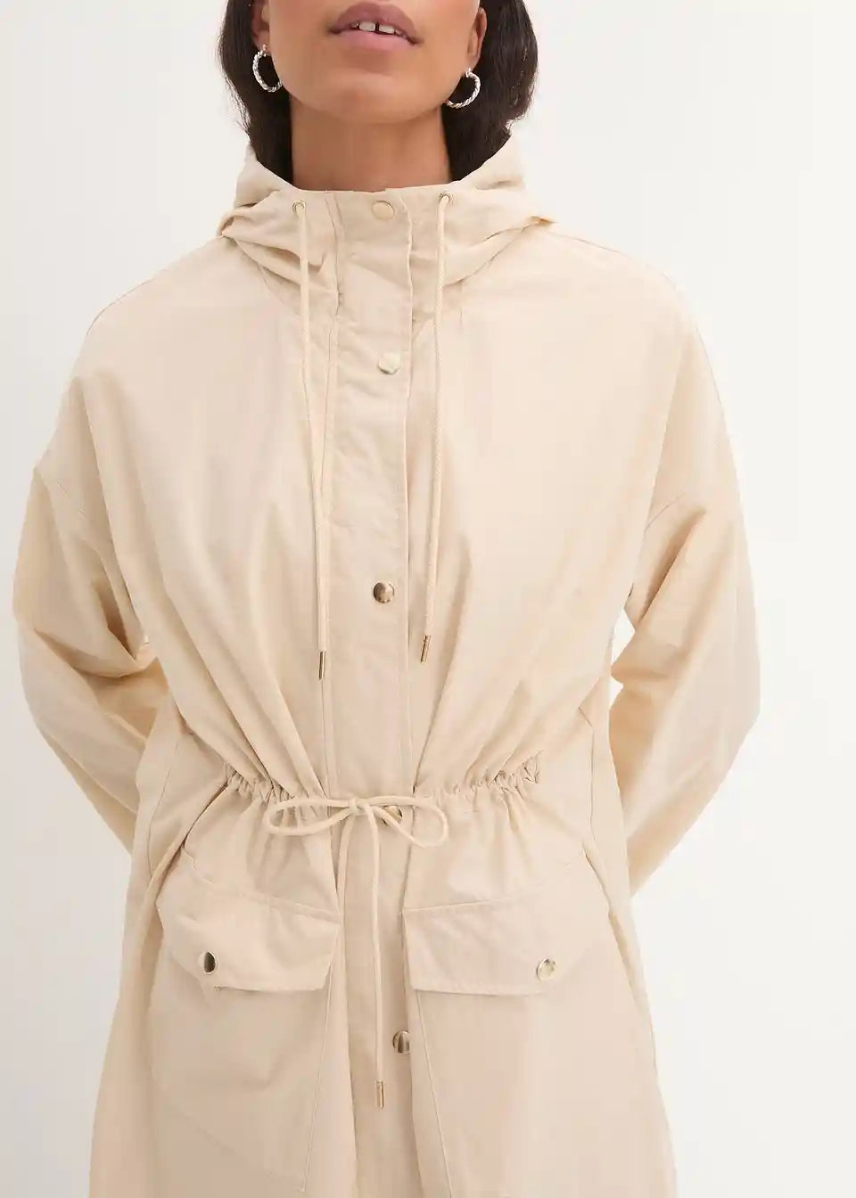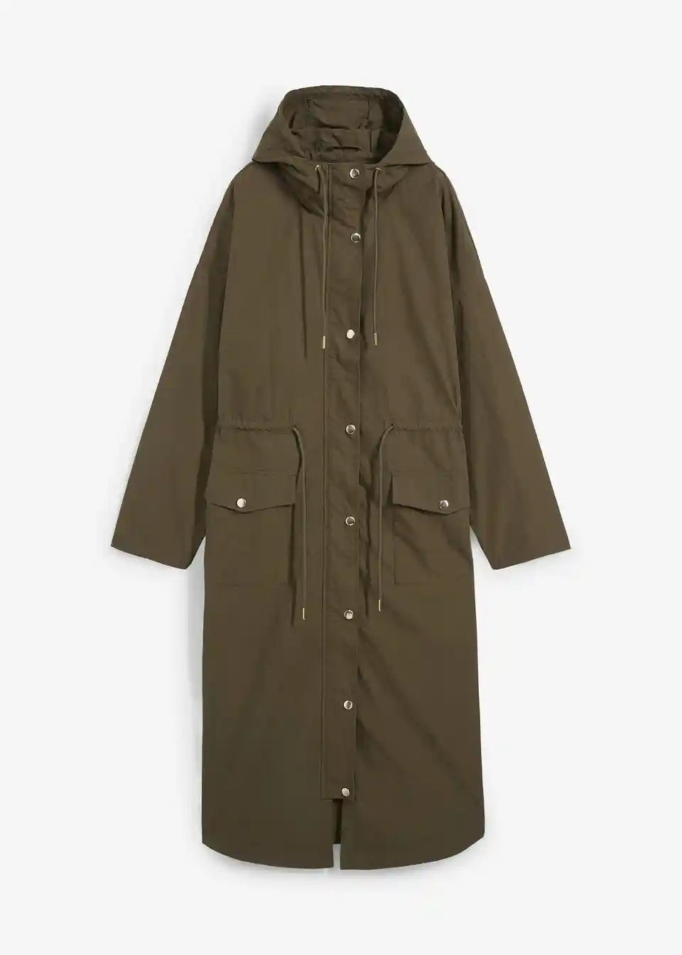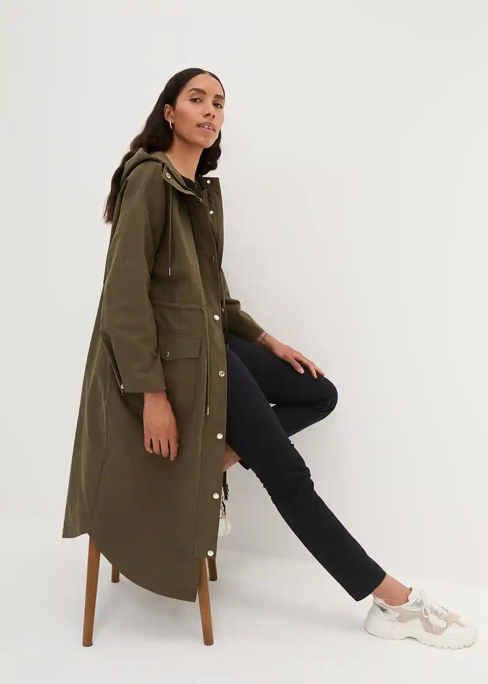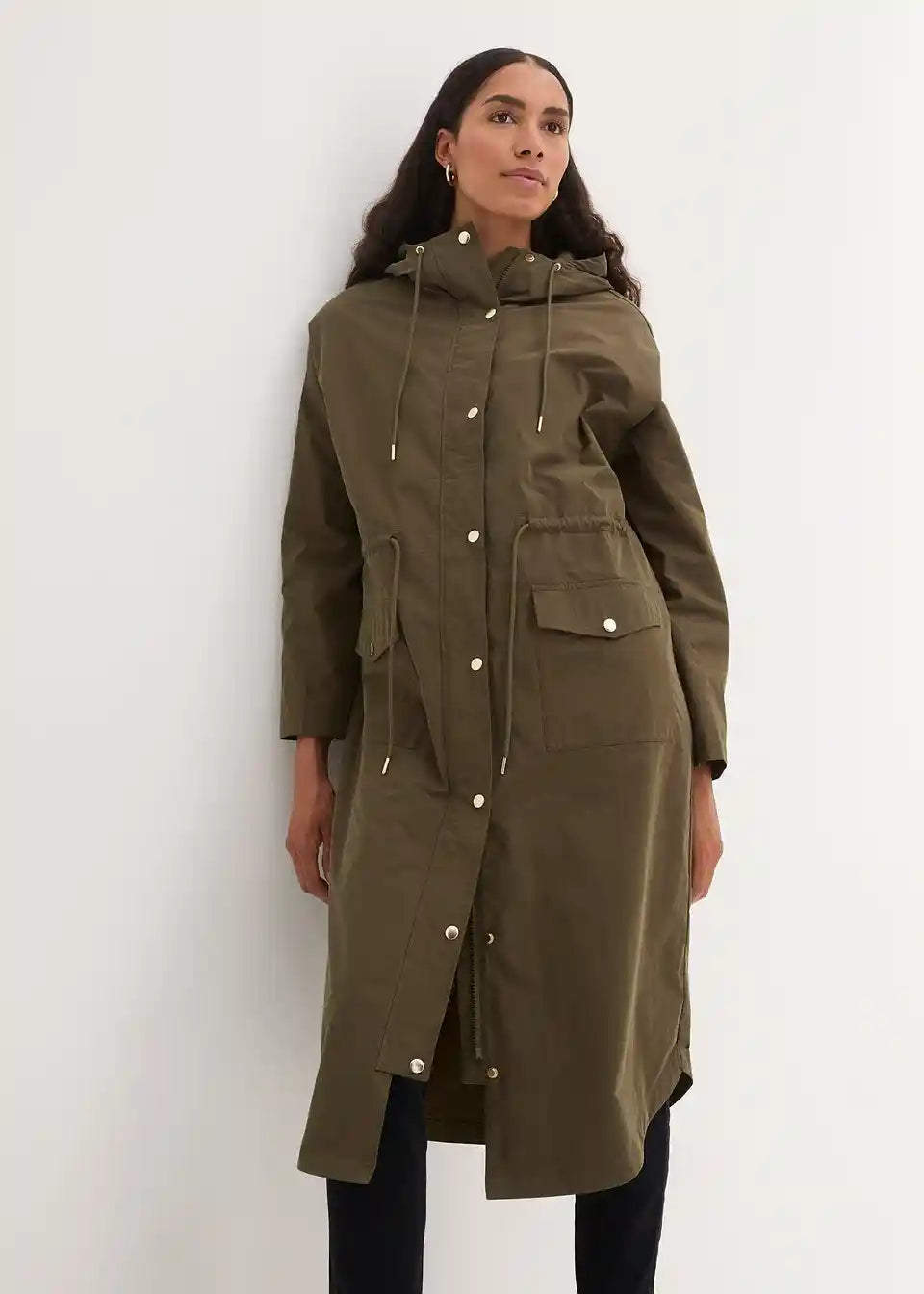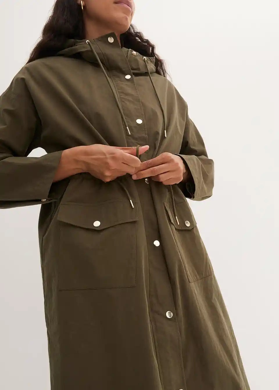 Prijelazni parka s regulacijom struka očarava bokove zahvaljujući trench izgledu