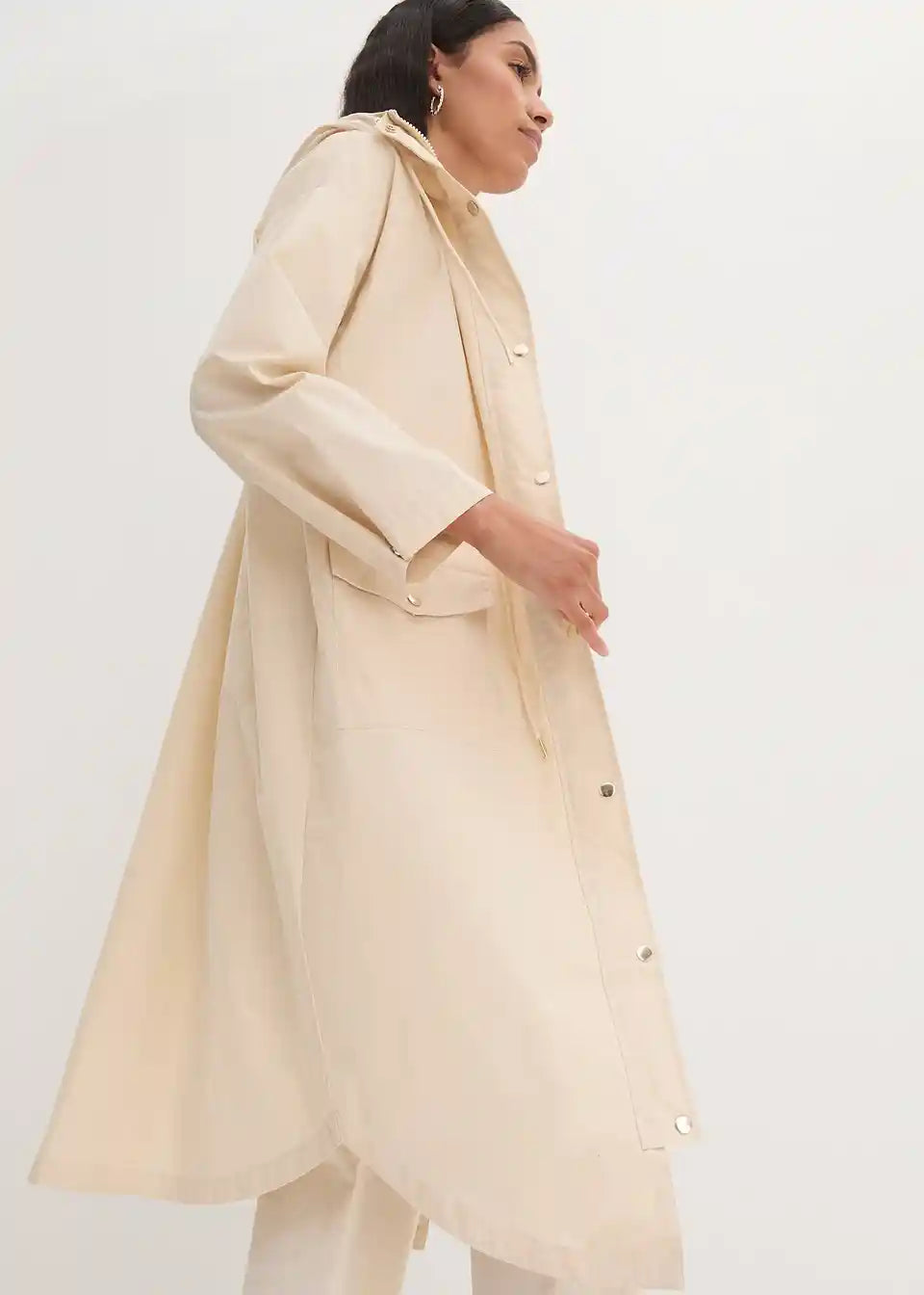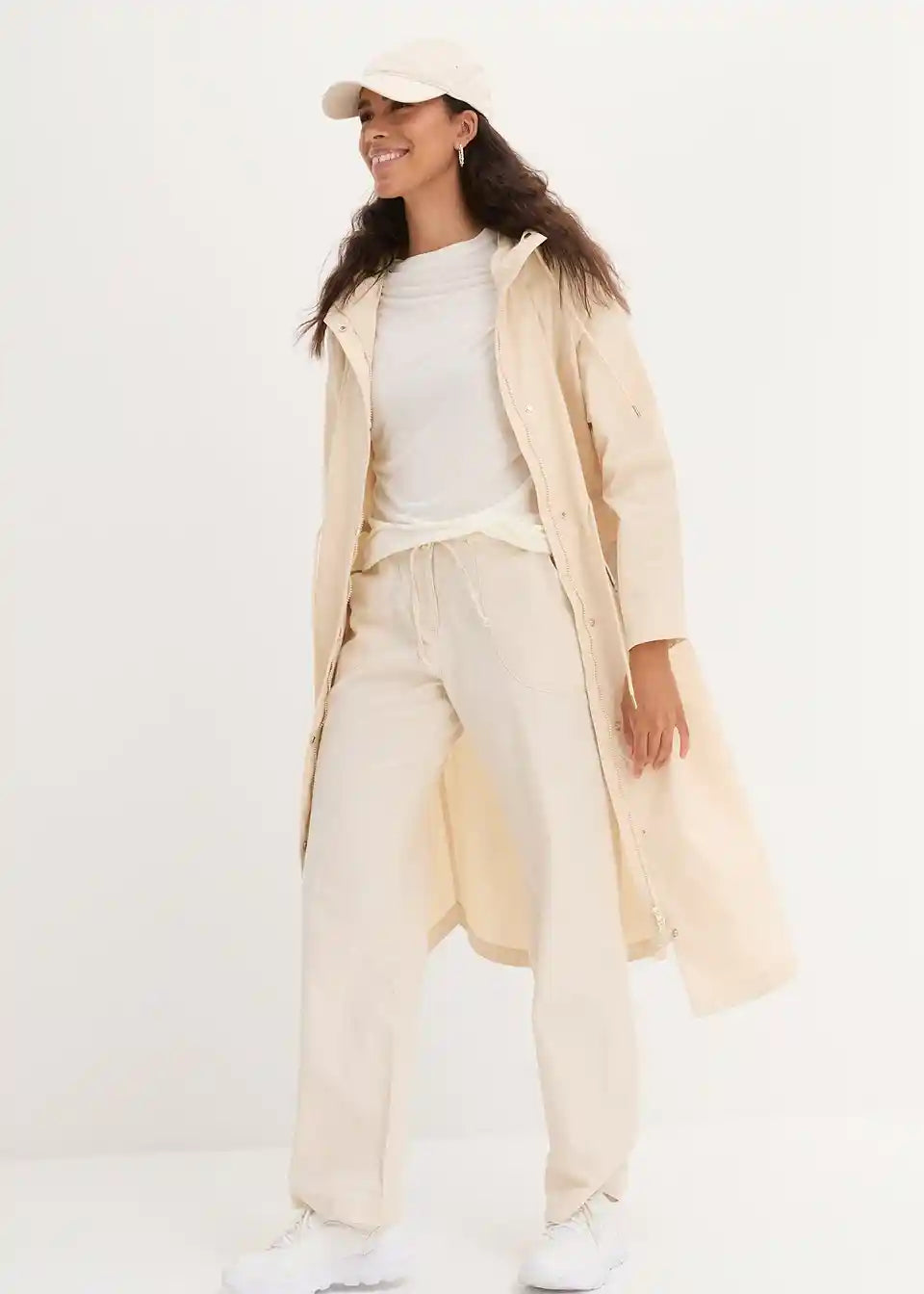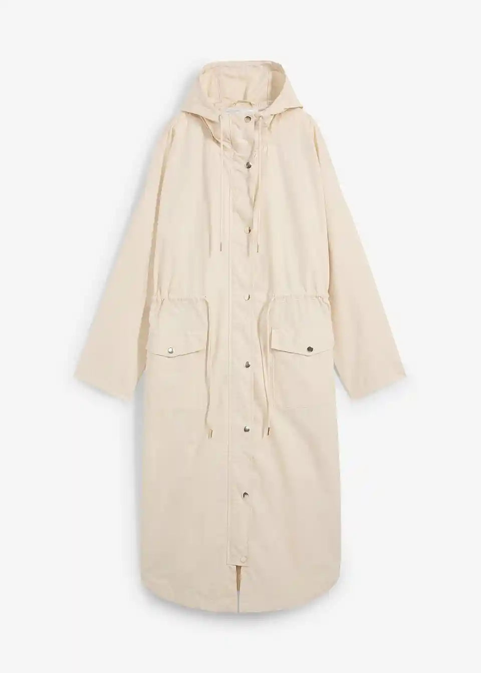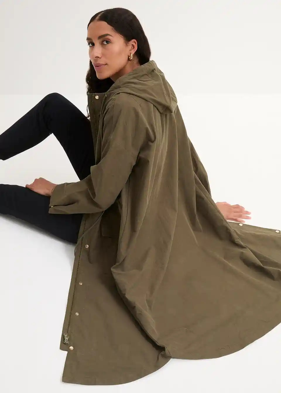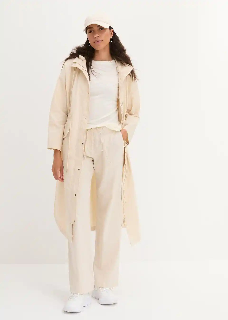 Prijelazni parka s regulacijom struka očarava bokove zahvaljujući trench izgledu