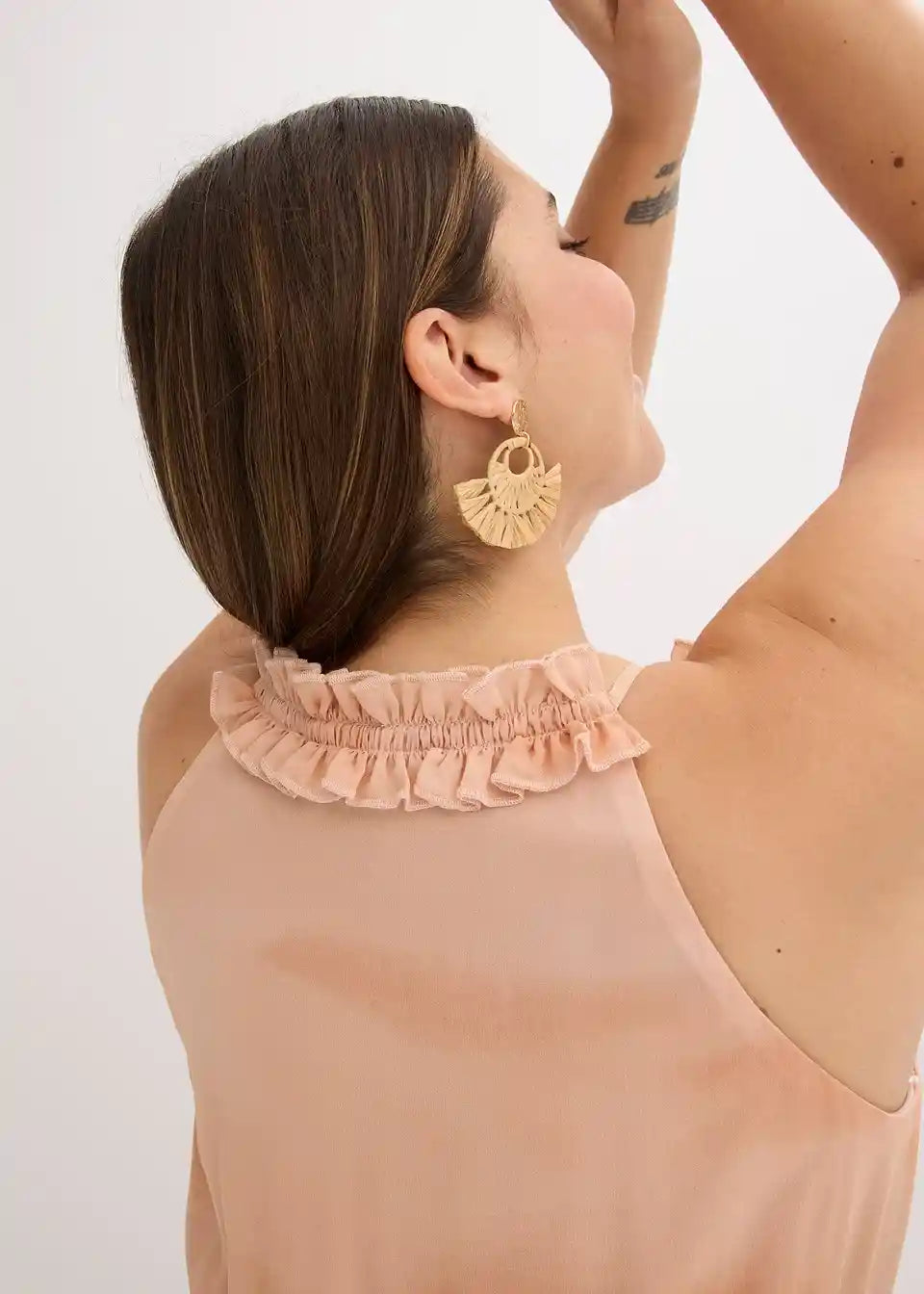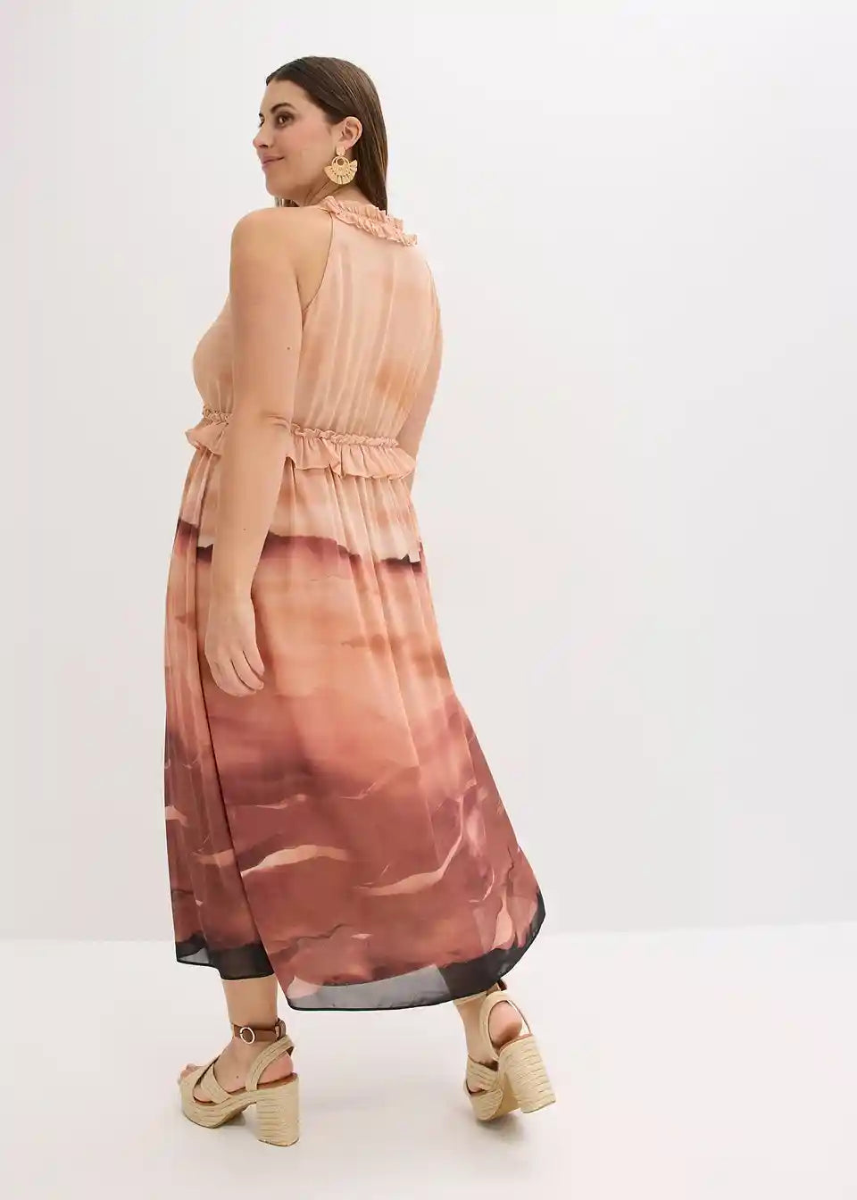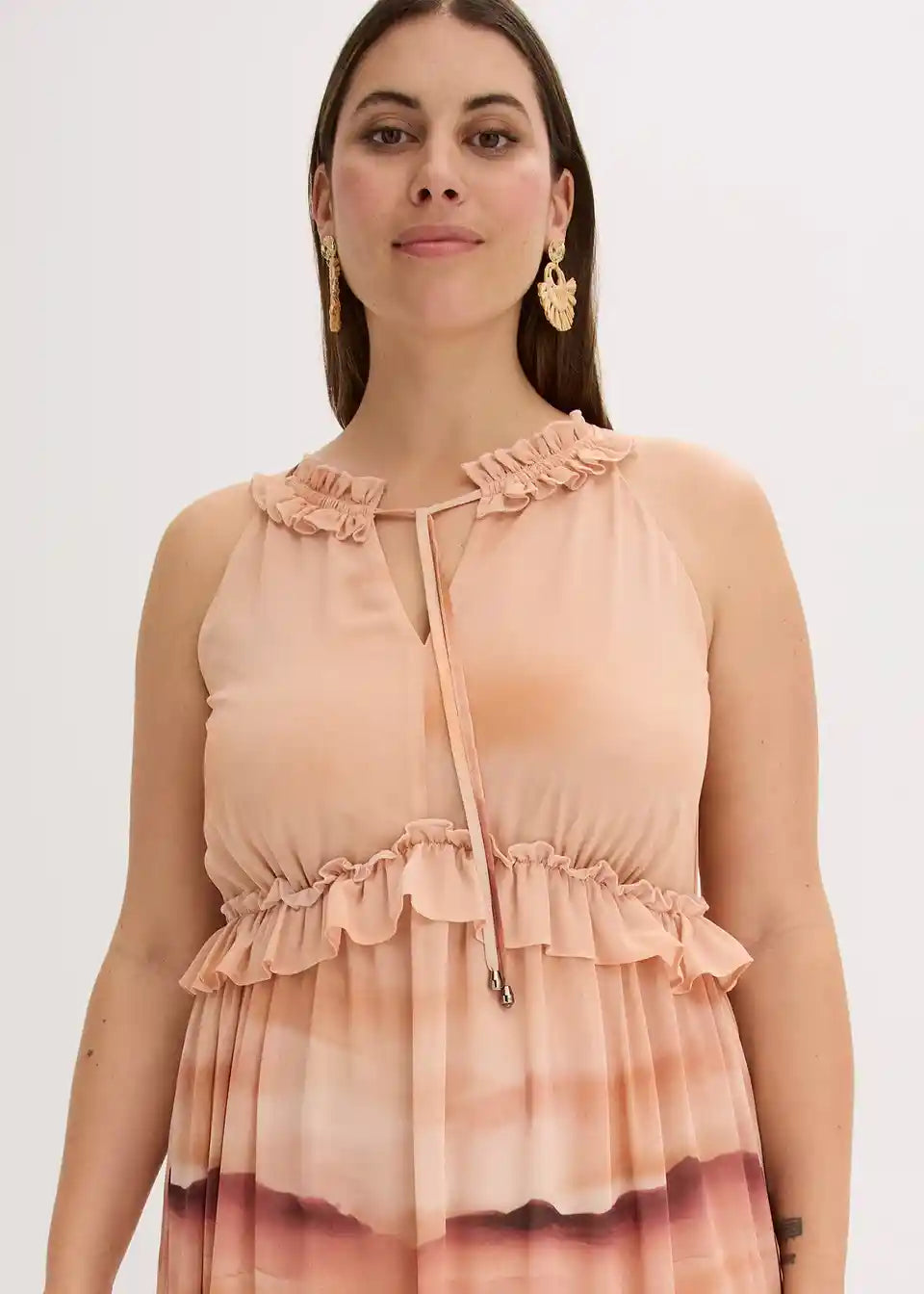 moderna printana Chiffon haljina midi dužine s detaljima volana na izrezu i u struku