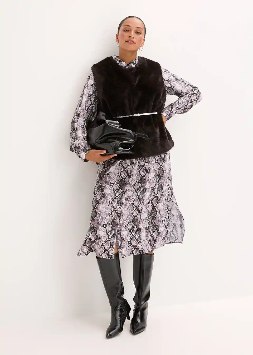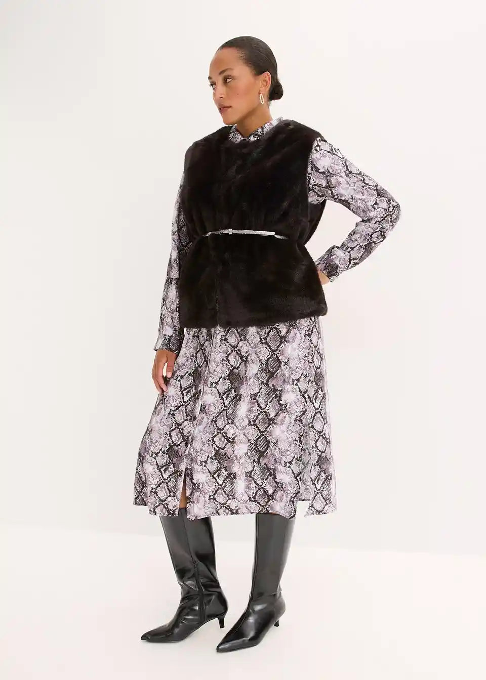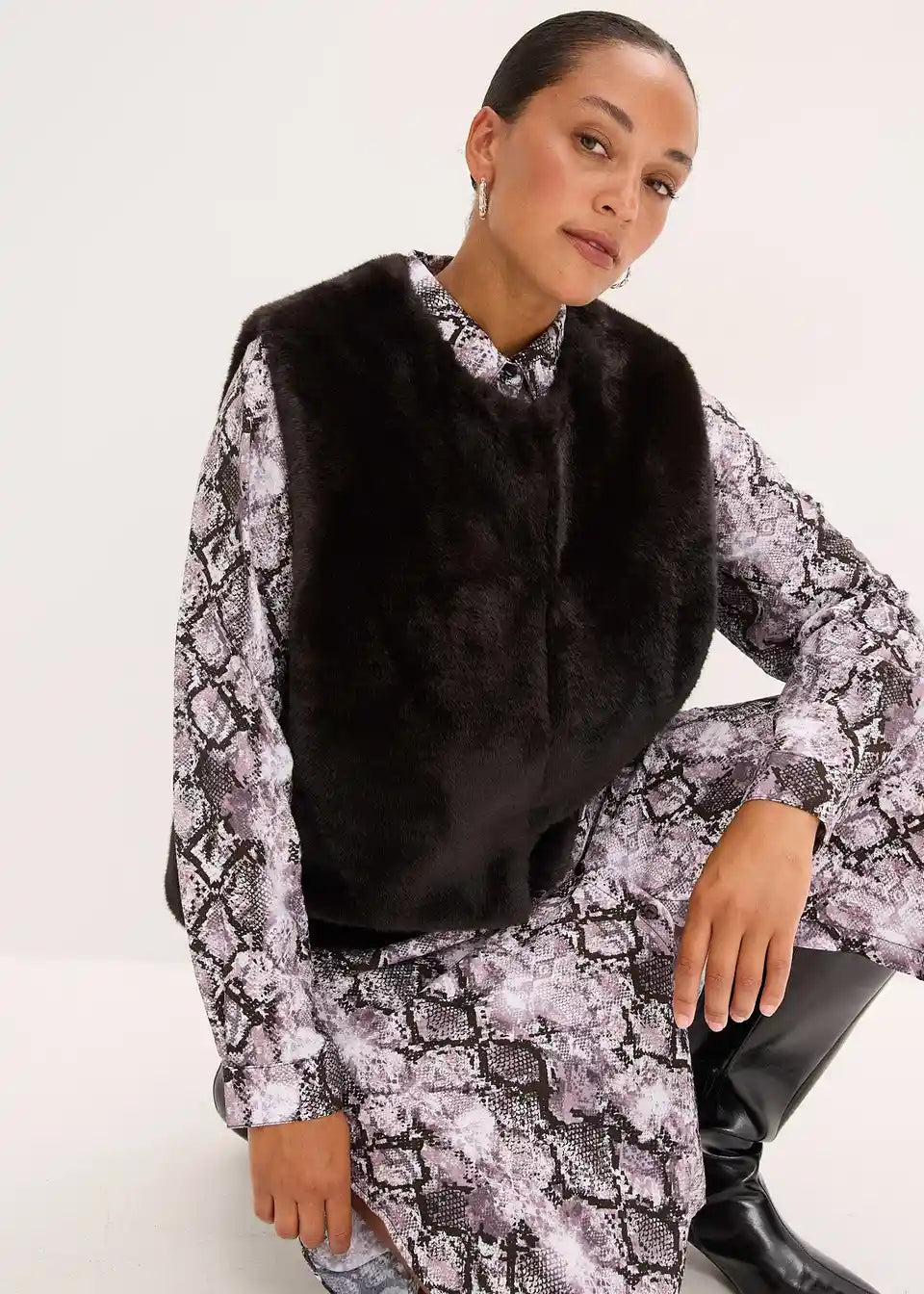 moderni prsluk od umjetnog krzna s kopčanjem sprijeda na kukice i omče
