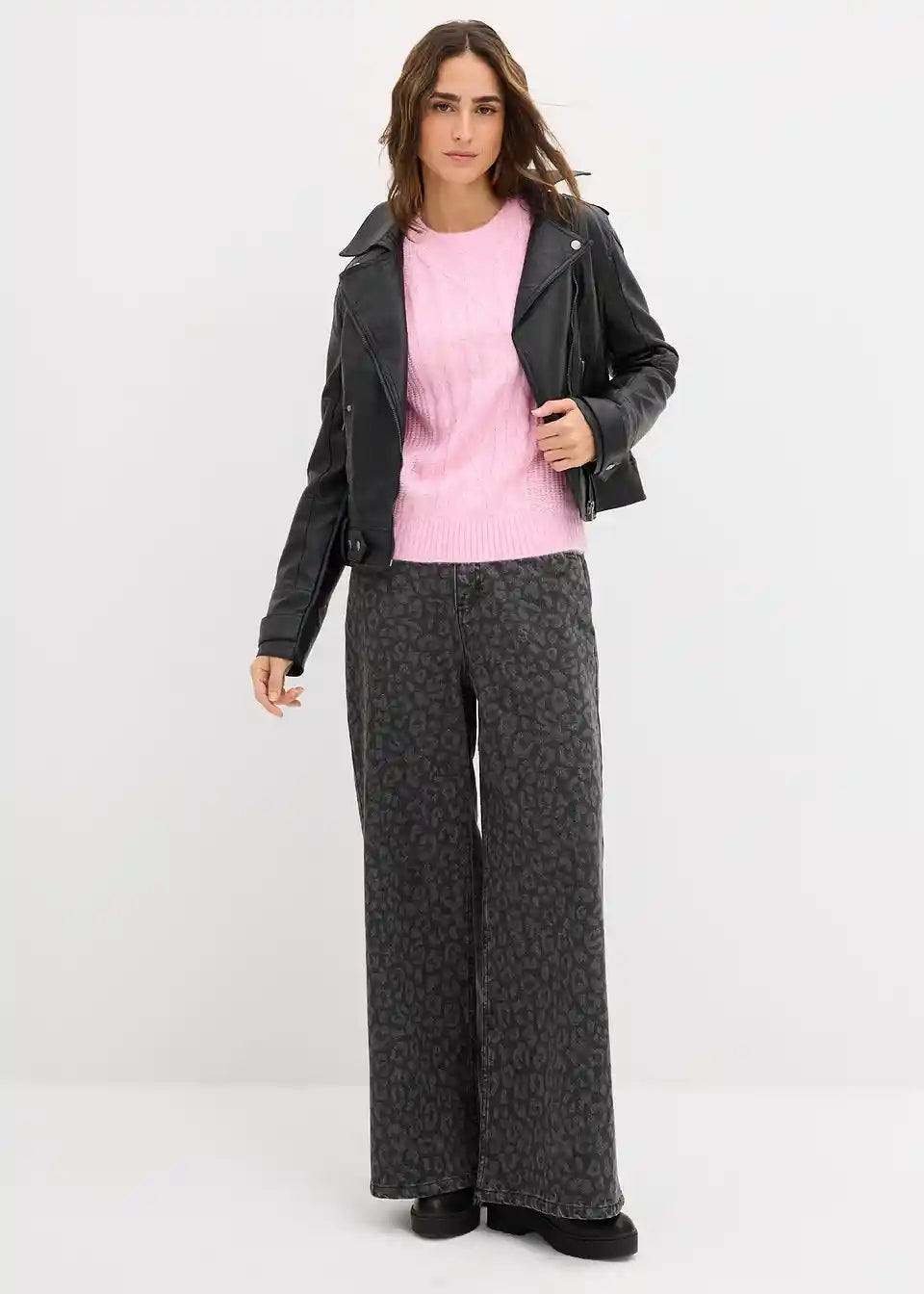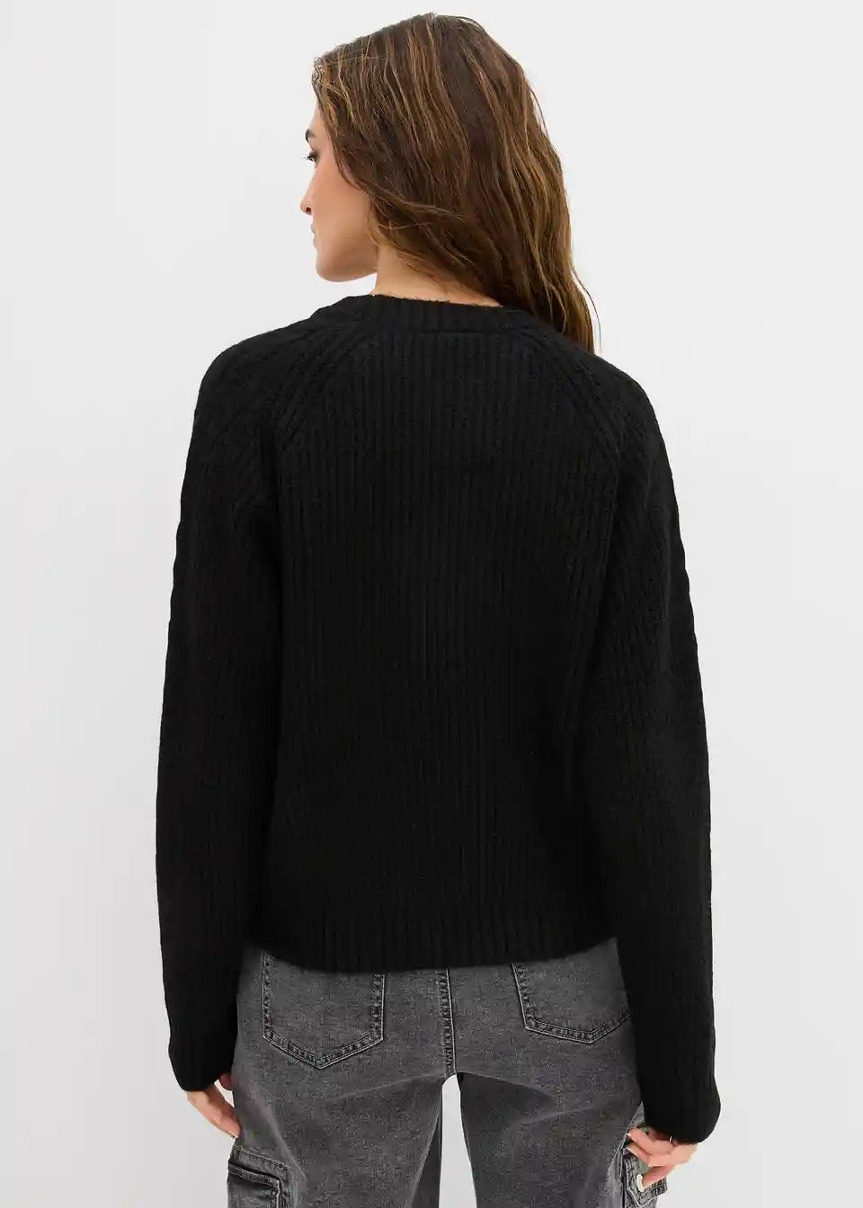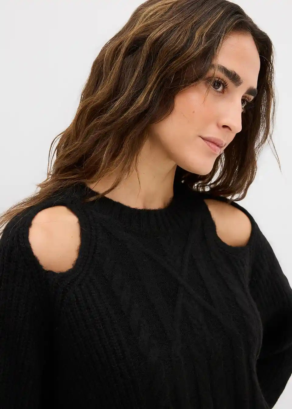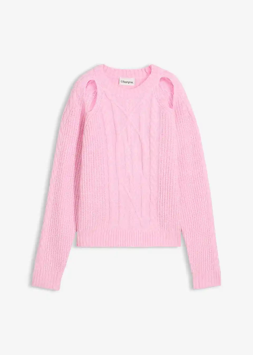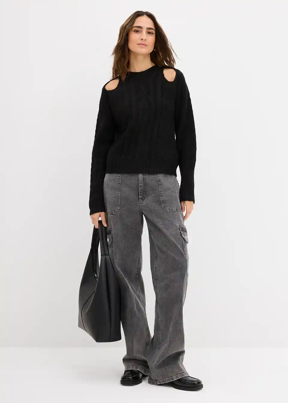 Ležeran pulover od groboga pletiva s pletenicama i izrezima (Cut-Outs)