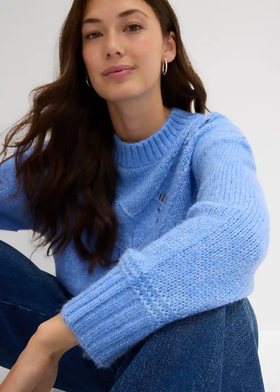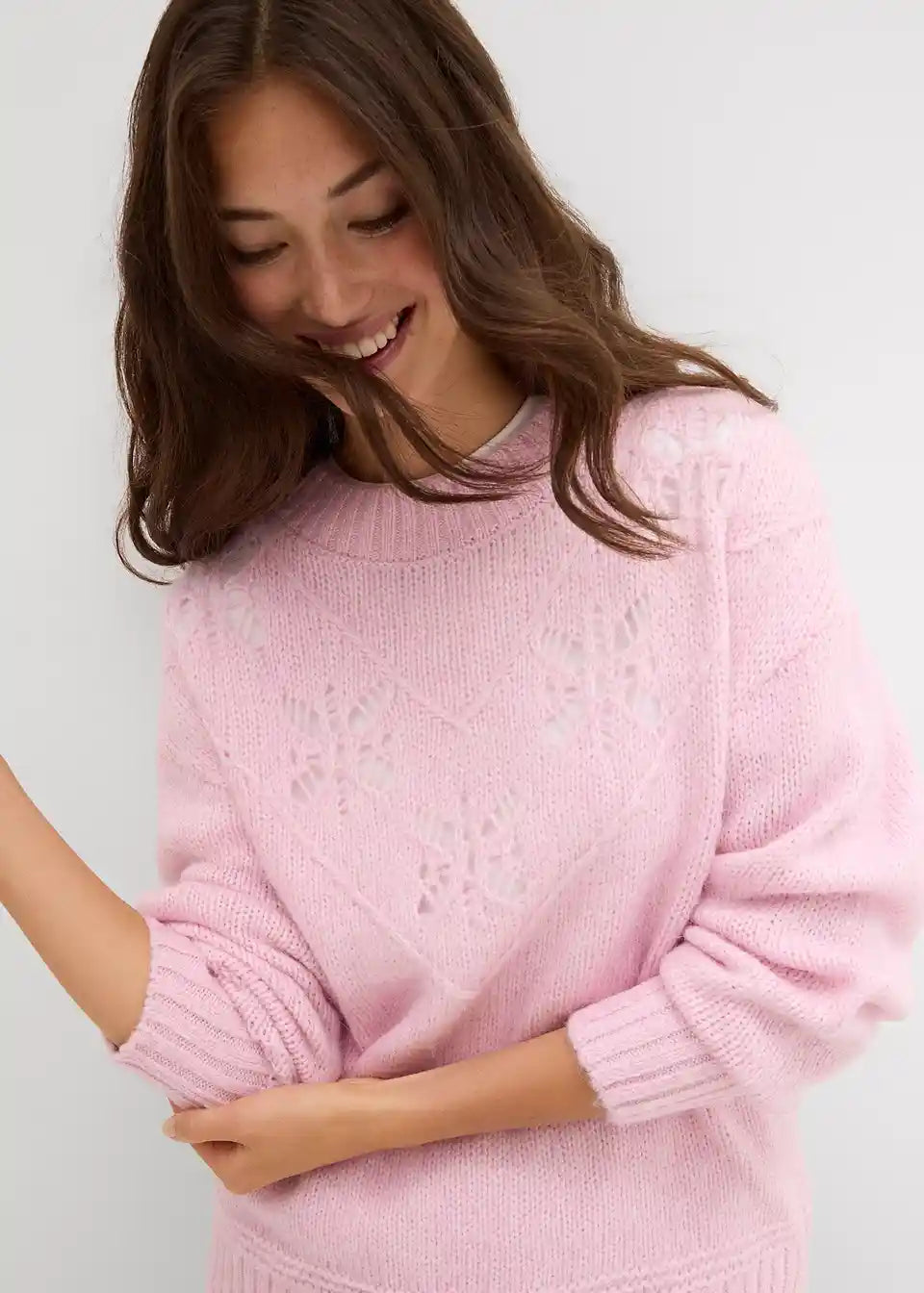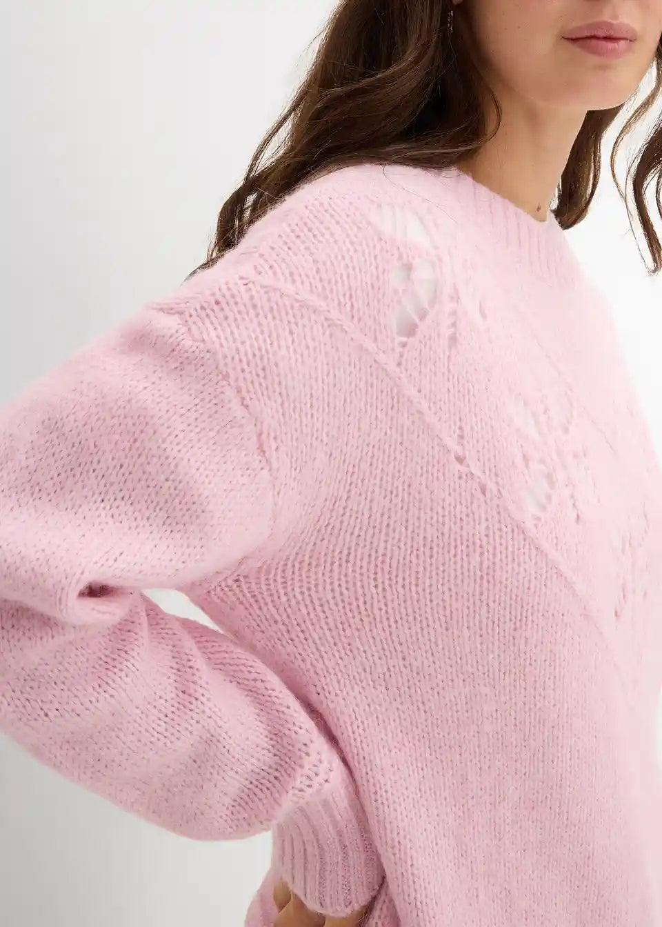 Pulover od grubo pletenog materijala od mekane mješavine vune s razigranim detaljima