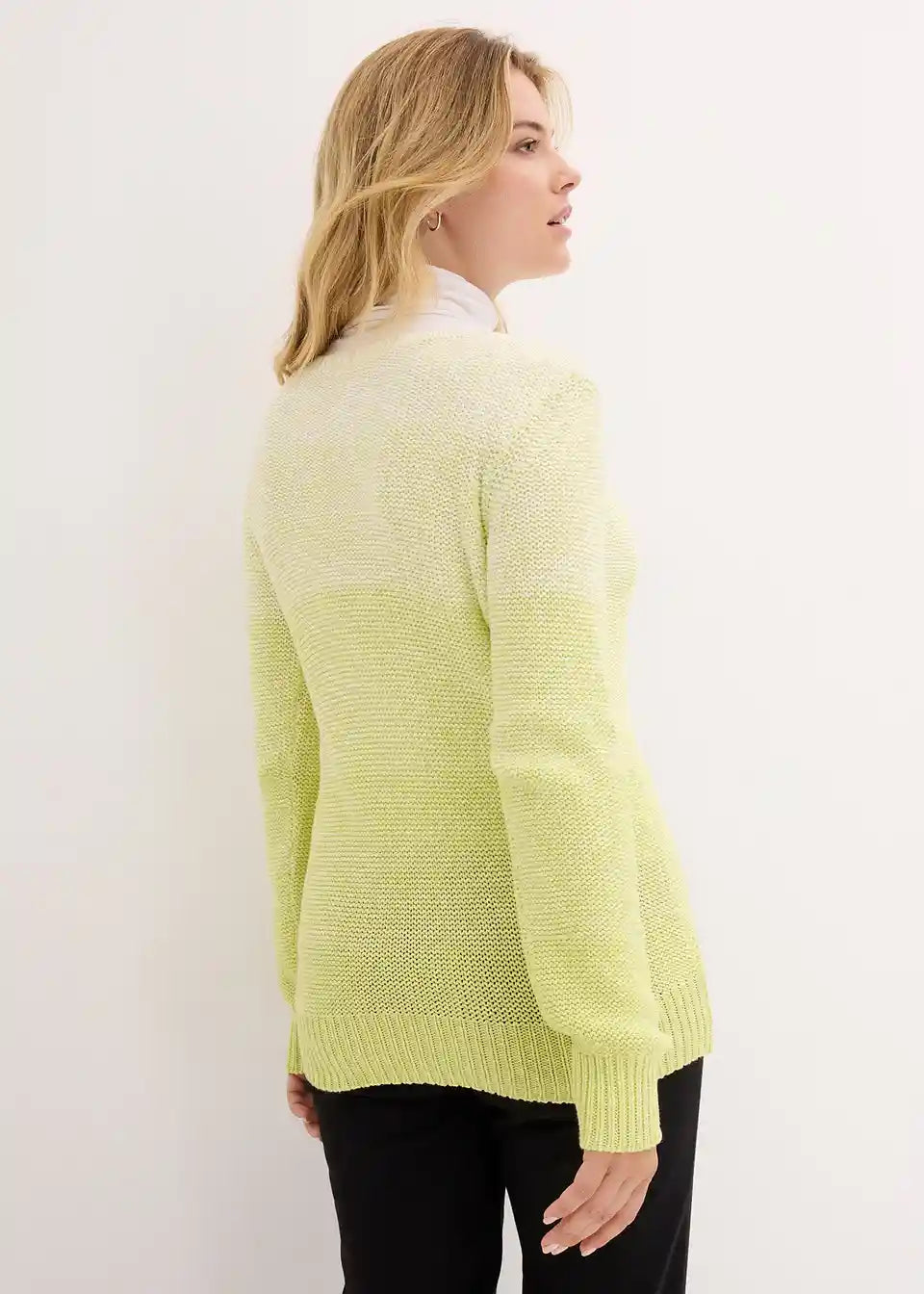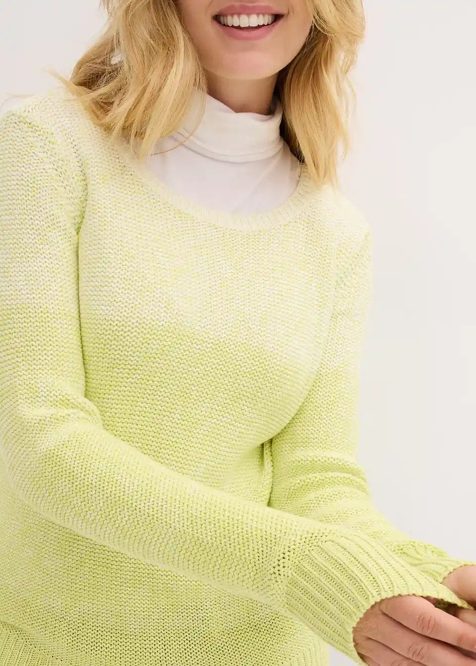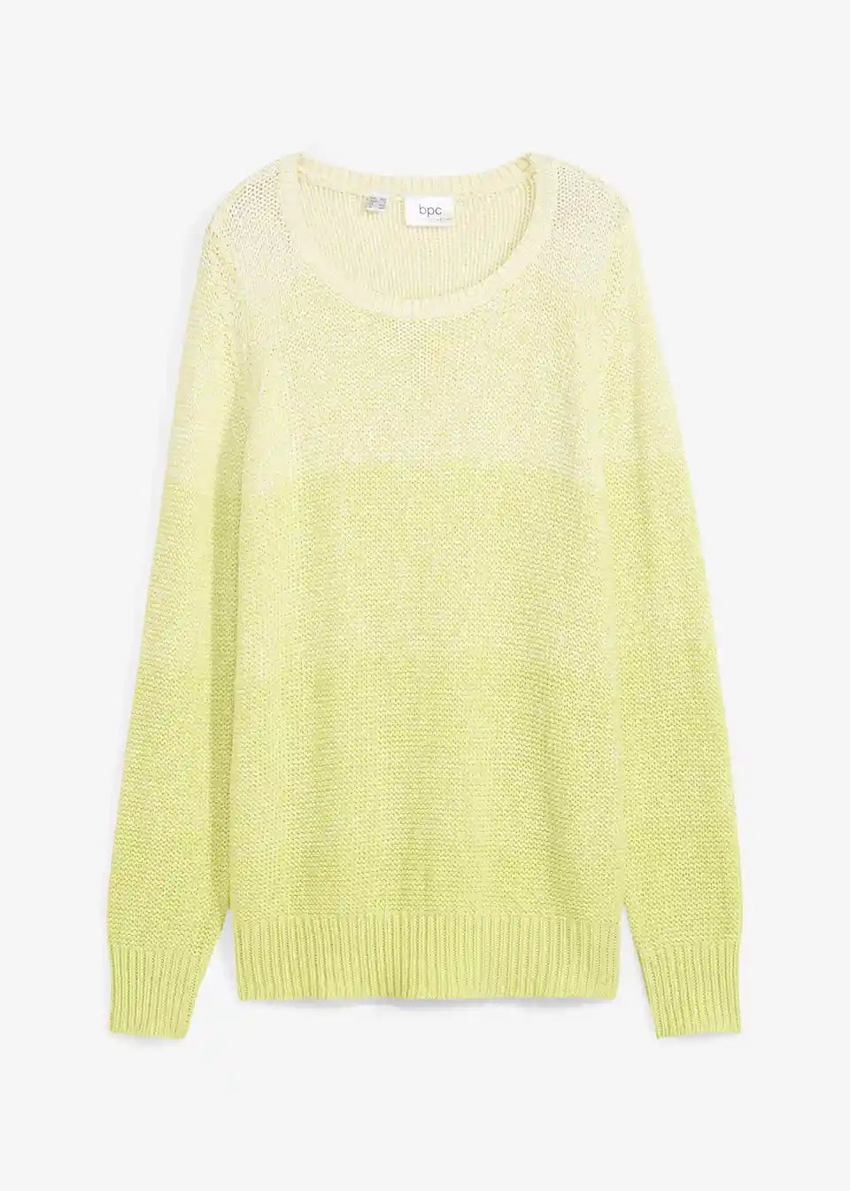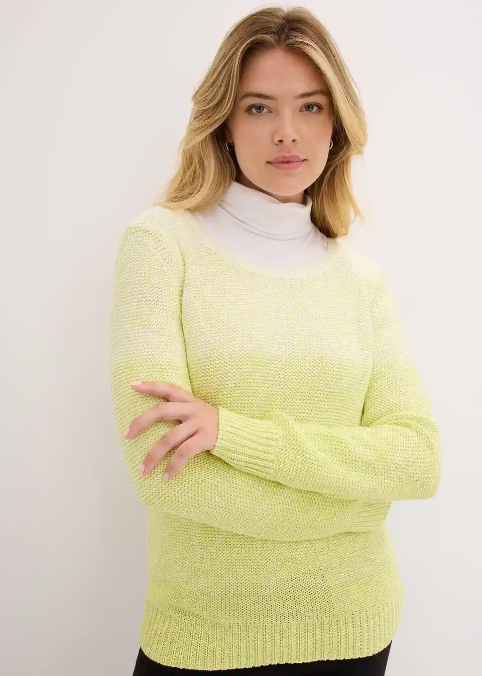 Ovako izgleda moderna odjeća za svaki dan. Zahvaljujući svom prekrasnom gradijentu boja, ovaj uži krojeni pulover marke bpc pravi je privlačitelj pogleda. Pulover je izrađen u atraktivnom lijevom pletivu, koje završava rebrastim rubovima na širokom okruglom izrezu, rukavima i rubu. Savršen kroj i ugodan materijal obećavaju visoku udobnost nošenja.