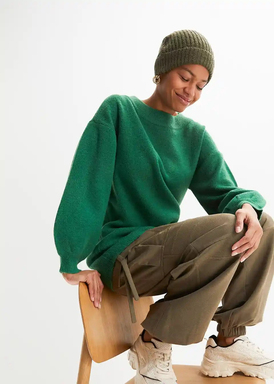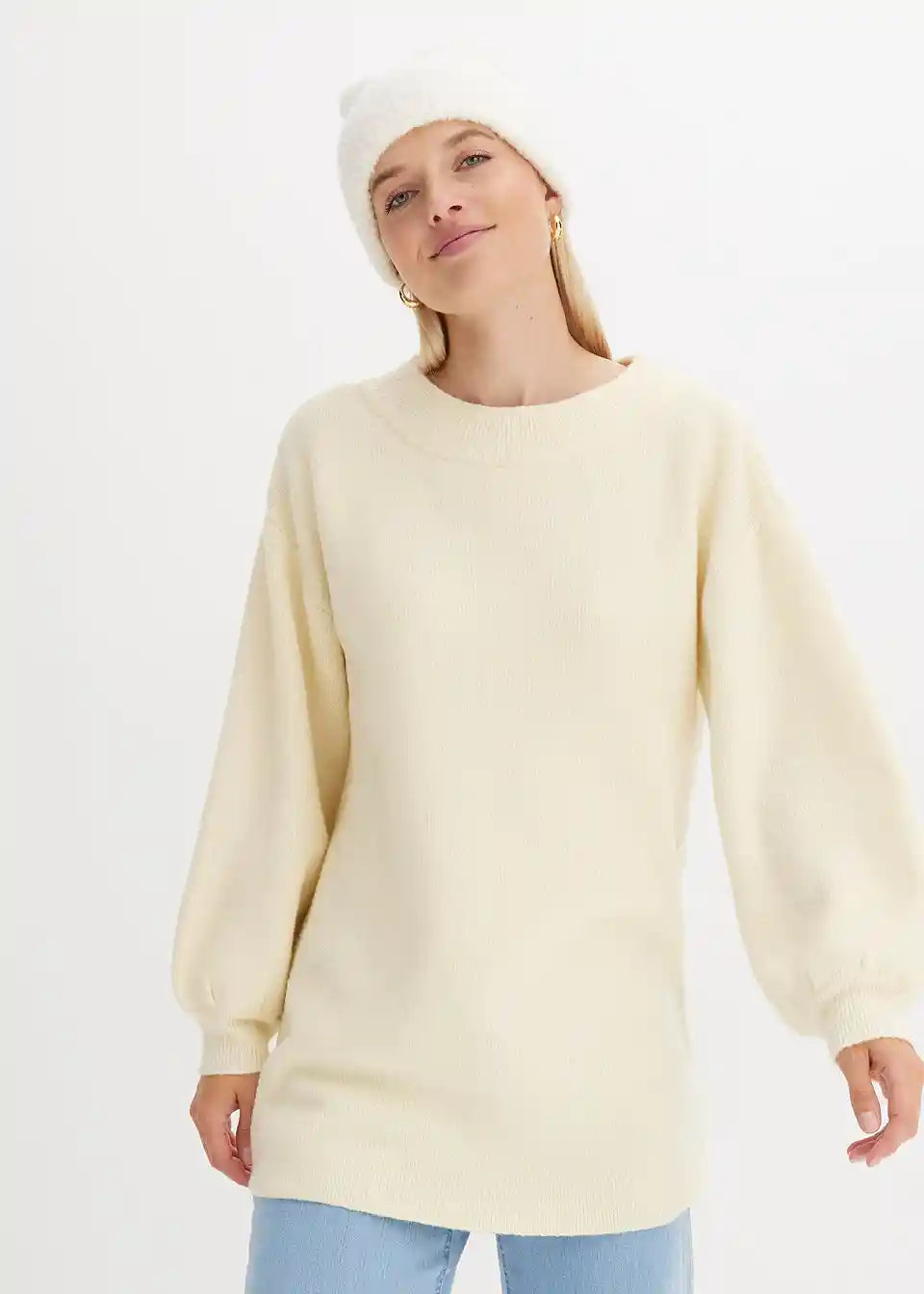 Pletena majica koja prekriva bokove s trendi balon rukavima