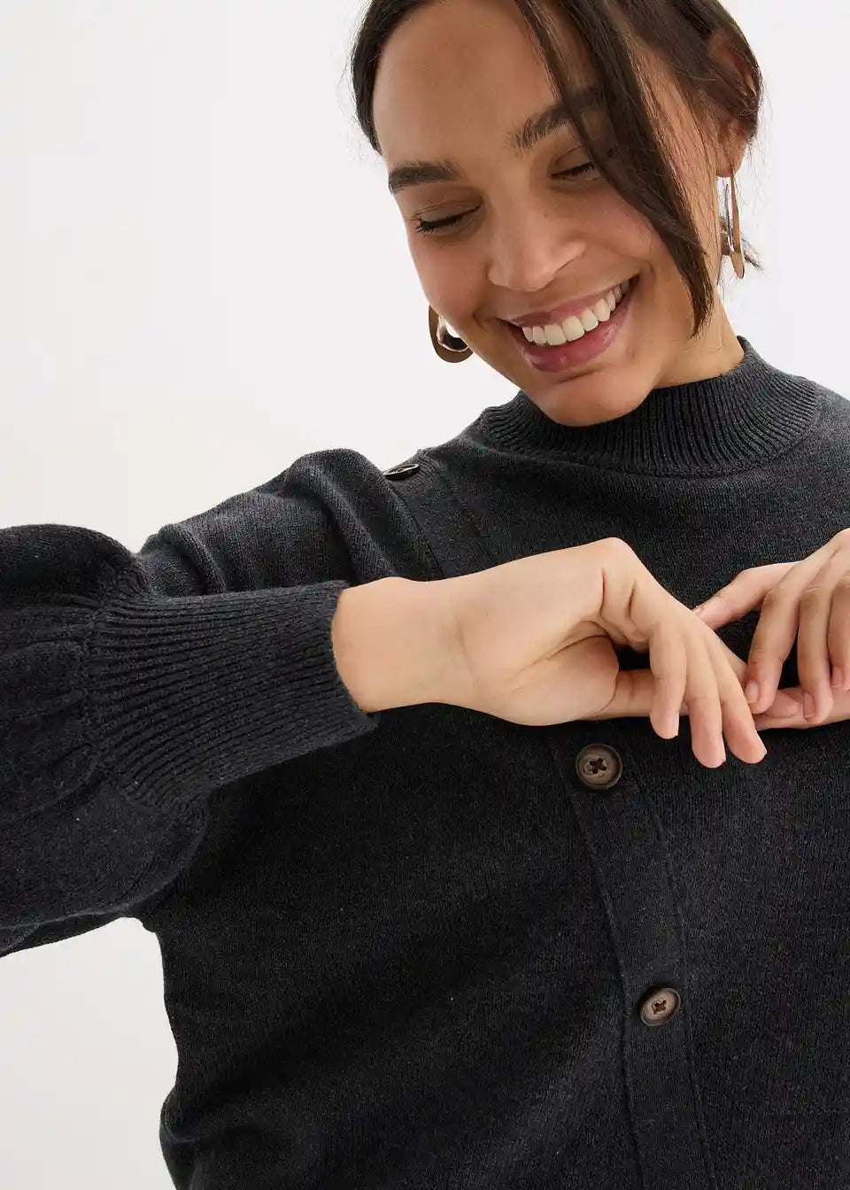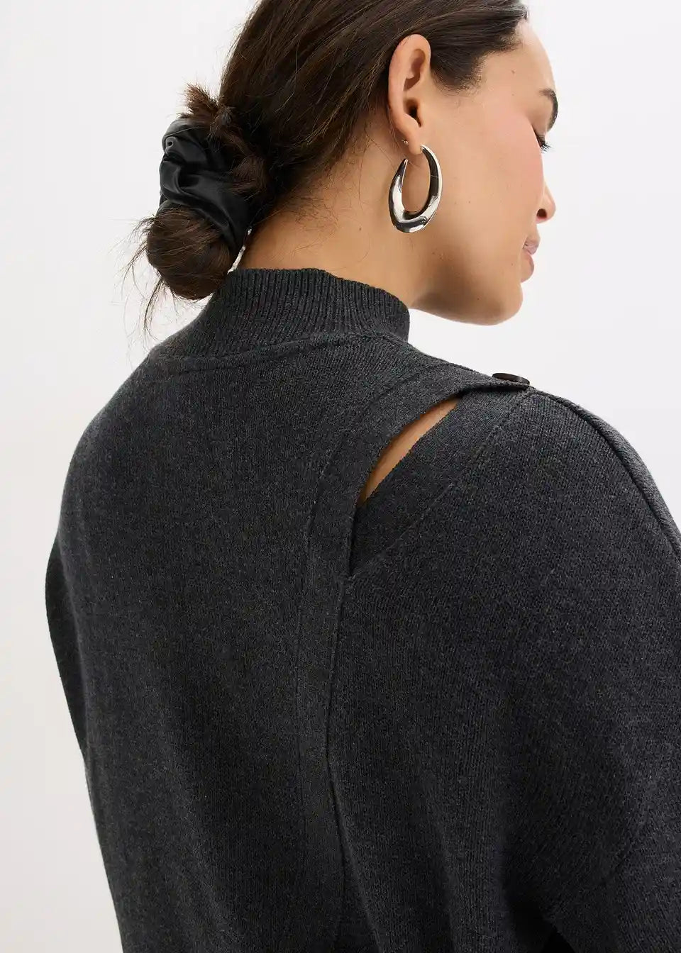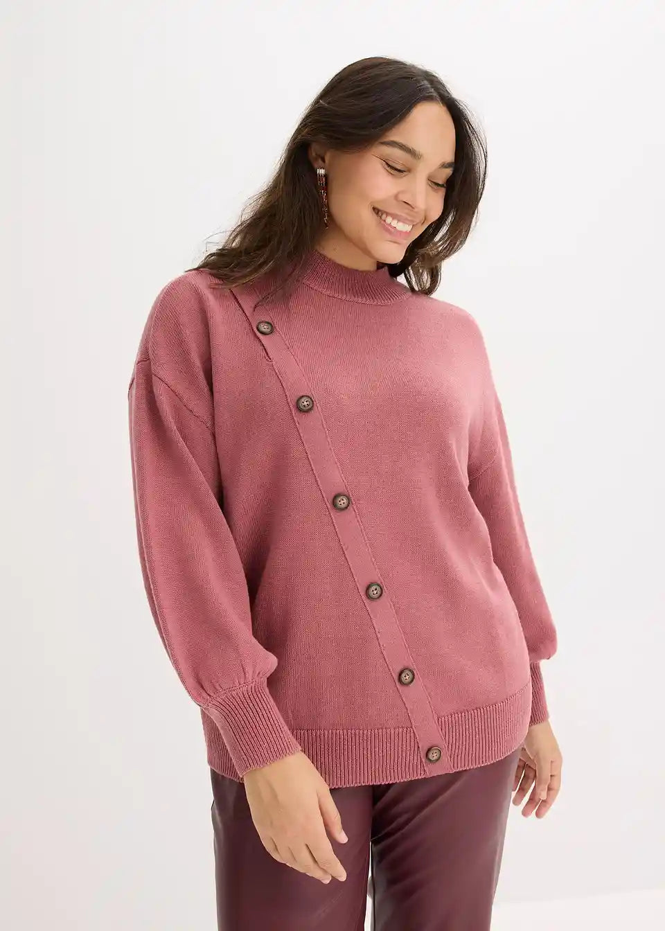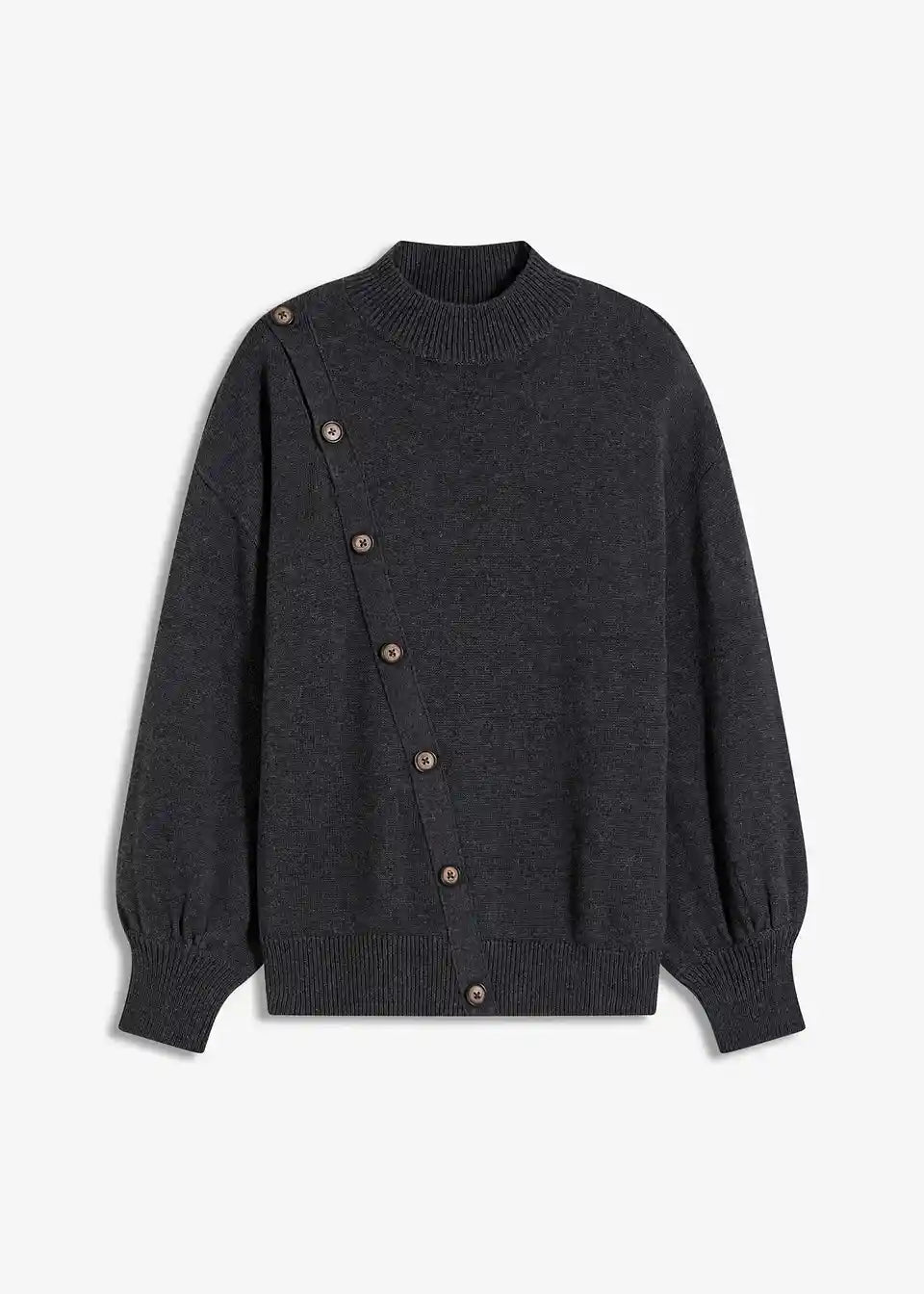 Pulover u laganom oversize kroju s dijagonalnim redom gumba koji se otvara na ramenu