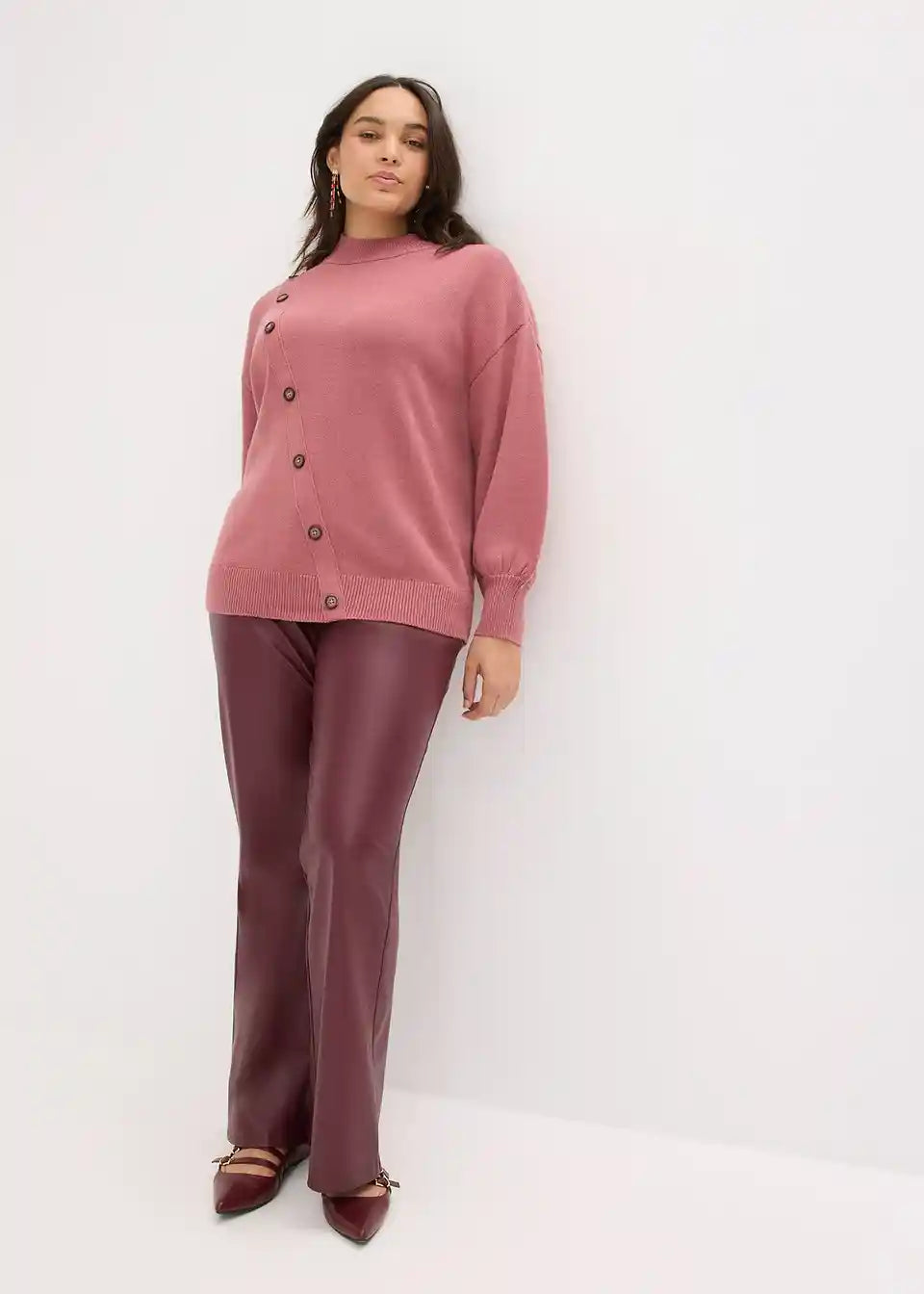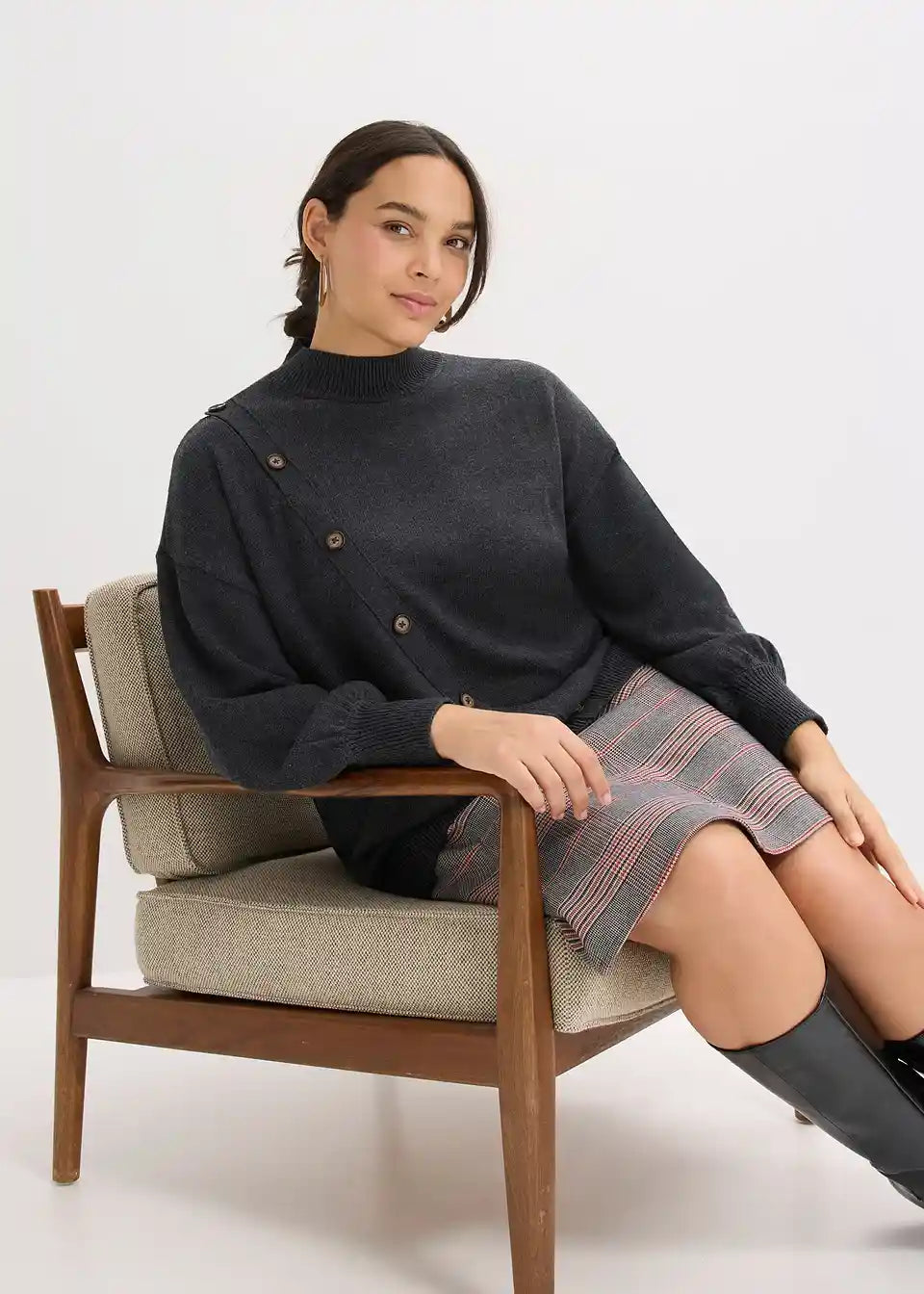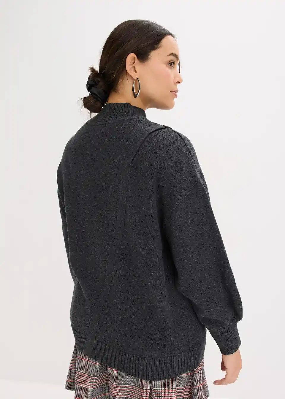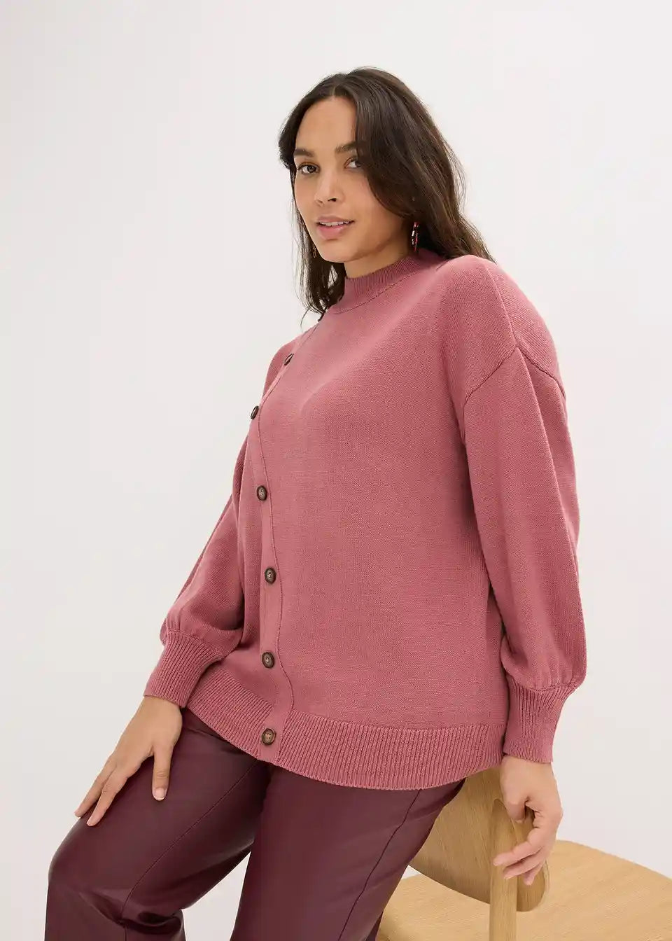 Pulover u laganom oversize kroju s dijagonalnim redom gumba koji se otvara na ramenu