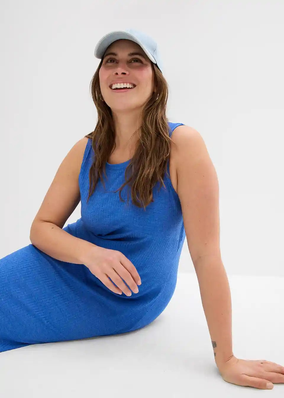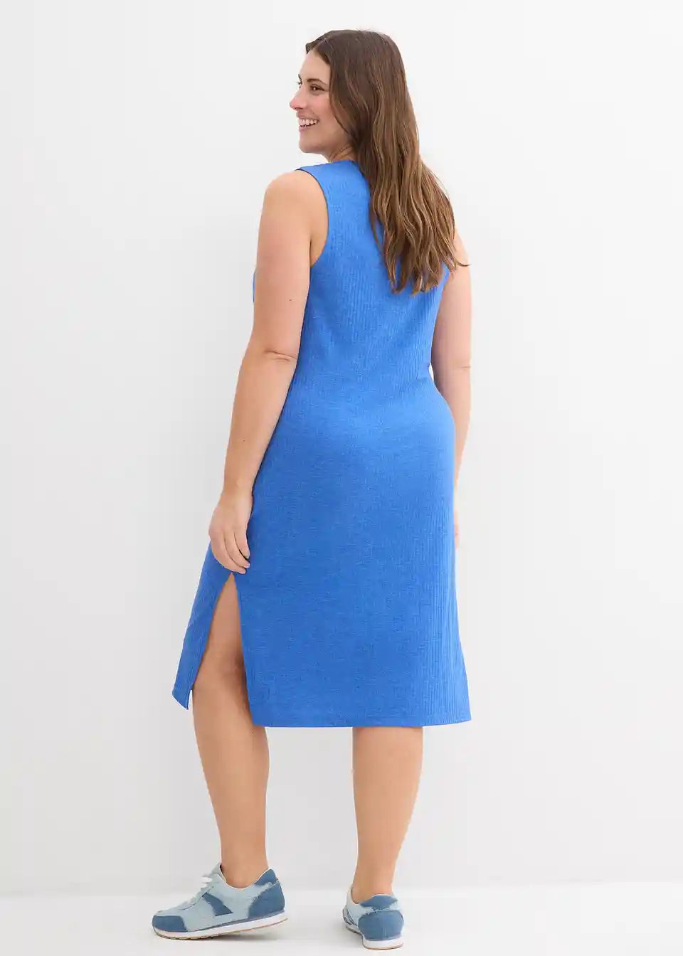 Rebrasta haljina s prorezima sa strane od padajućeg materijala s udjelom viskoze