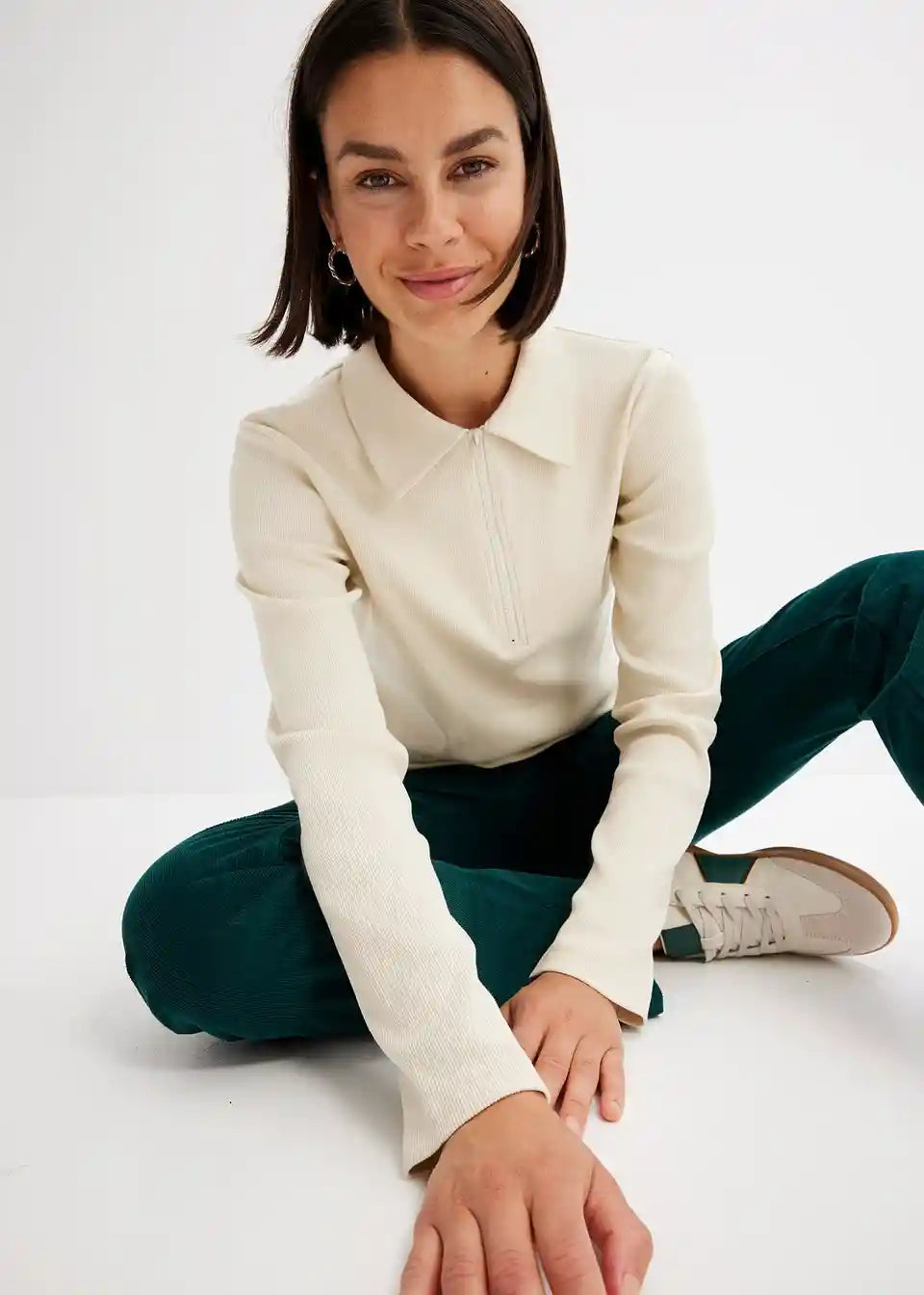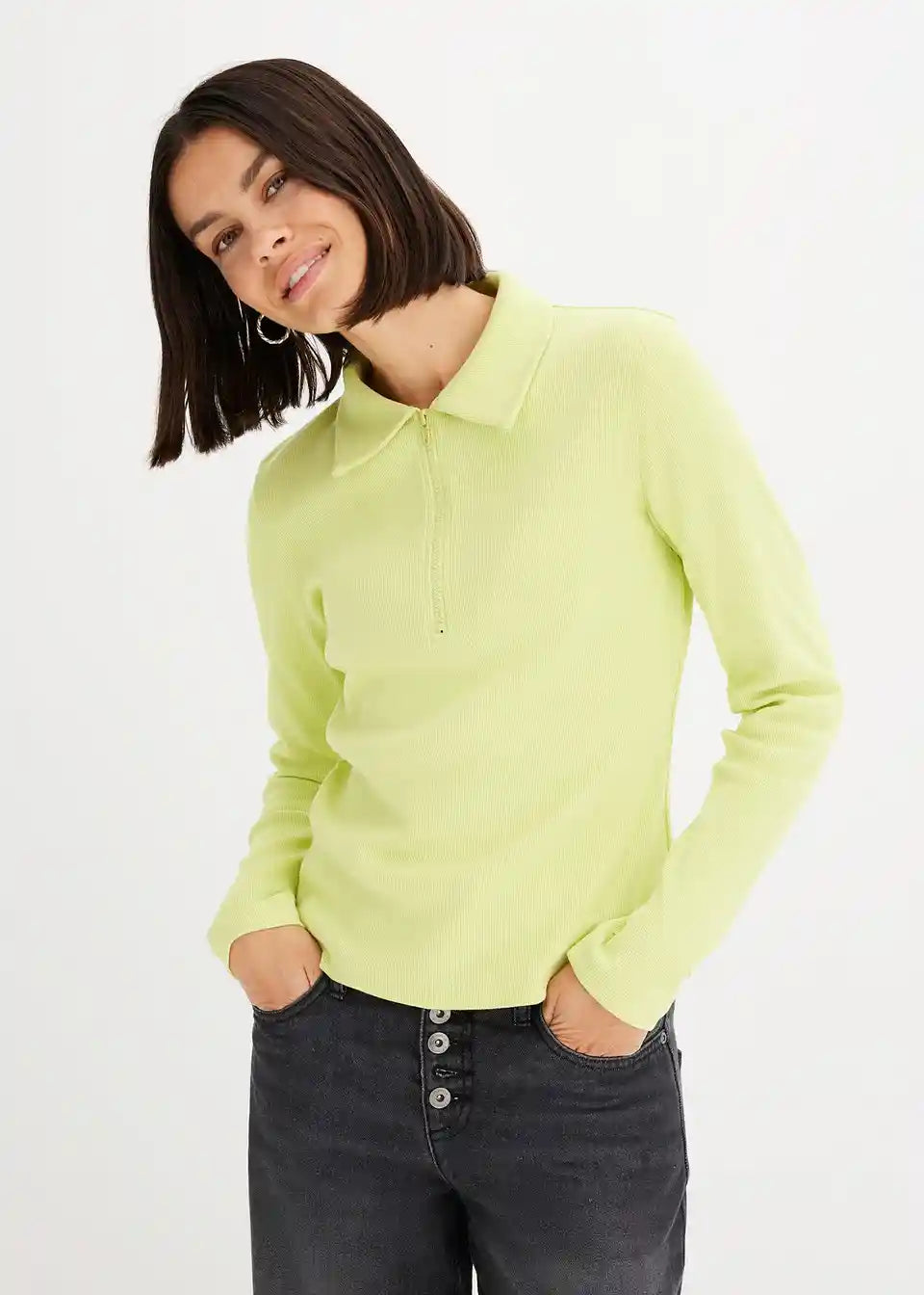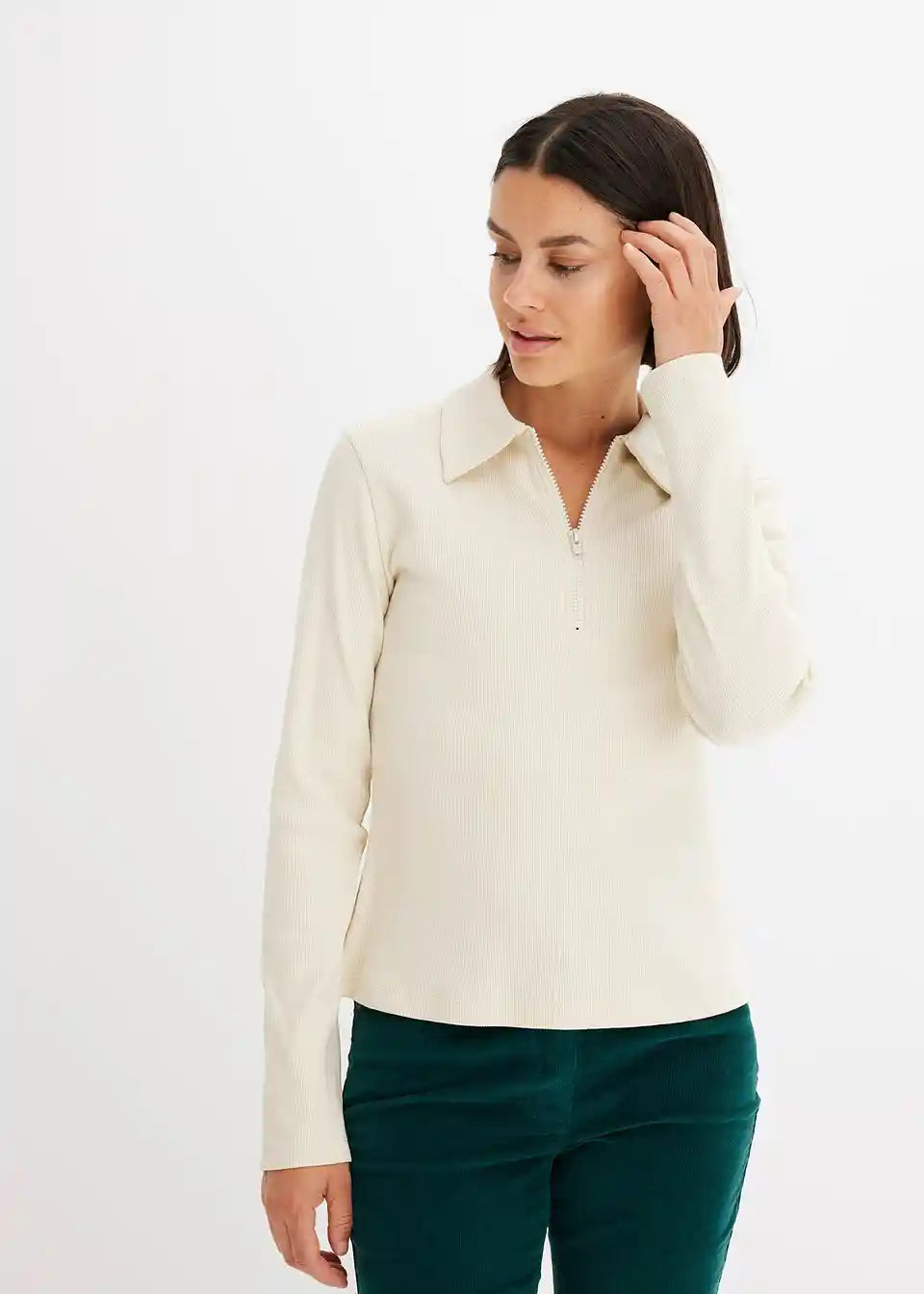 Rebrasta majica od organskog pamuka s patentnim zatvaračem