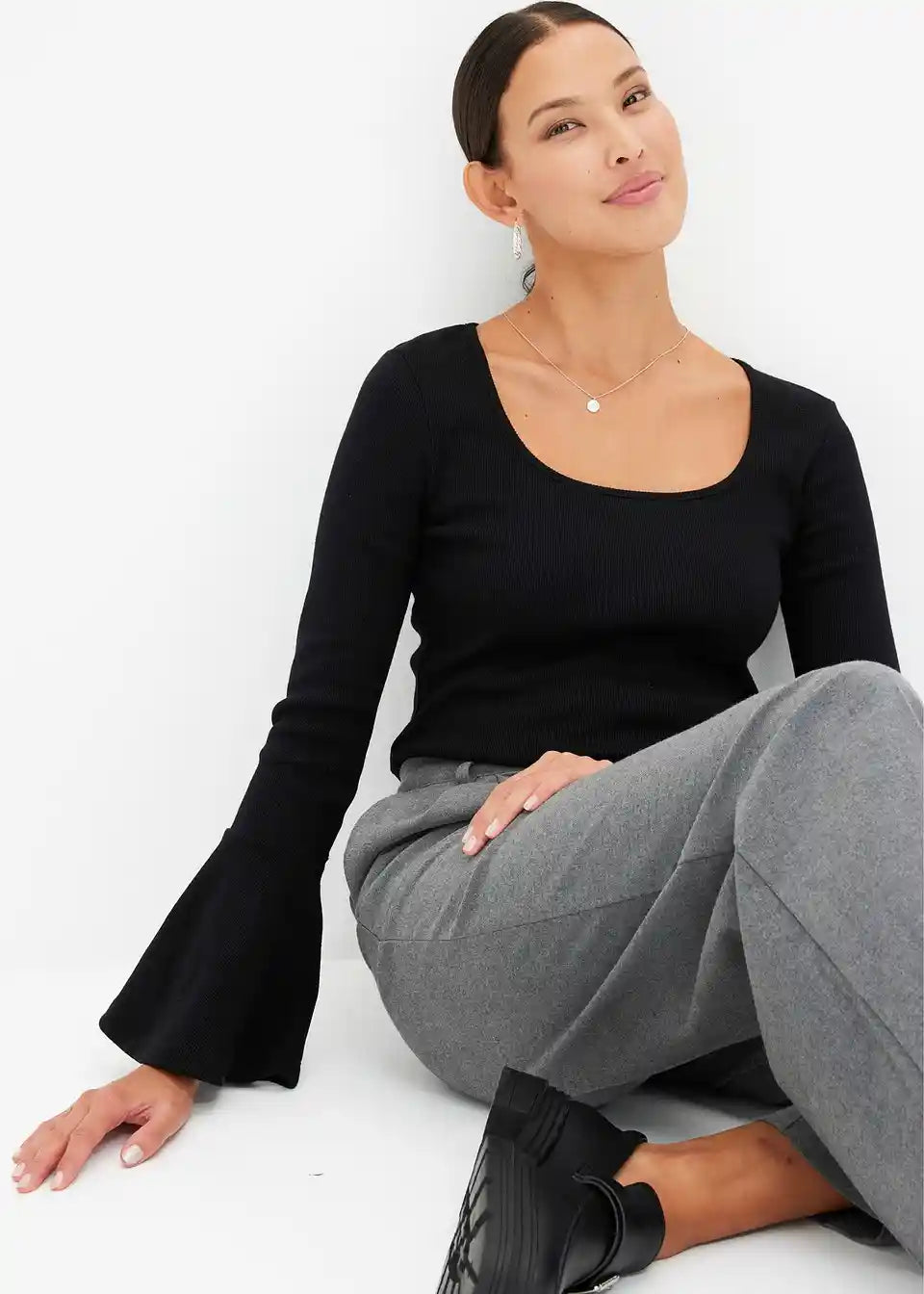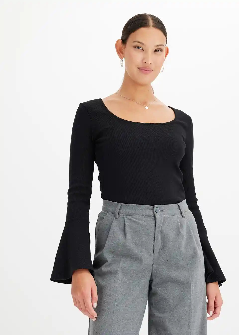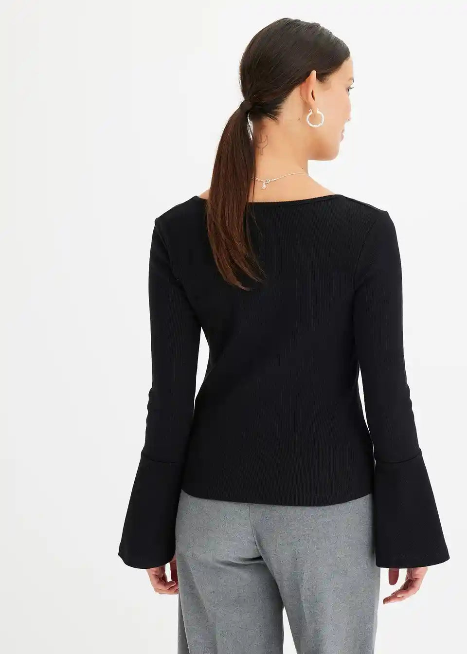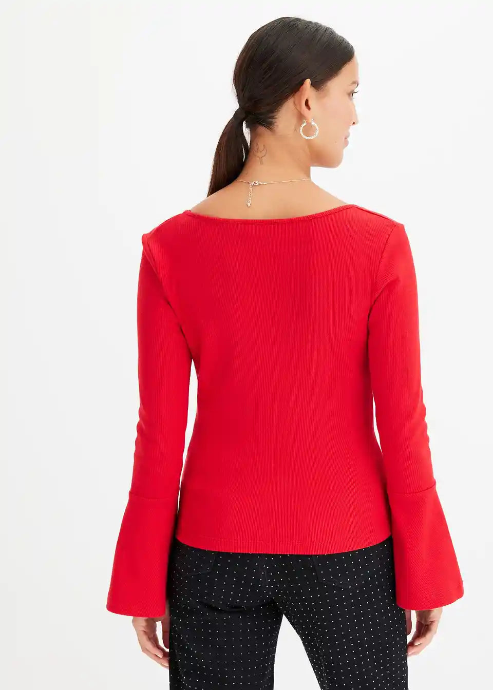 Rebrasta majica s Caree izrezom i trumpet rukavima