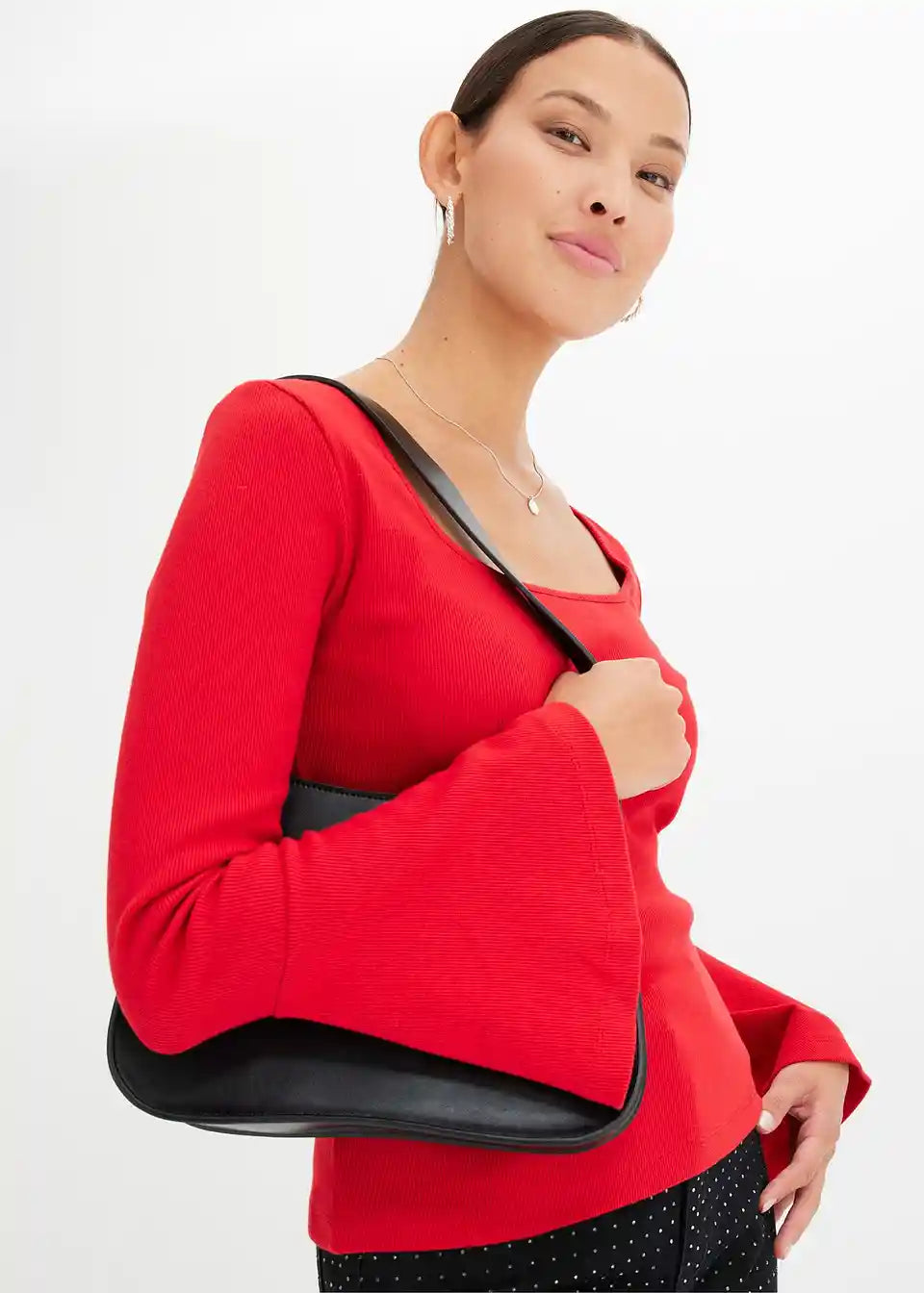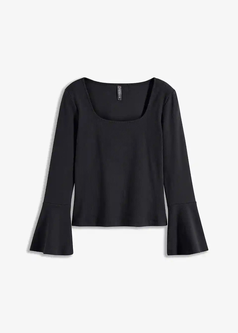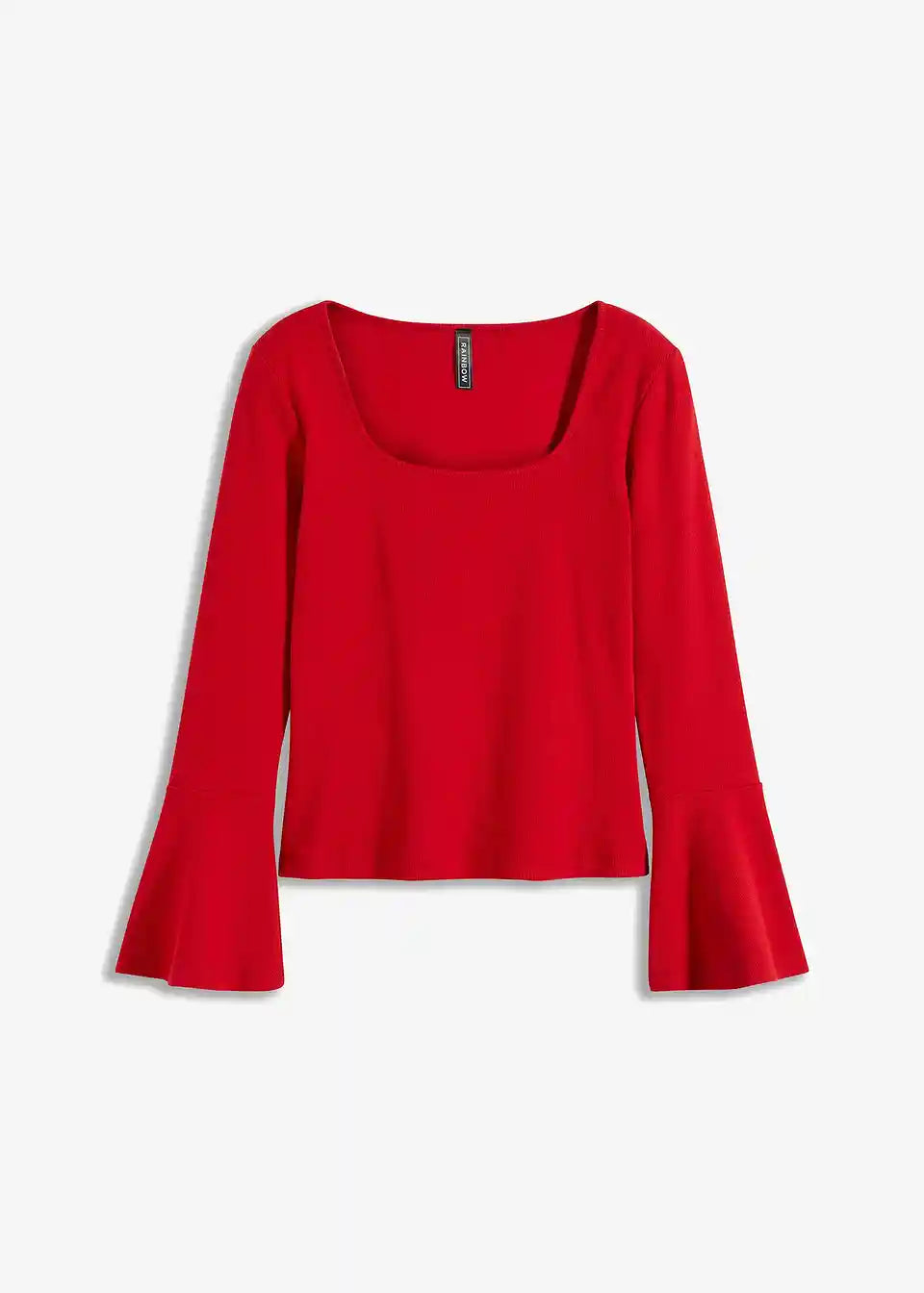 Rebrasta majica s Caree izrezom i trumpet rukavima