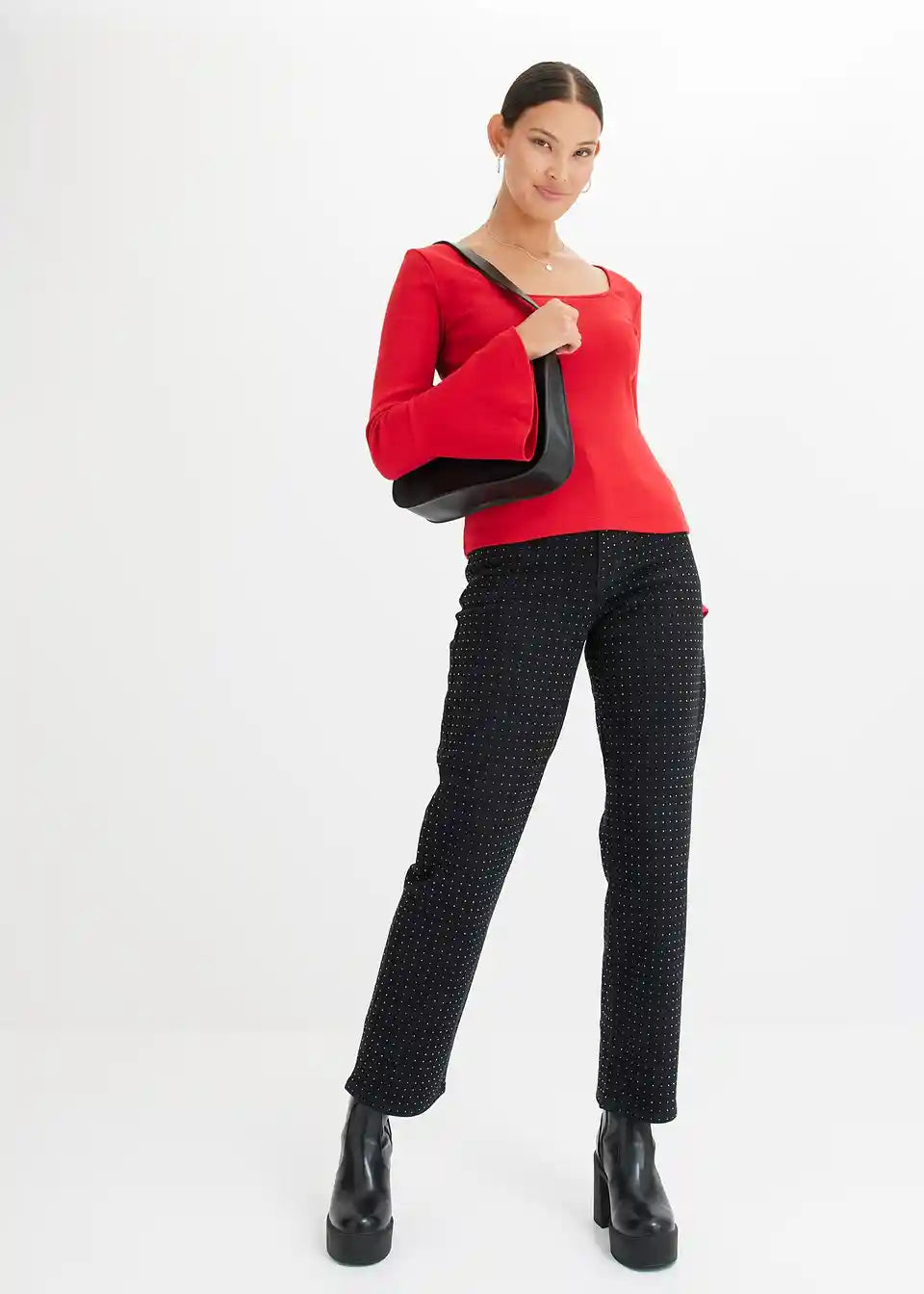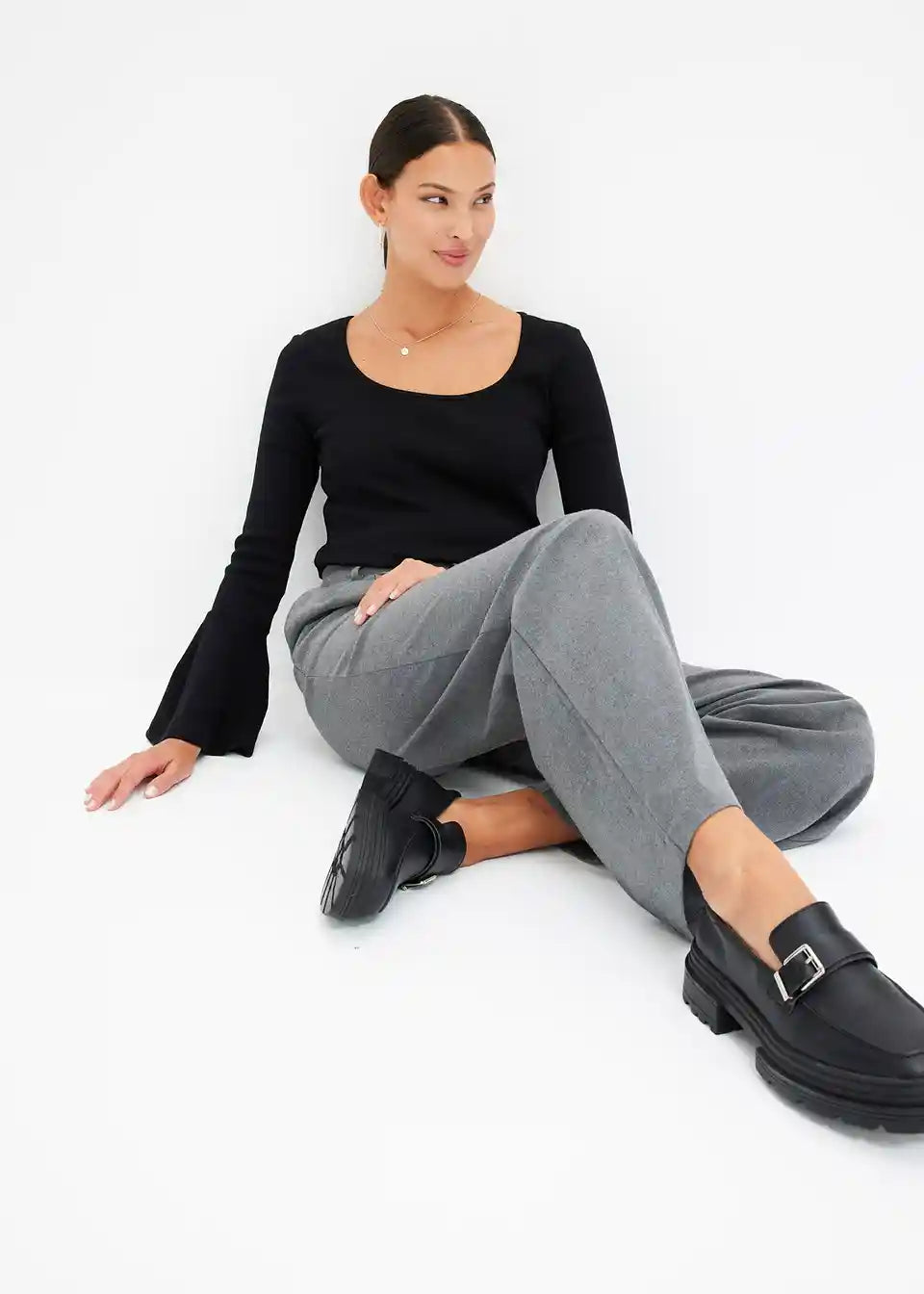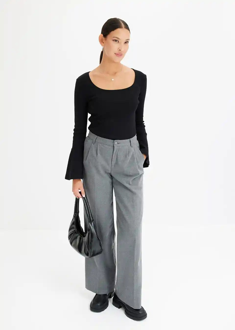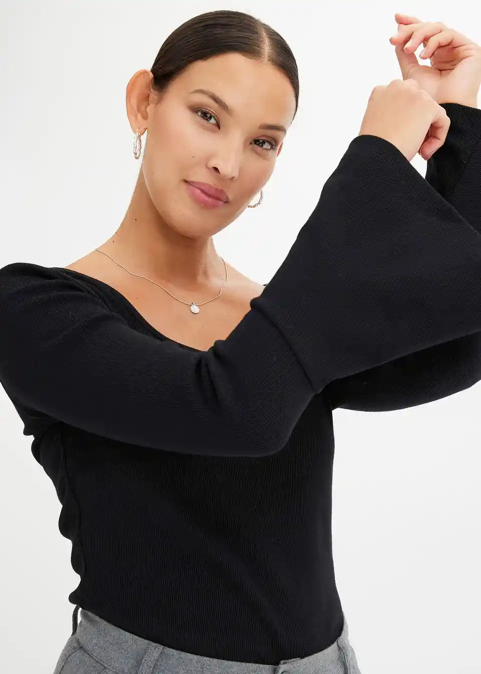 Rebrasta majica s Caree izrezom i trumpet rukavima