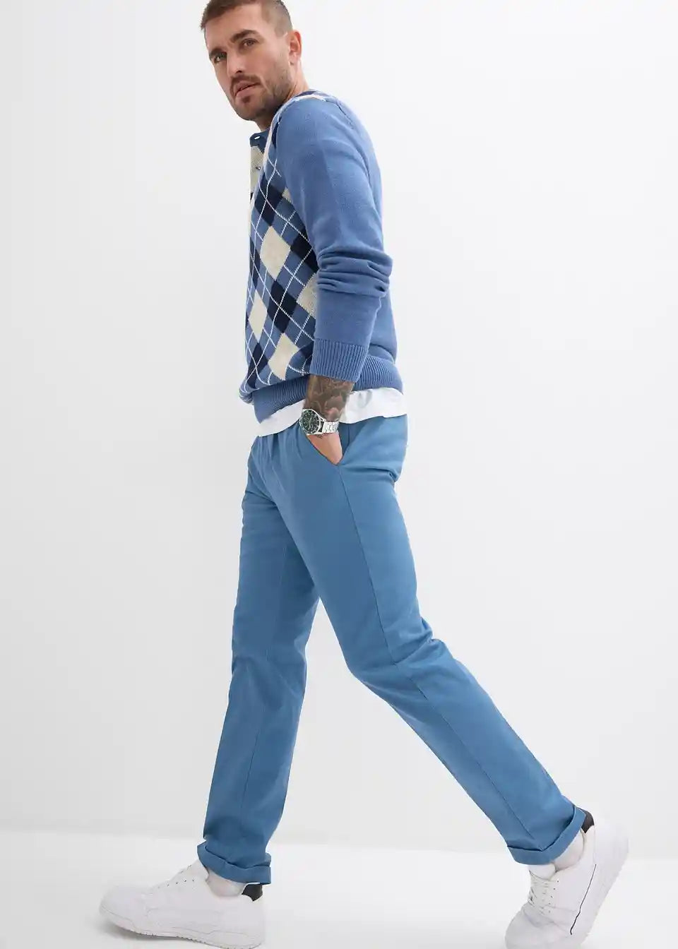 Moderne chino hlače s naborima i komfornim pojasom
