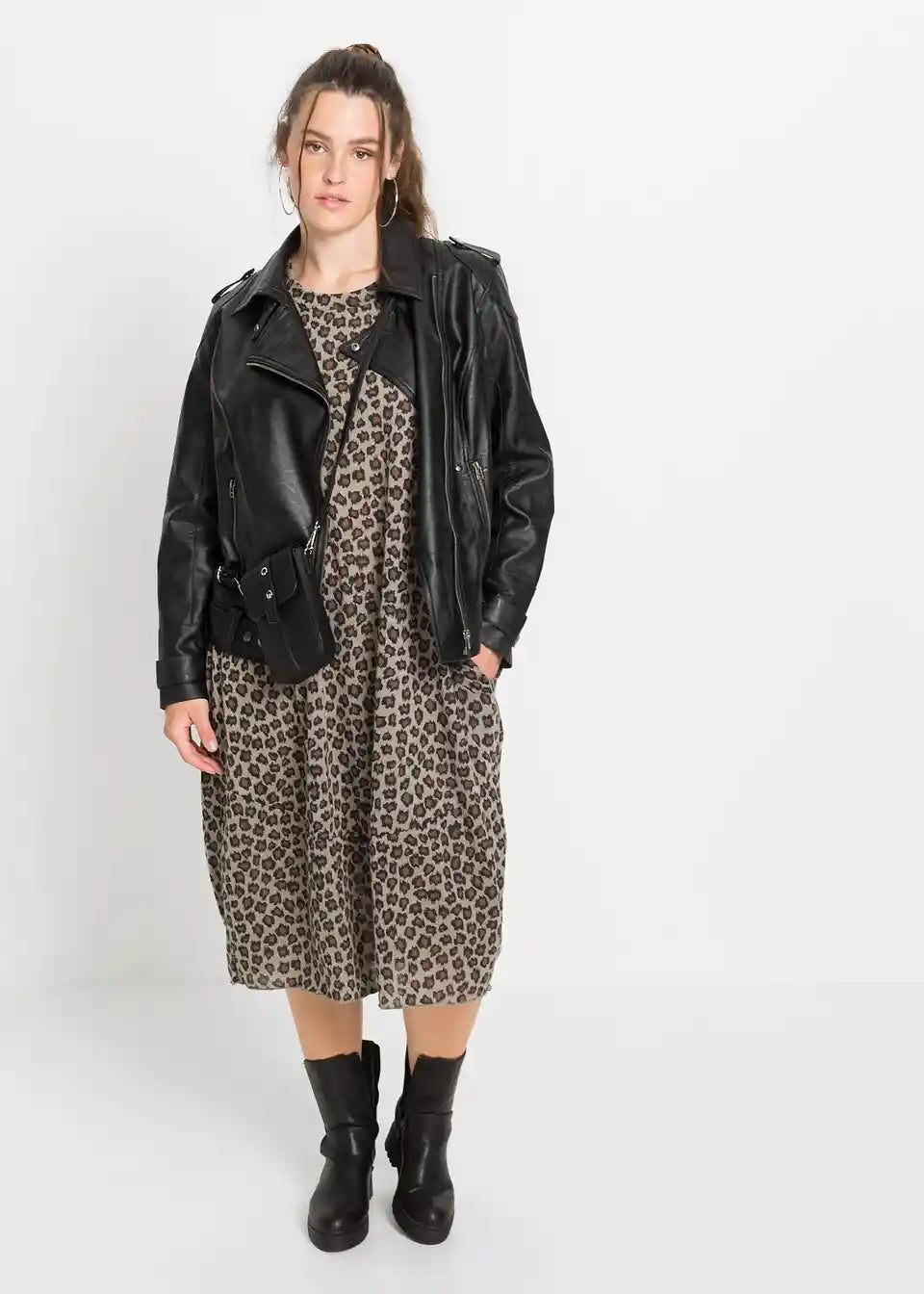 Ova maxi-shirt haljina oduševljava svojim allover leo uzorkom. On ovom modelu s okruglim izrezom iz RAINBOW kolekcije daje uzbudljivu notu. Moderni Egg-Shape kroj laska figuri. Za naglašeni struk preporučujemo široki lakirani ili omotni remen. Bočni džepovi za umetanje upotpunjuju izgled. Cool maxi-shirt haljina dobiva rokerski štih u kombinaciji s biker jaknom i čizmama. Nešto ležernije izgleda uz traper jaknu. Također, dugački oversized kardigan s grubim pletenjem izvrsno pristaje uz ovu haljinu.